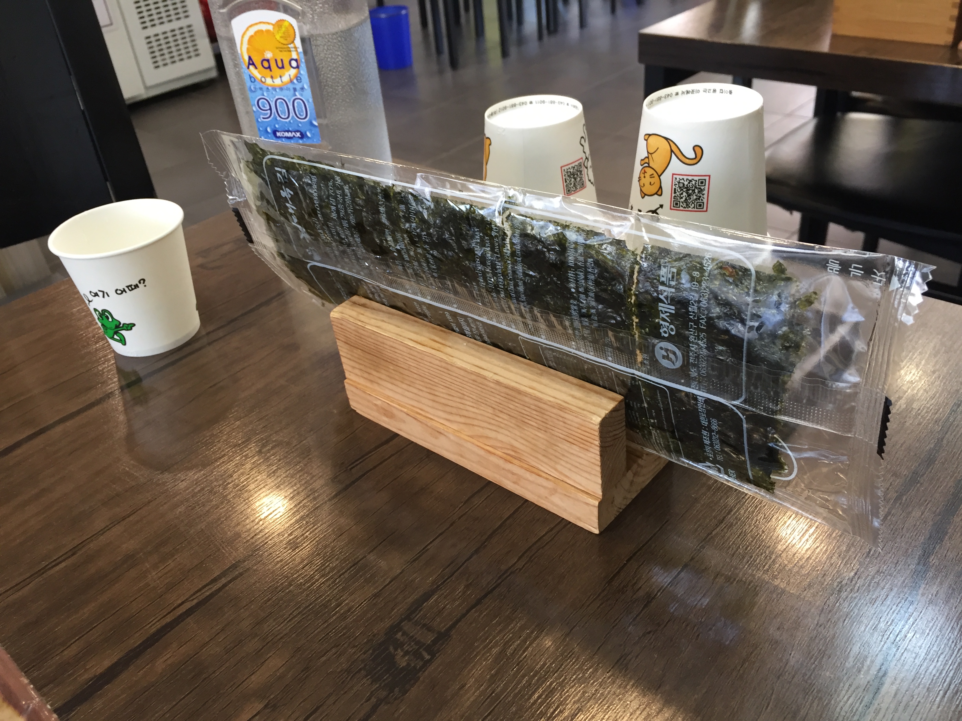 국밥에 김을 찢어 뿌려 먹어도 되고 싸 먹어도 맛있다.