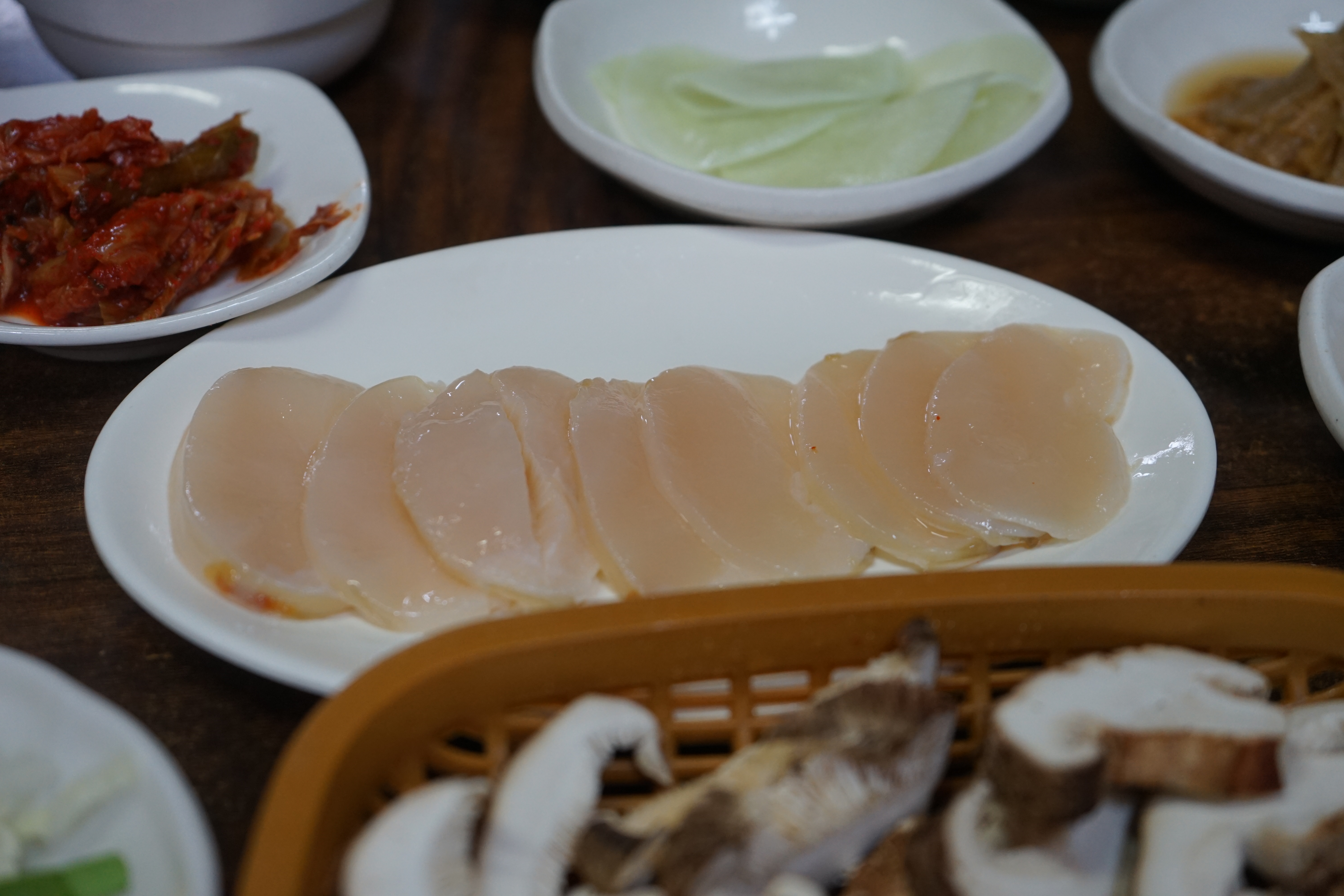 키조개와 표고버섯 소고기의 세가지 조합을 징흥에서는 장흥삼합이라고 한다고 했다.