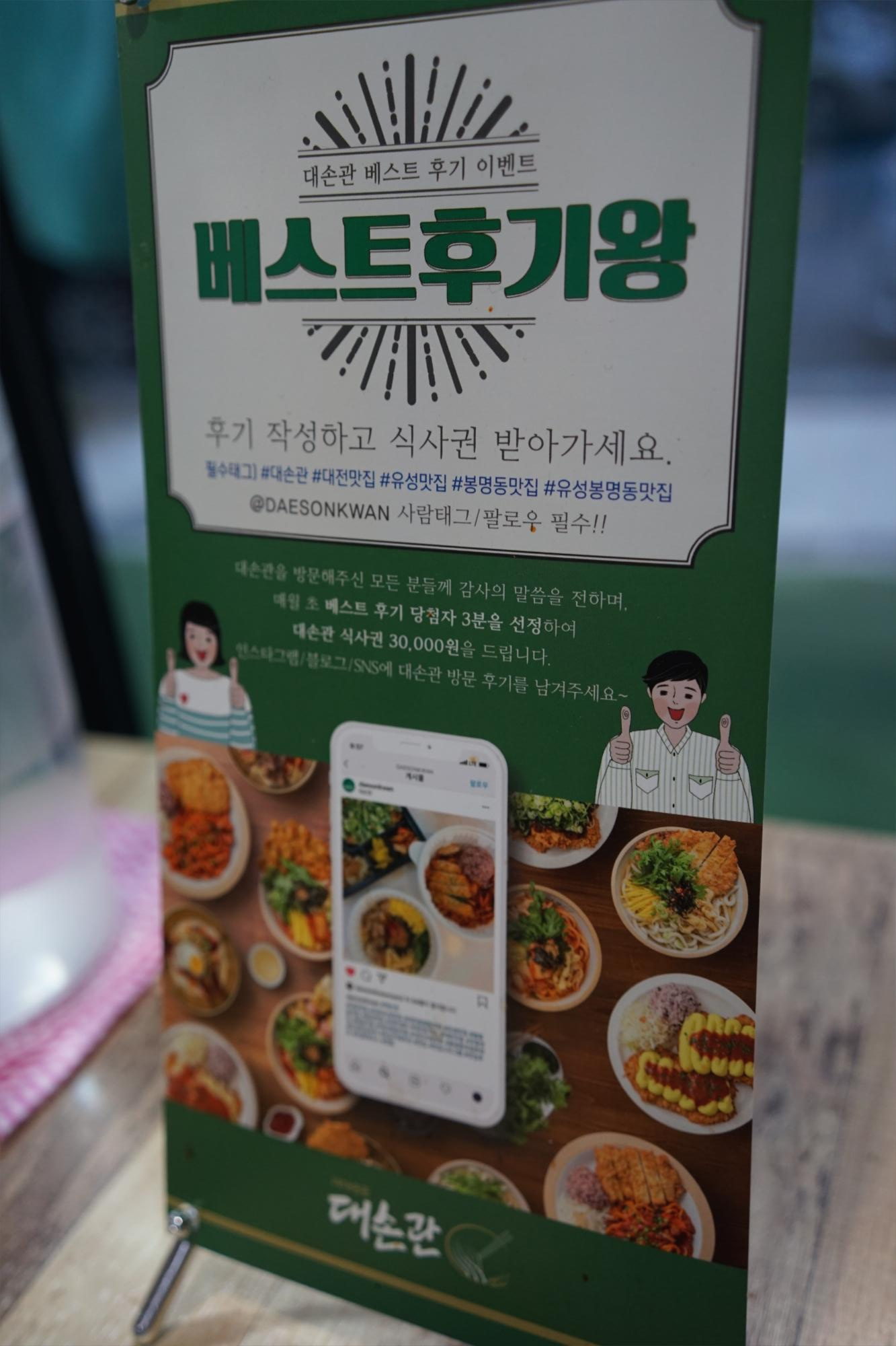 대손관 후기를 잘 쓰면 식사권을 주는 후기 이벤트도 하신다는데,