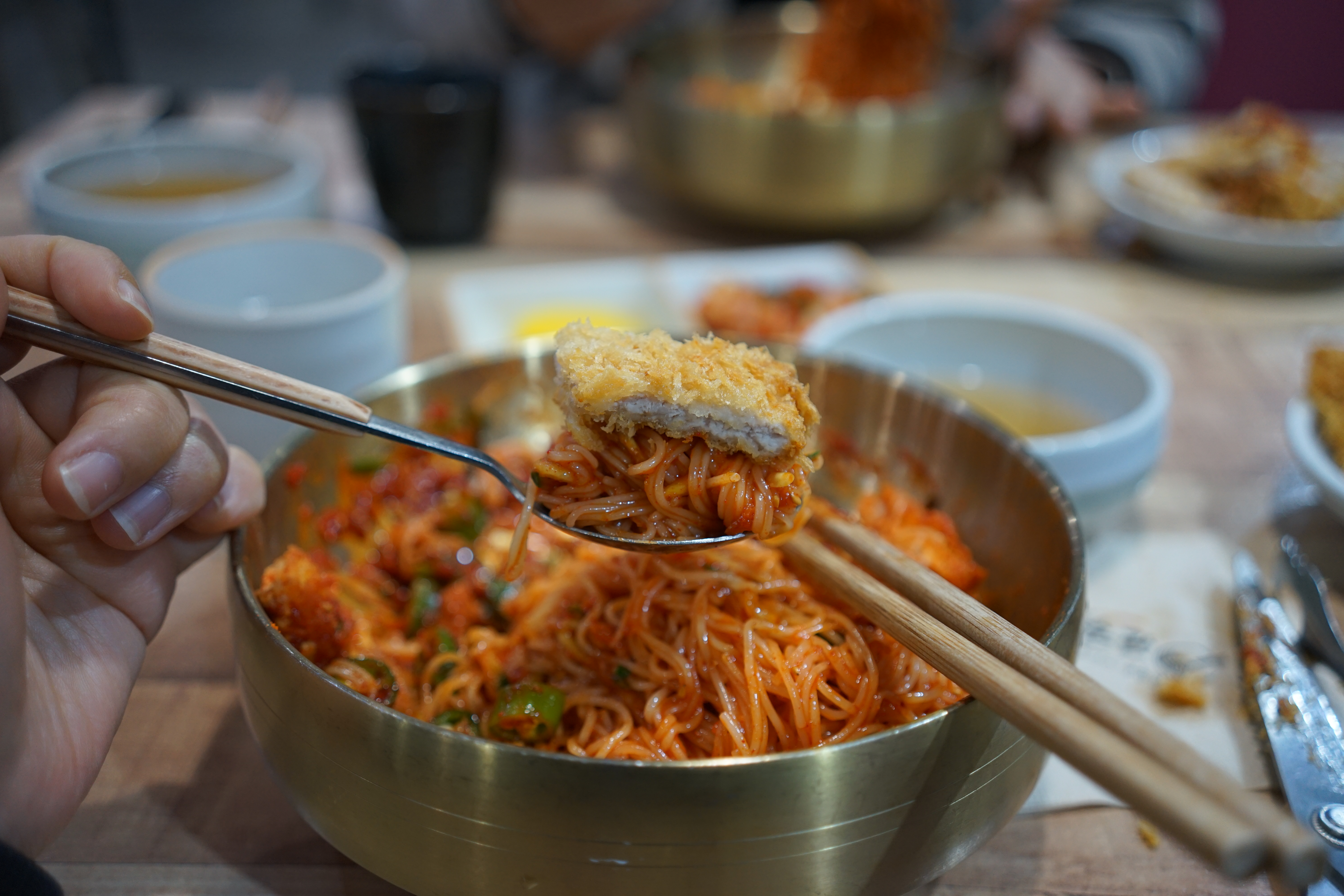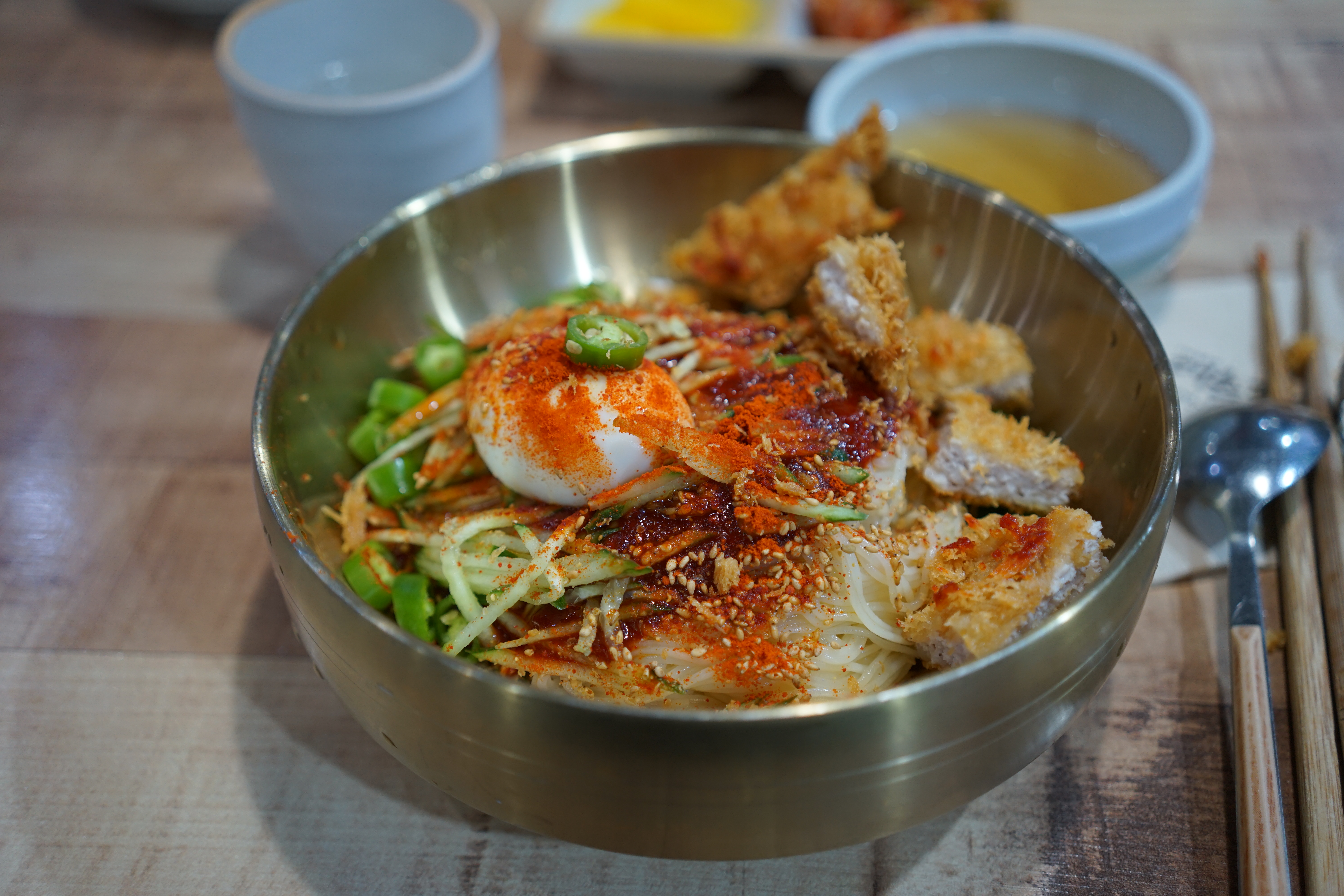 왜 돈가스와 비빔밀면이 함께 나오는지 알게 된다.