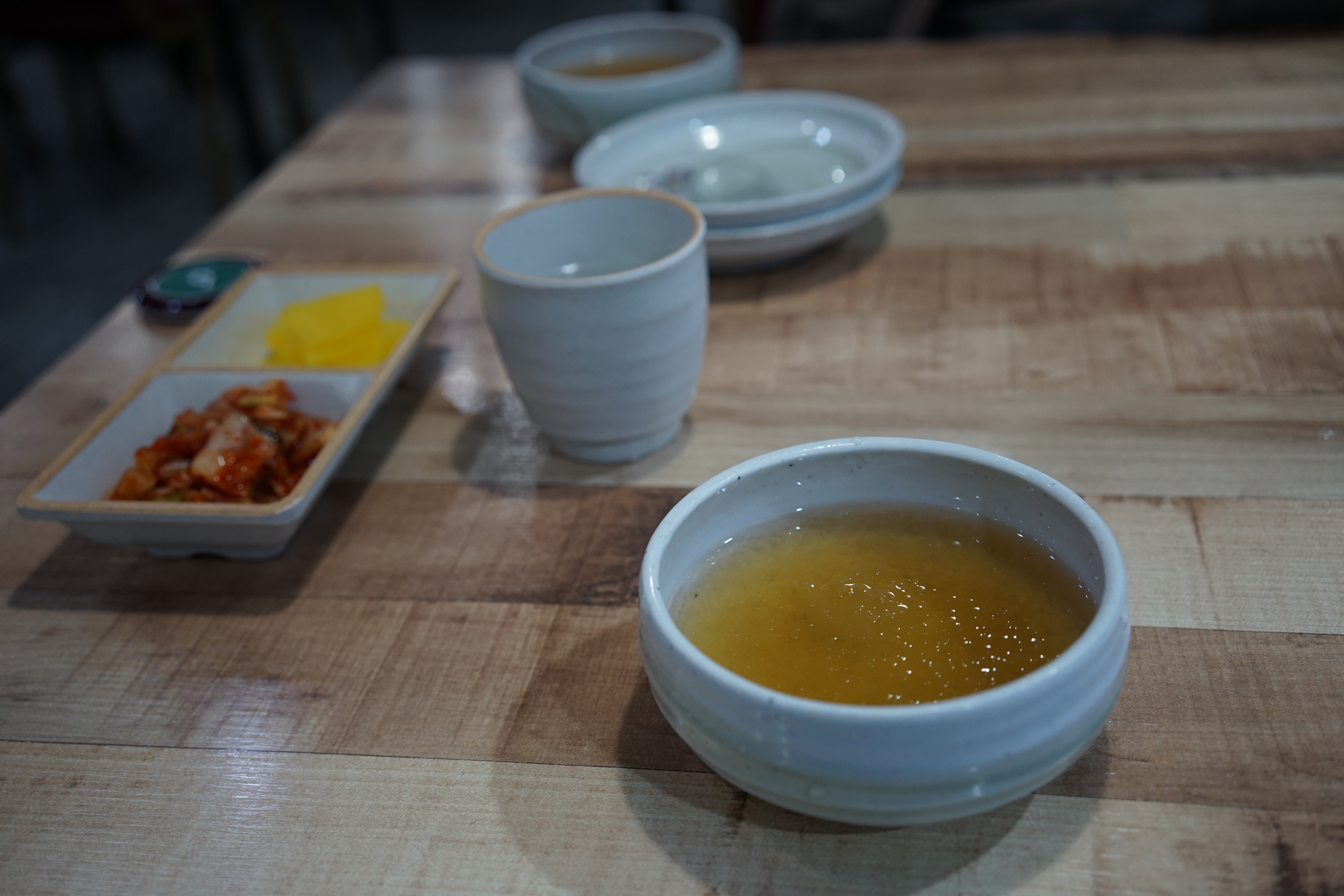기본찬으로 김치와 단무지, 그리고 냉육수를 주신다.