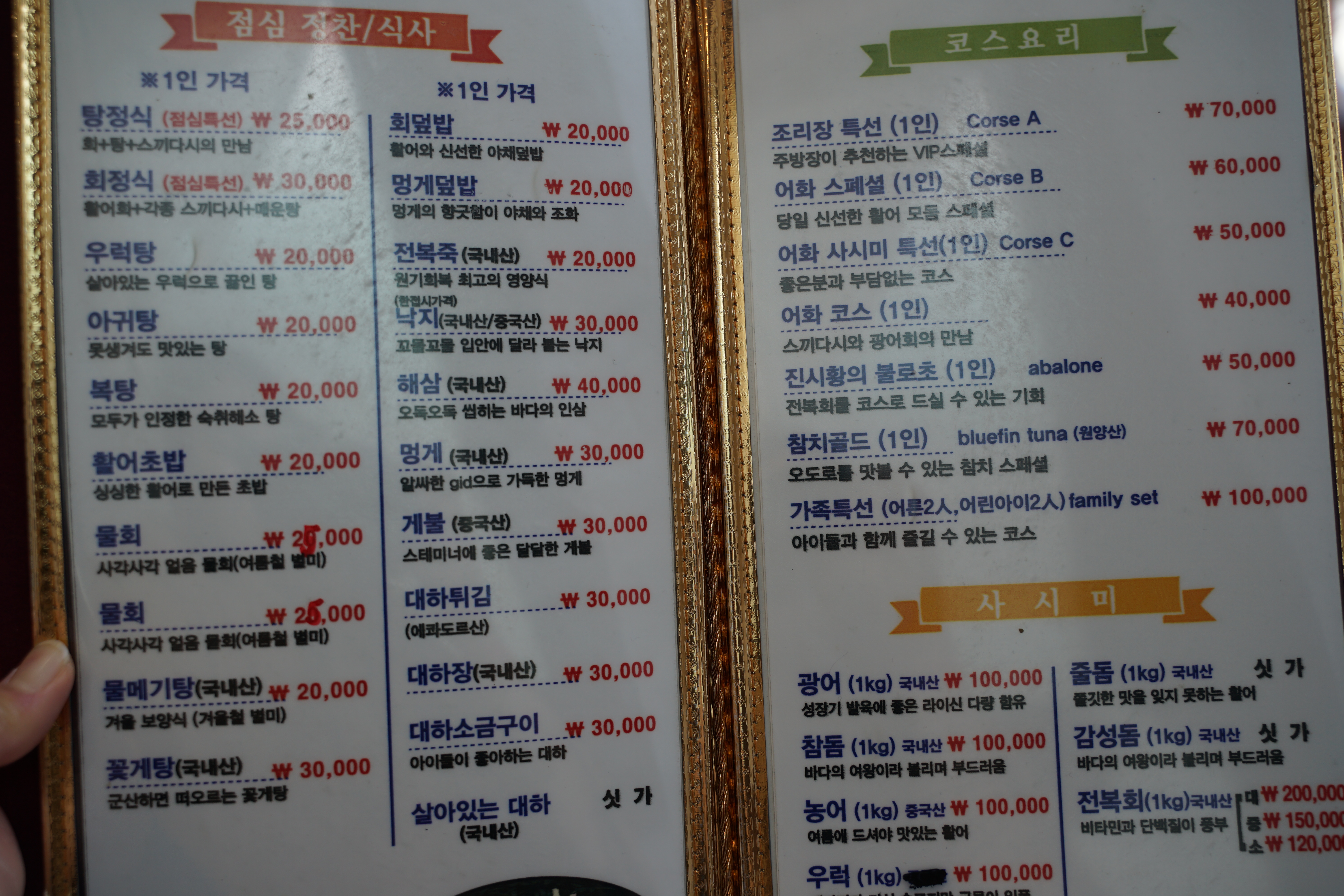 물회나 회덮밥이 20,000원인 것을 생각하면