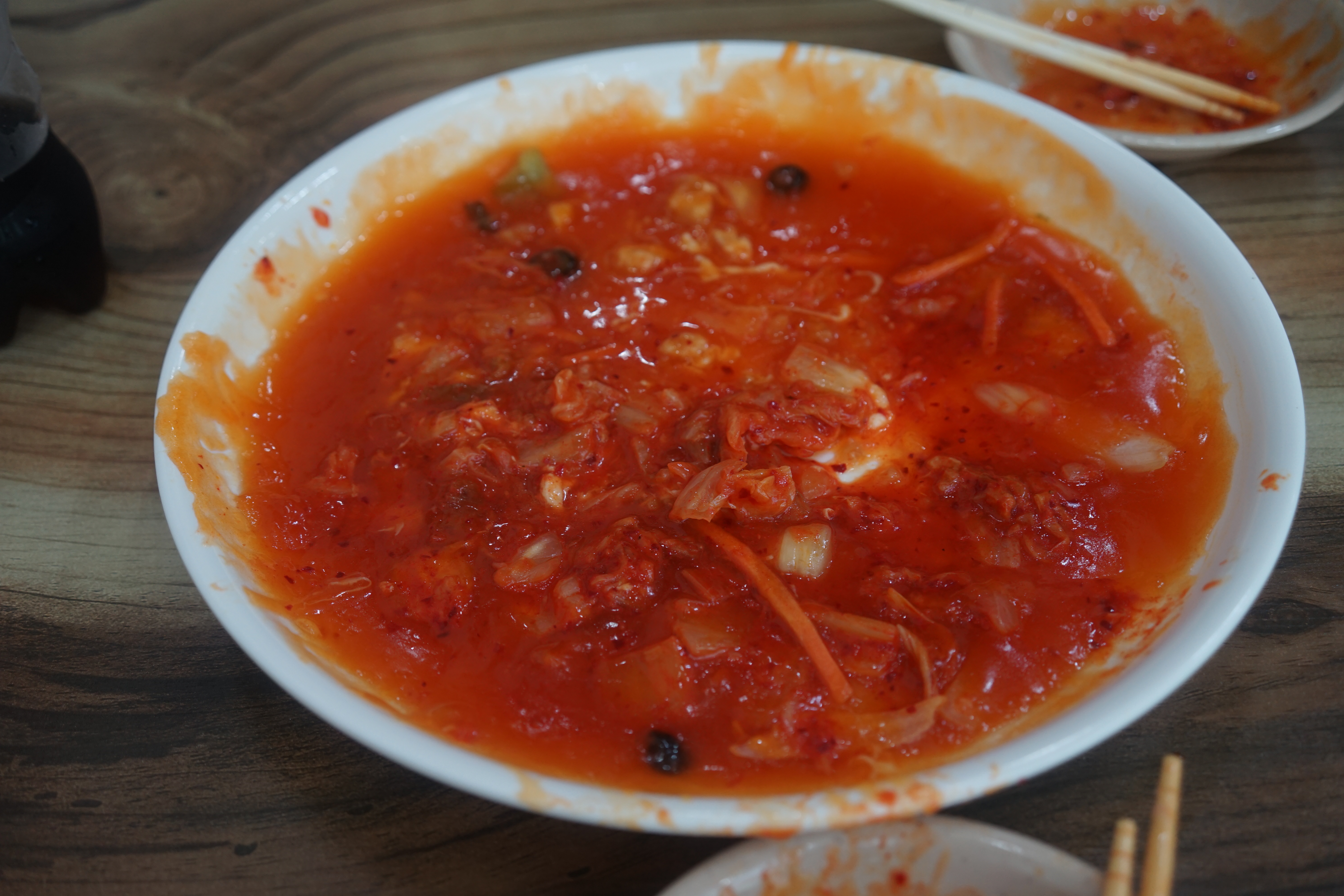 탕수육 안에 김치가 들어 있어 그런지