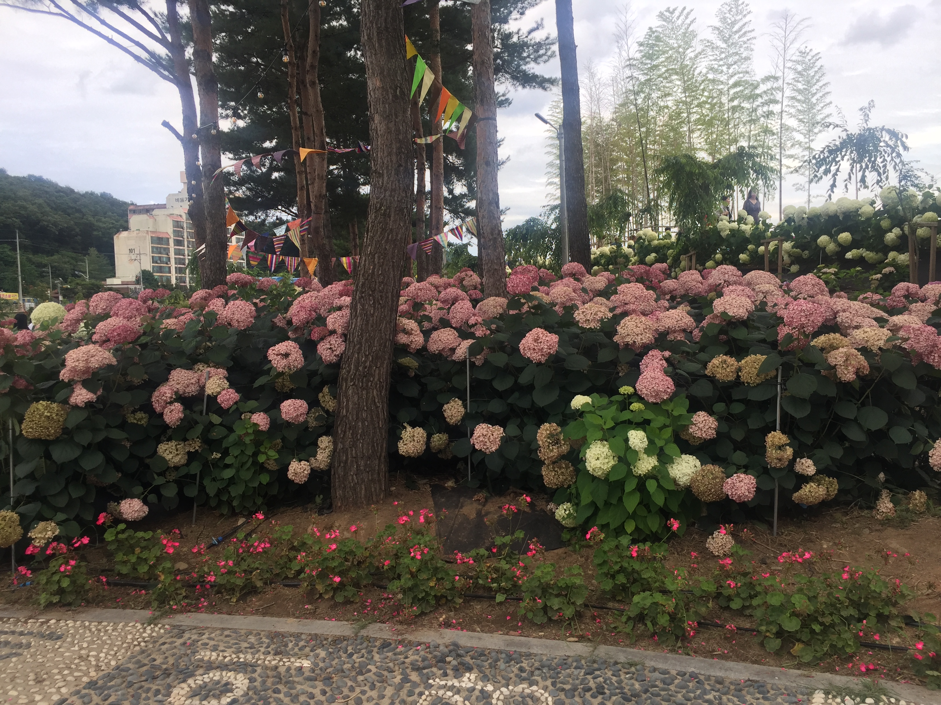 분홍빛의 예쁜 수국들이 우리를 맞아 주었다.