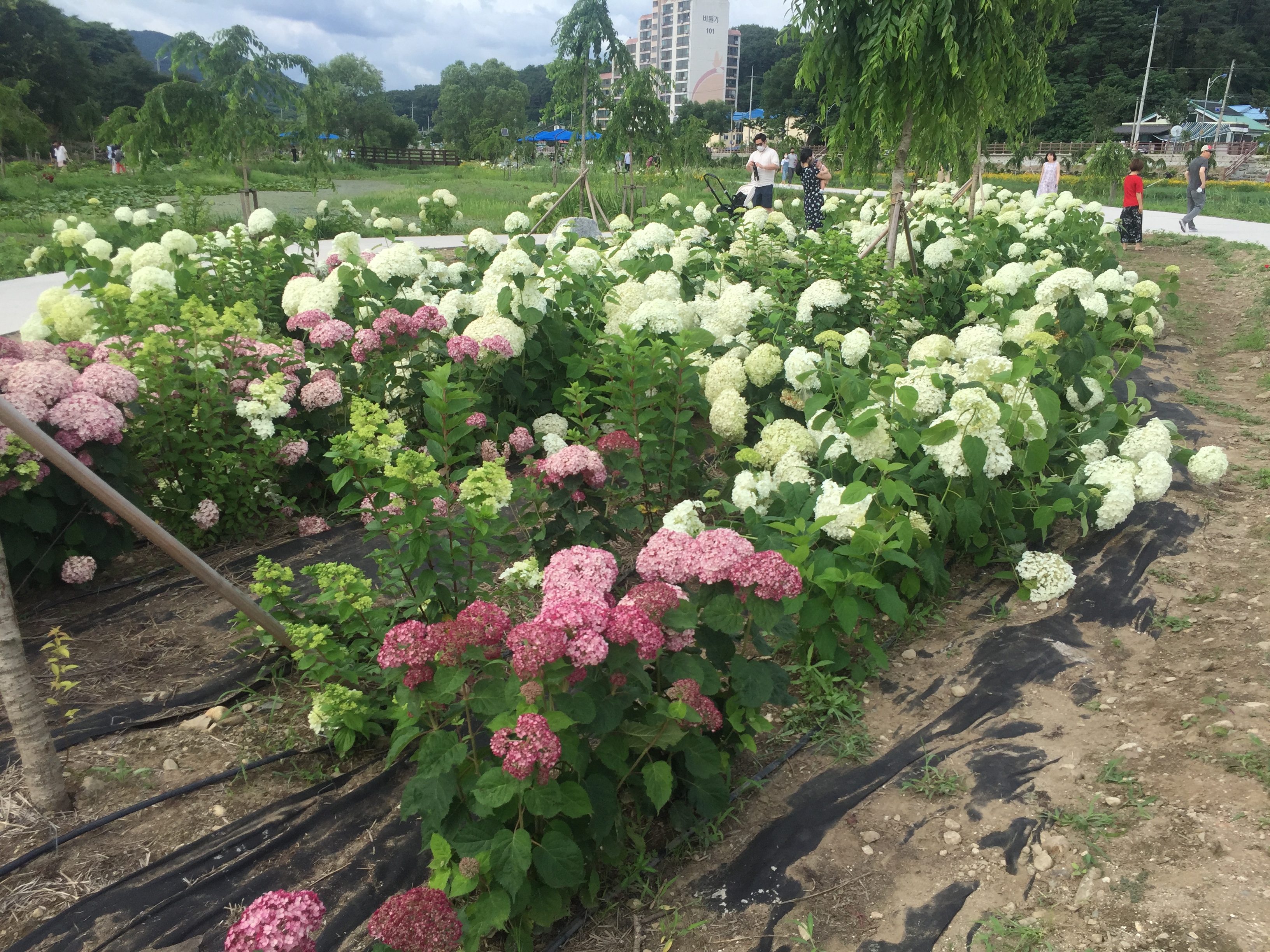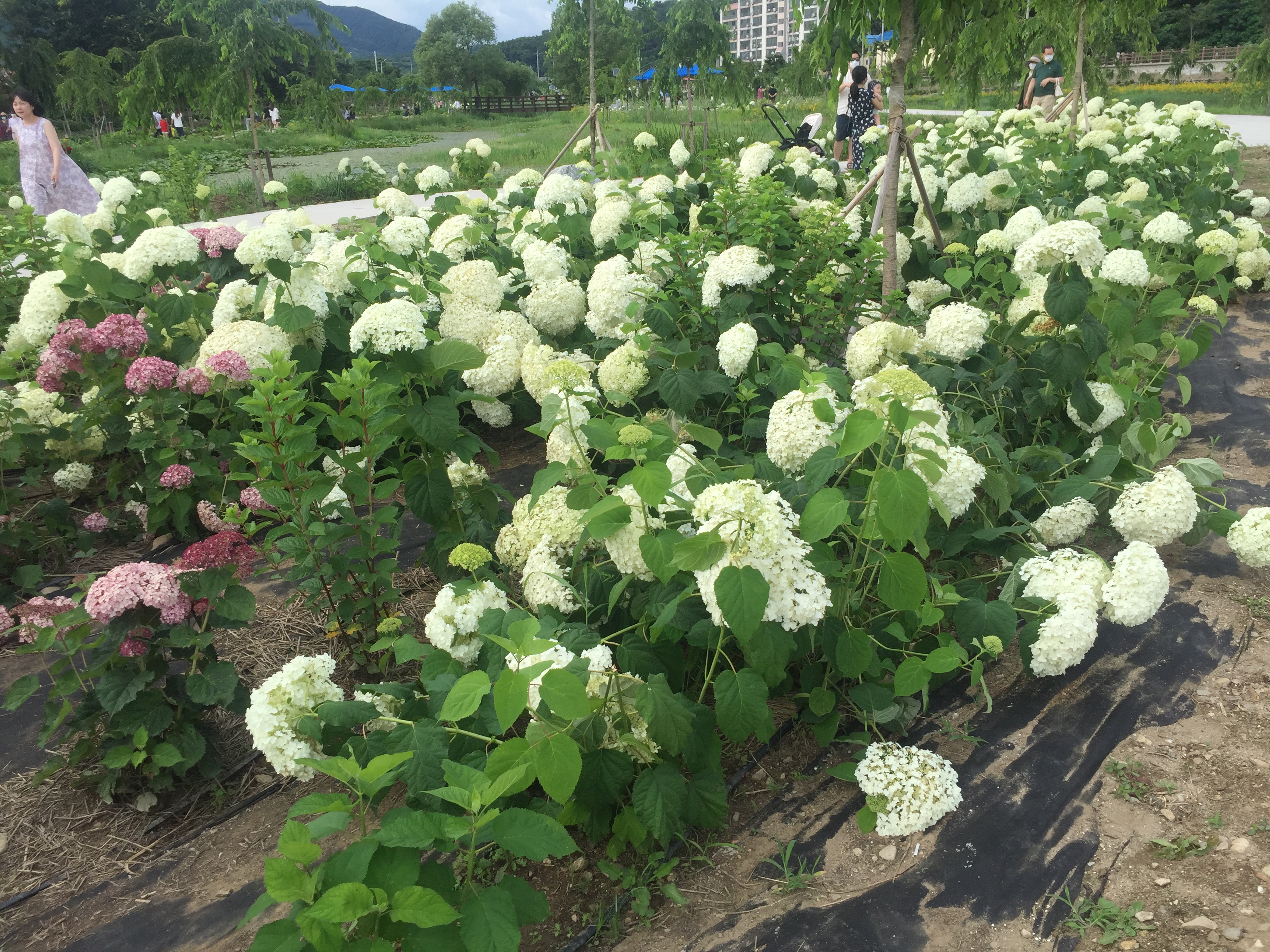 아직 군데군데 심어져 있음에도 불구하고 피지 않은 수국이 많았다.