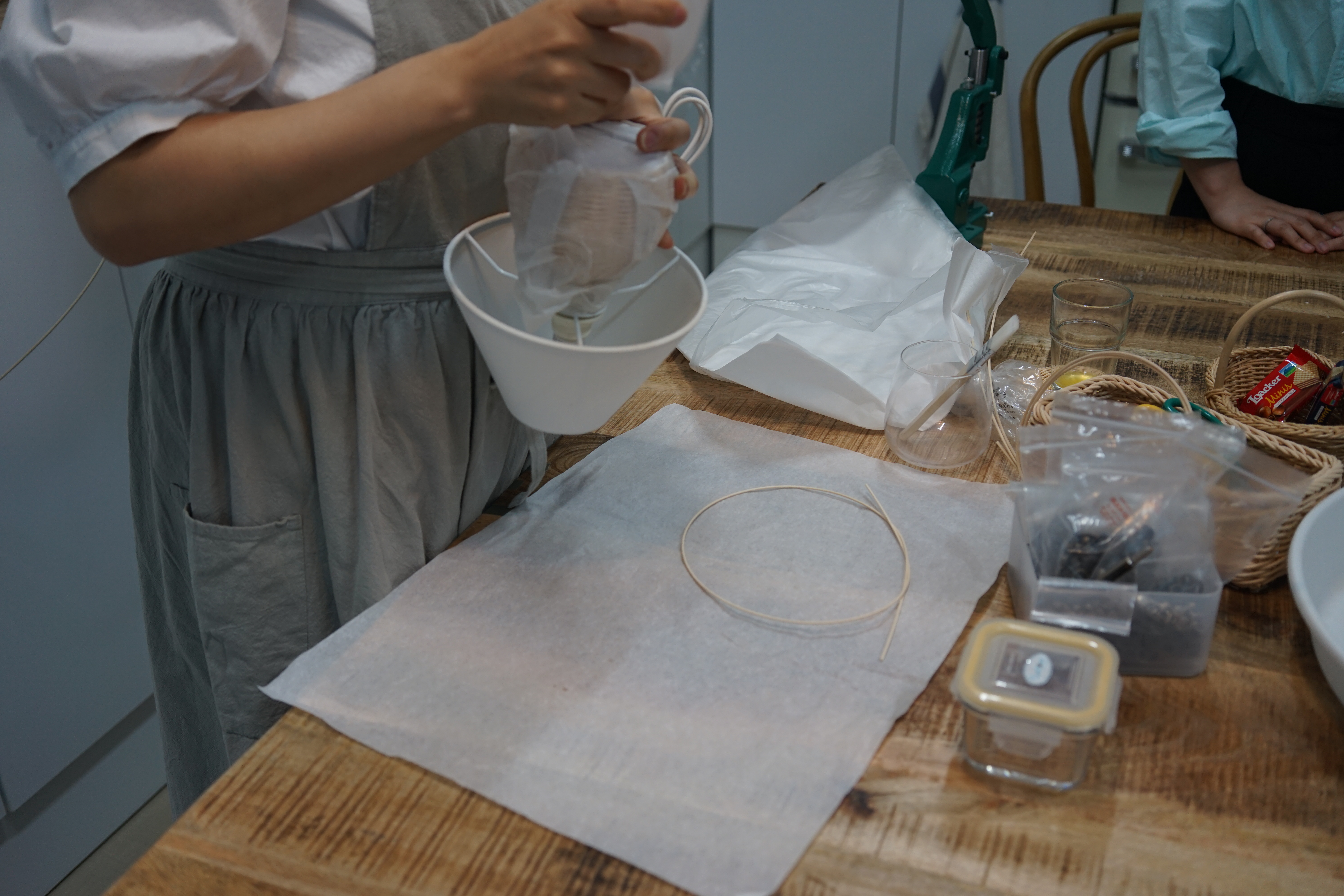 친구들 스탠드를 가져갈 수 있게 꼼꼼히 포장해 주신 옳은 라탄의 선생님. 우리는 성격상 너무 과한 친절이나 수다스러움을 선호하진 않는데, 옳은 라탄의 선생님은 알려주실 부분만 딱 알려주시고 쿨한 느낌이 들어 라탄 백 만드는 과정이 더 즐겁게 느껴졌던 것 같다. 근데 지금 든 생각인데 선생님 왜 저희에겐 앞치마 안 주셨는지...