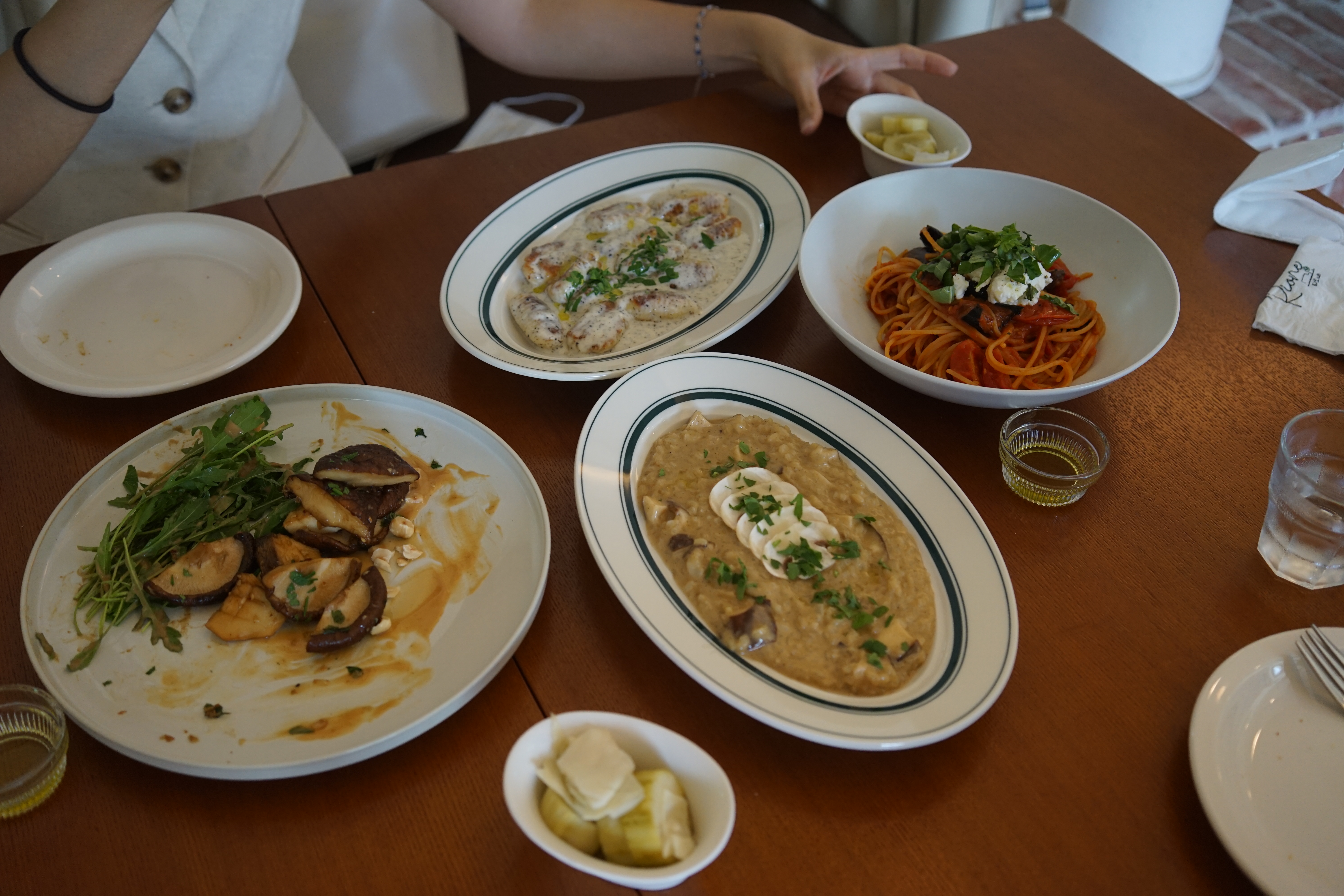 그리고 리오네에서 알감자 뇨끼는 필수로 먹어야 한다. 집에서 뇨끼를 만들어본 적이 있었는데 레시피대로 했음에도 불구하고 맛있기가 쉽지가 않았다. 이상하게 밀가루 맛이 많이 나고 그 감자 특유의 구수한 맛이 나지 않았는데, 리오네의 알감자 뇨끼는 맛있다는 후기를 많이 봐서 기대를 하고 주문했다. 리조또도 하나 주문했는데, 사진을 보니 아마도 포르치니 버섯 리조또였나보다.