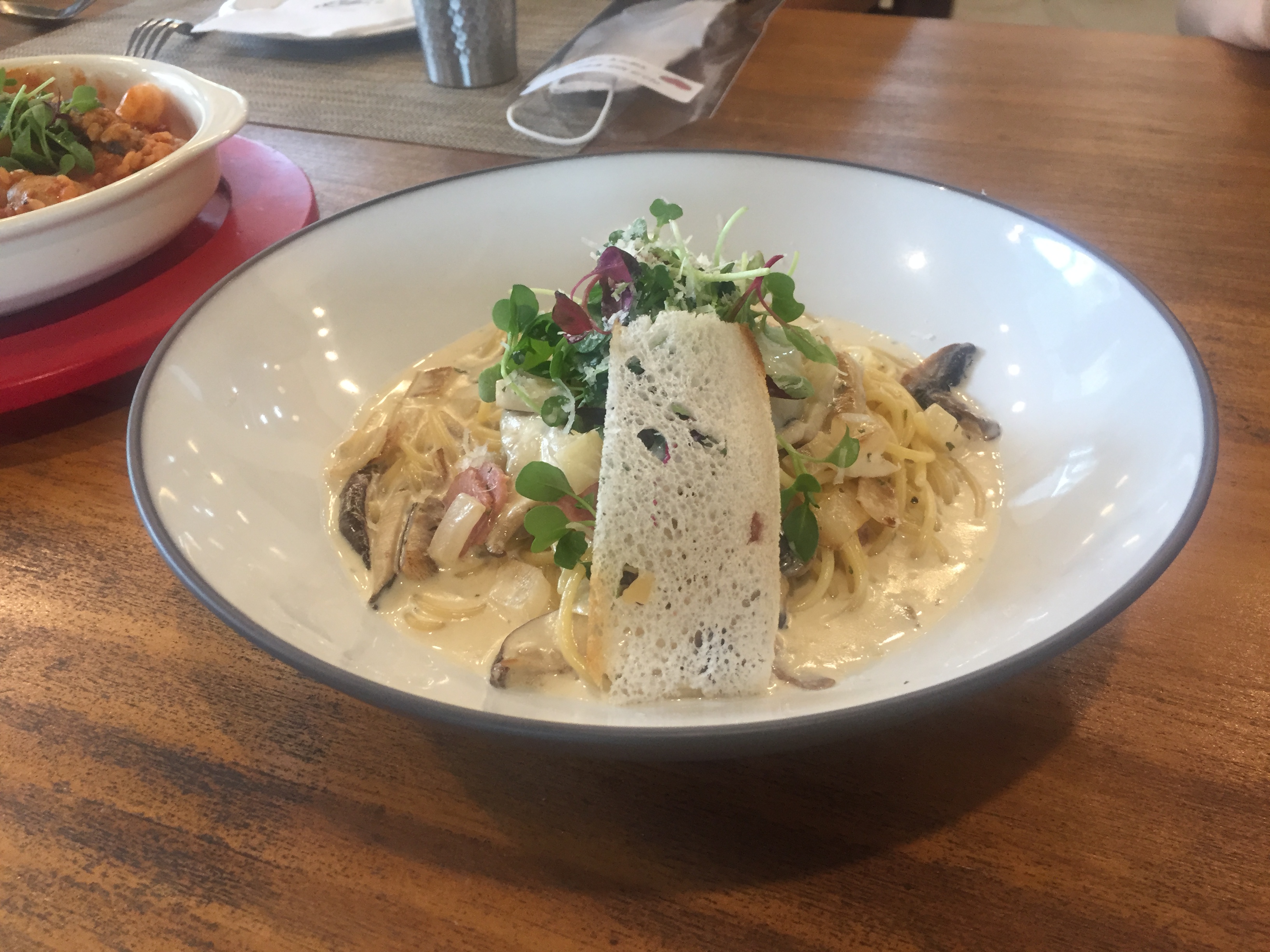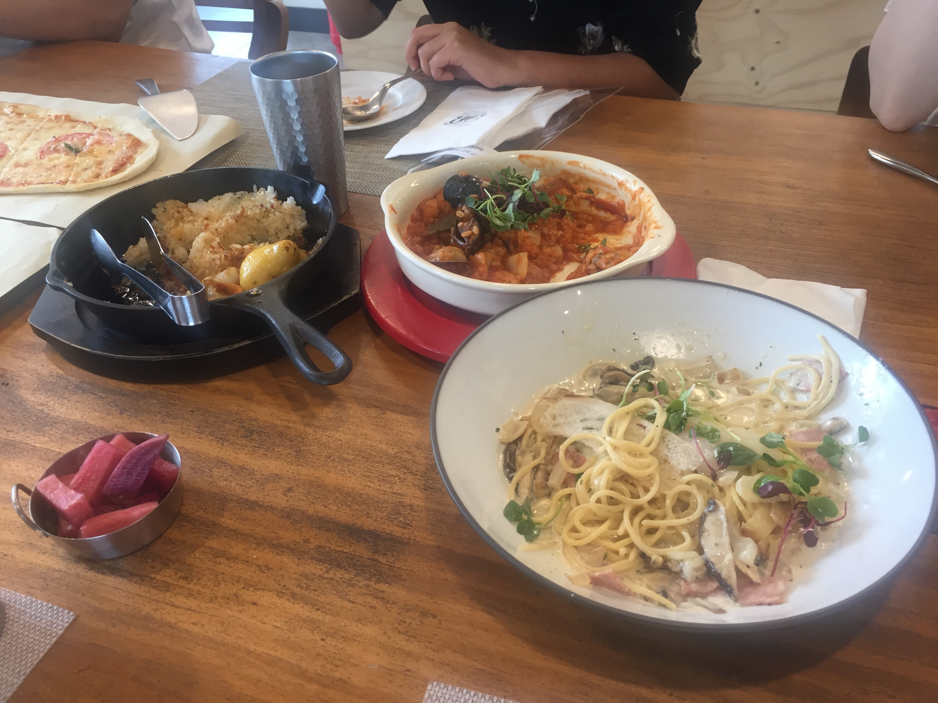 유일하게 이름이 기억나는 까르보나라 스파게티. 동기 언니들을 보니 후추 같은 향신료를 빼 달라고 한 후 잘게 잘라서 아이와 함께 먹었다.