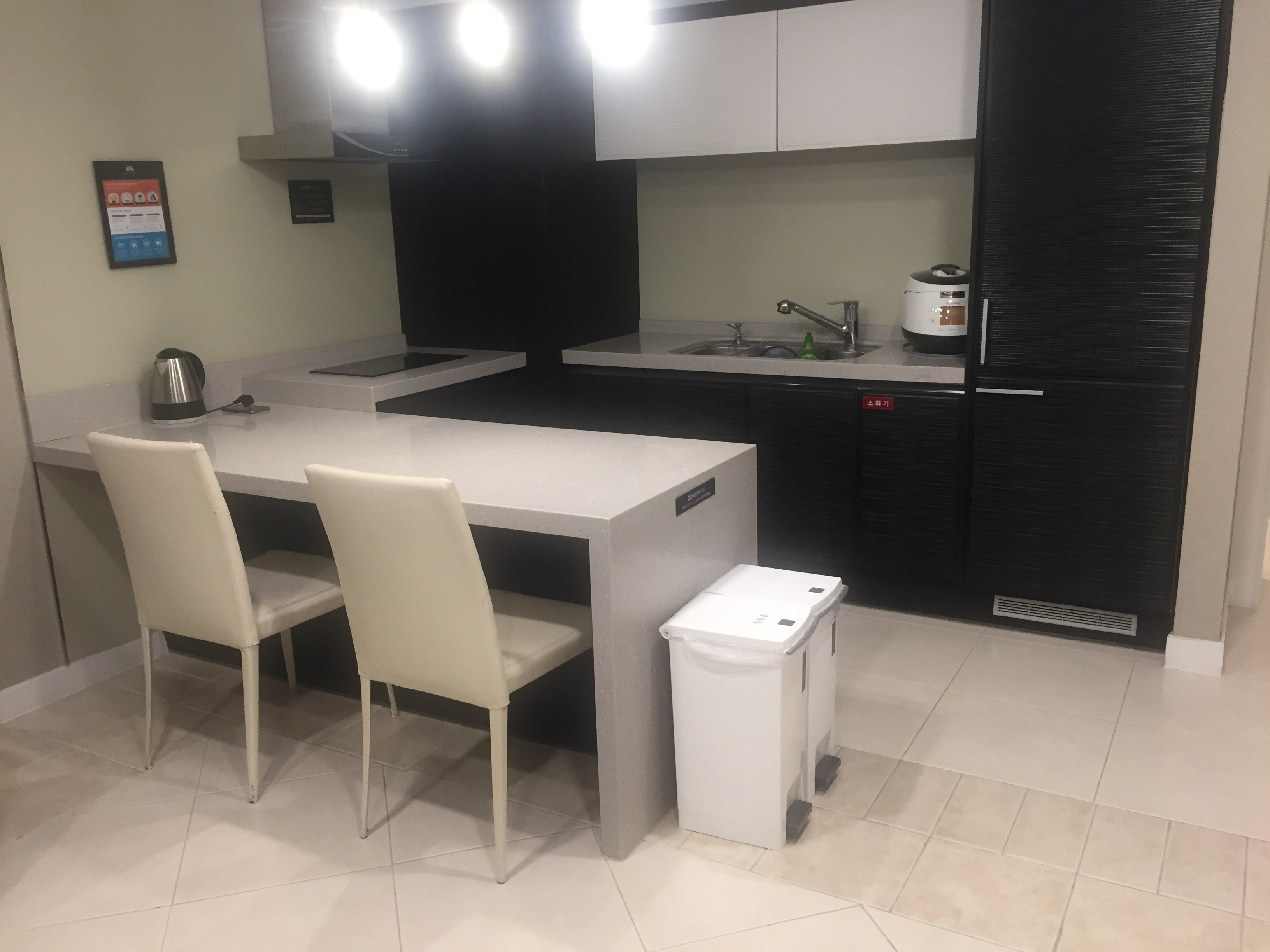 오크밸리 리조트의 주방. 단 한번도 사용한 적이 없지만 그래도 테이블 의자도 네개가 구비되어 있고, 꽤 쓸만한 구조로 구성되어 있다.