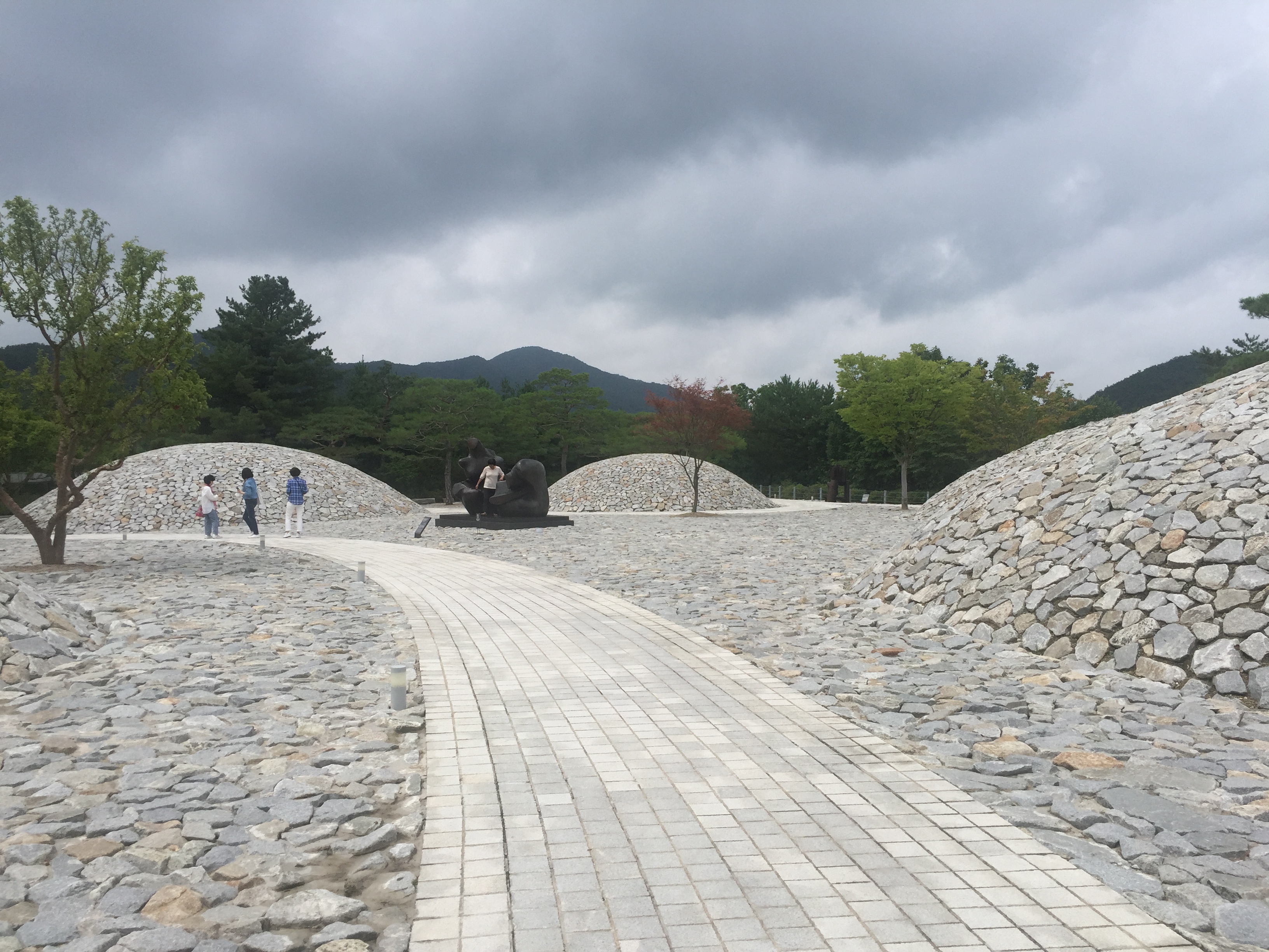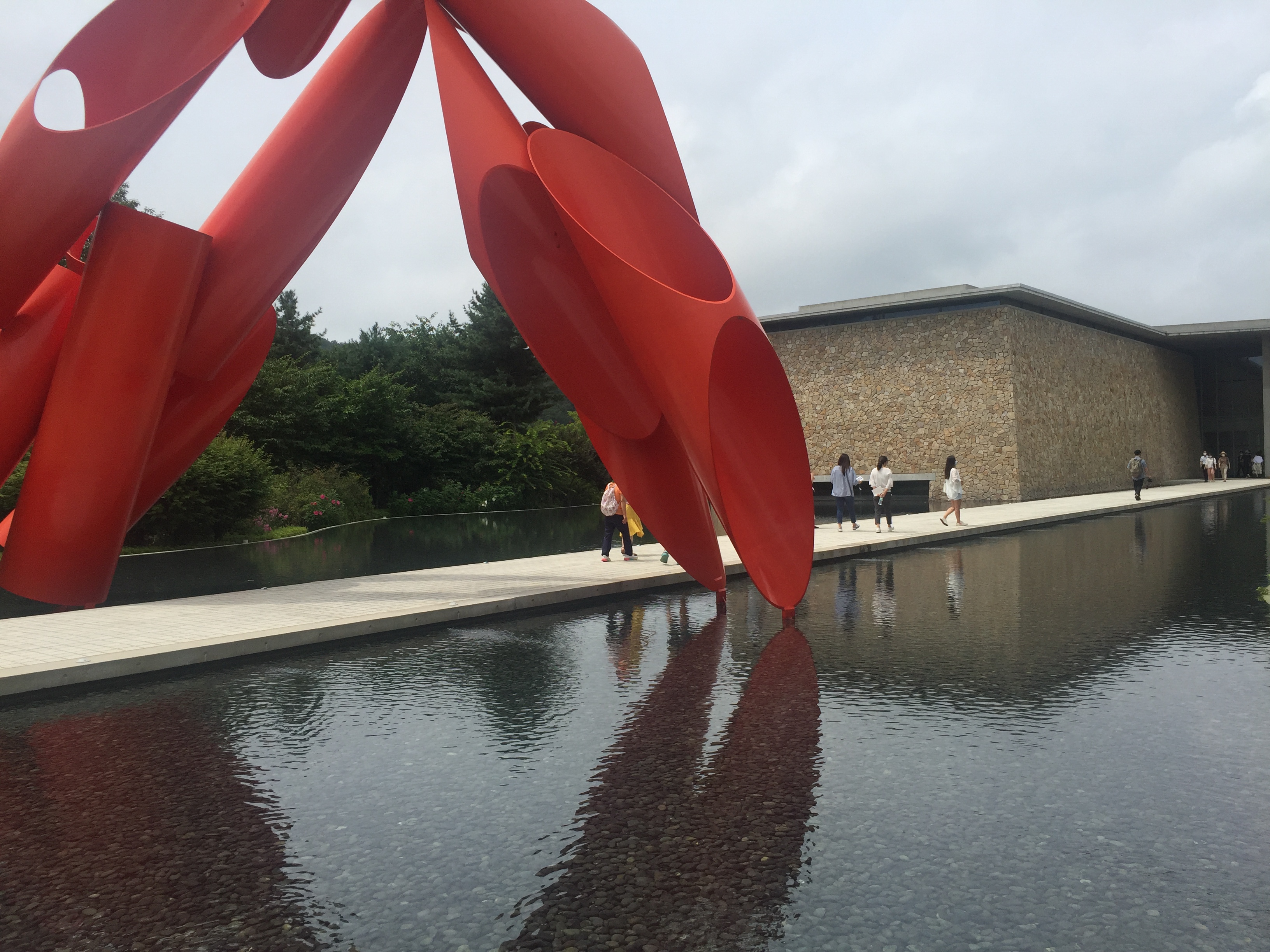 잔잔한 호수를 연상케 하는 뮤지엄 산과 그 가운데로 난 길, 그리고 거대한 조형물. 날씨가 흐렸지만 흐린 나름대로 덥지 않아 구경하기에 좋았다.