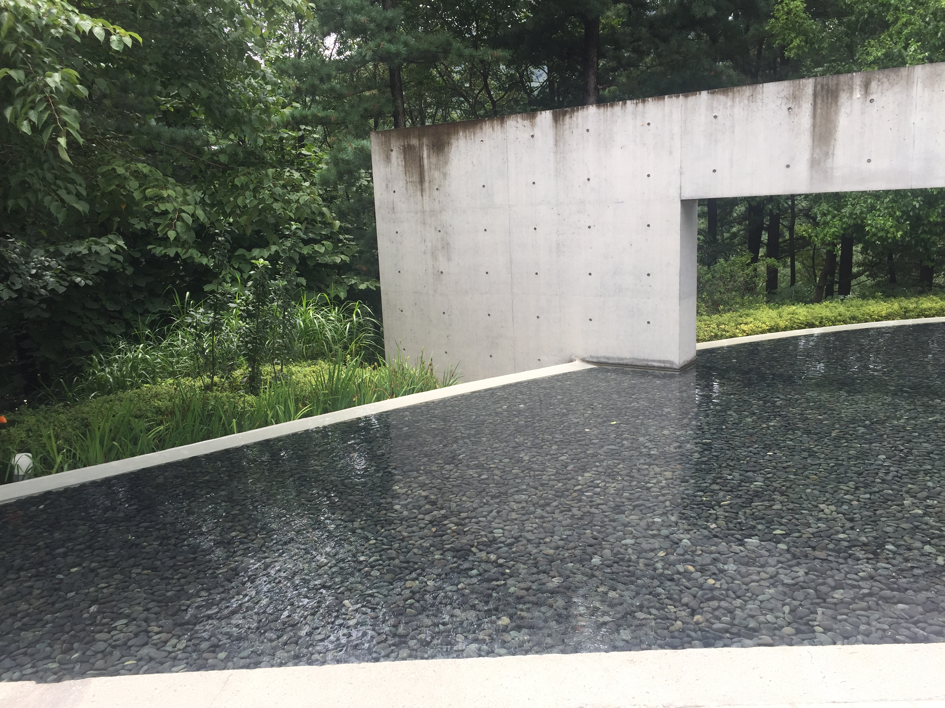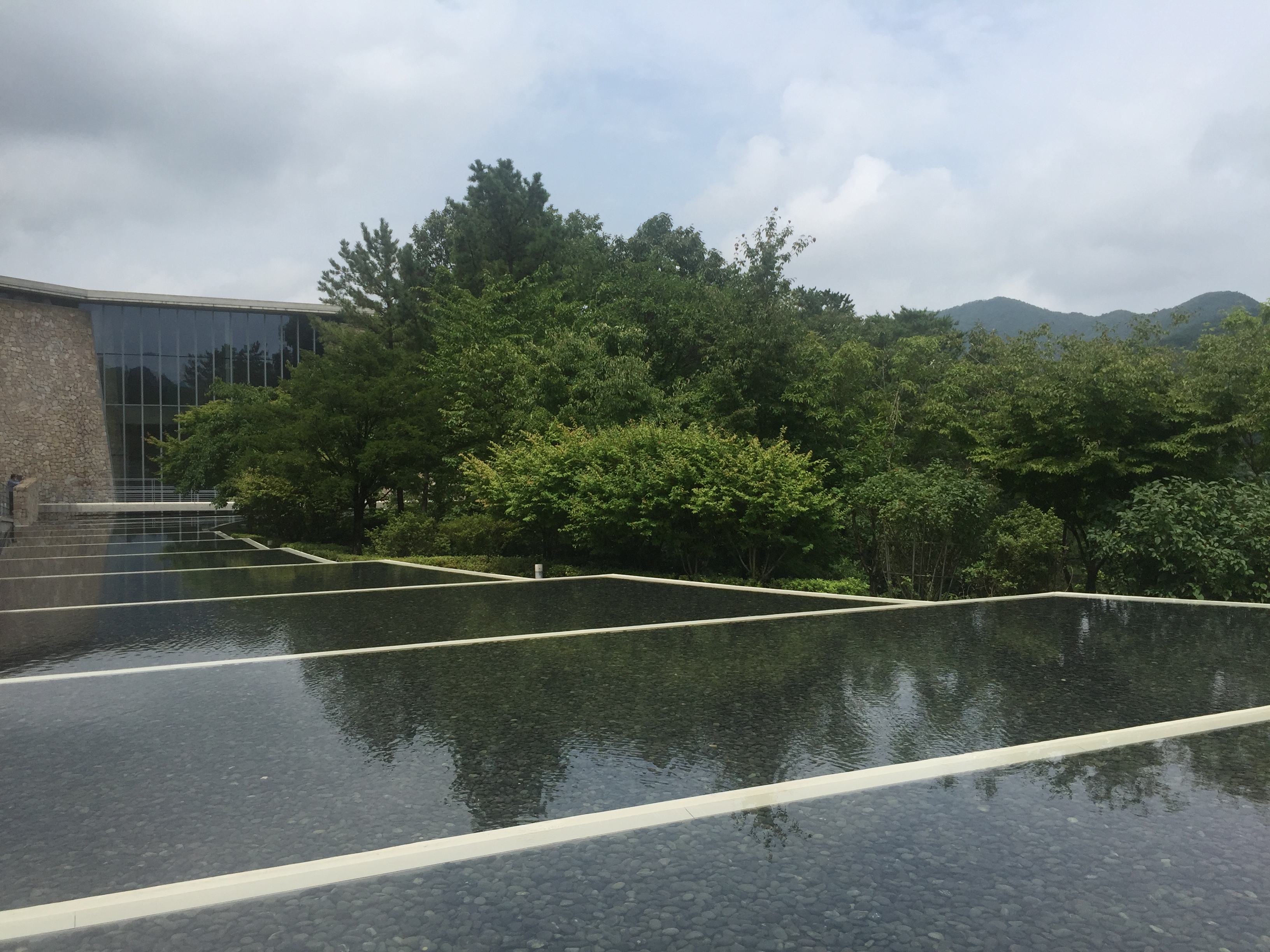 뮤지엄 산 카페의 야외 테라스와 이어진 모습. 이 잔잔한 얕은 물이 마음을 평화롭게 만든다.
