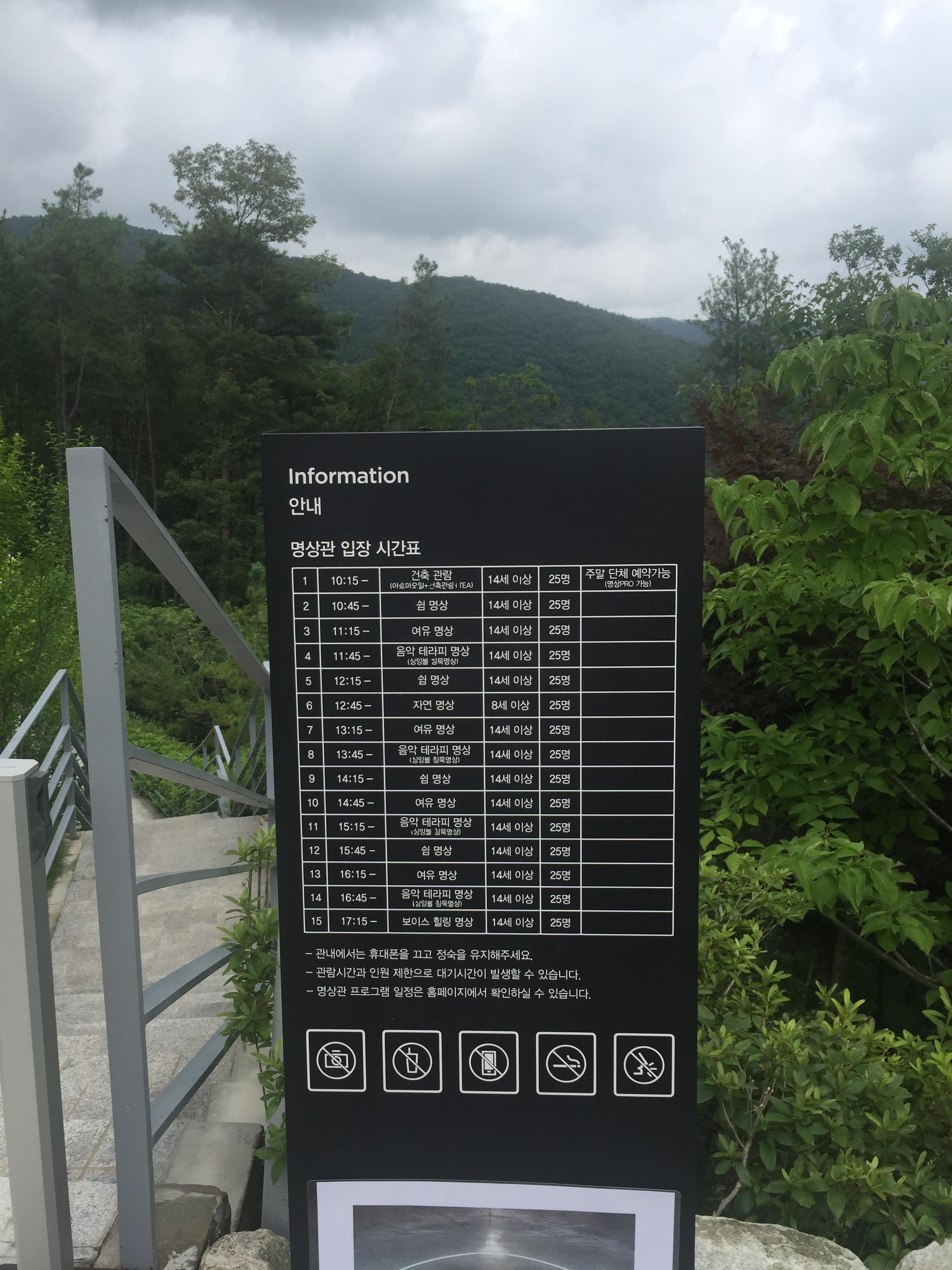 명상관 입장 시간표는 위와 같은데, 코로나 19의 여파인지 아래로 바뀌었다고 하니 뮤지엄 산 명상관 체험을 한다면 참고하길.