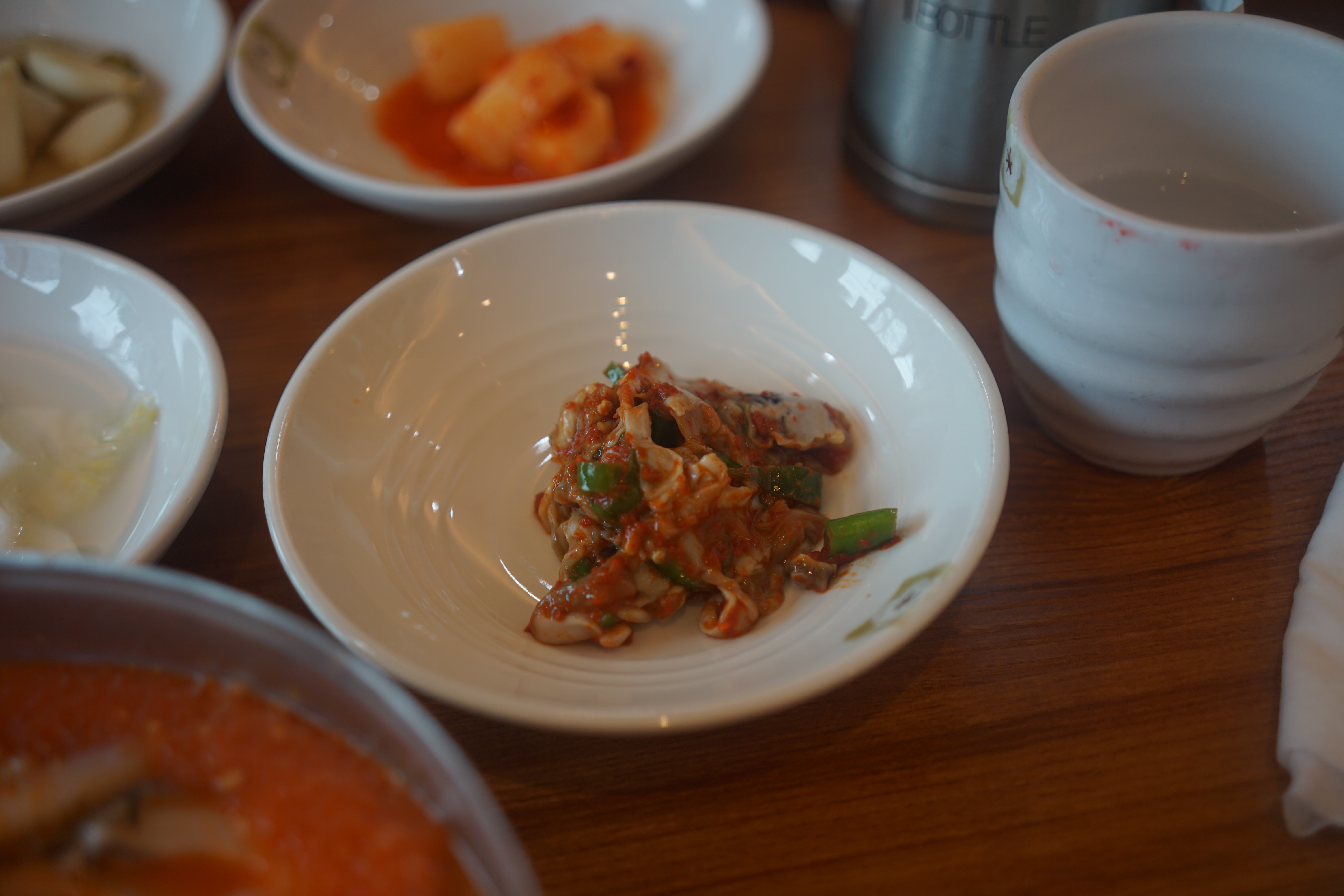 기본 찬으로 나오는 전복 젓갈은 따로 리필이 되지 않는다고 안내되어 있었다. 양이 부족한지 우리 옆 테이블은 전복 젓갈 대신 고추 장아찌 같은 것이 나왔다.