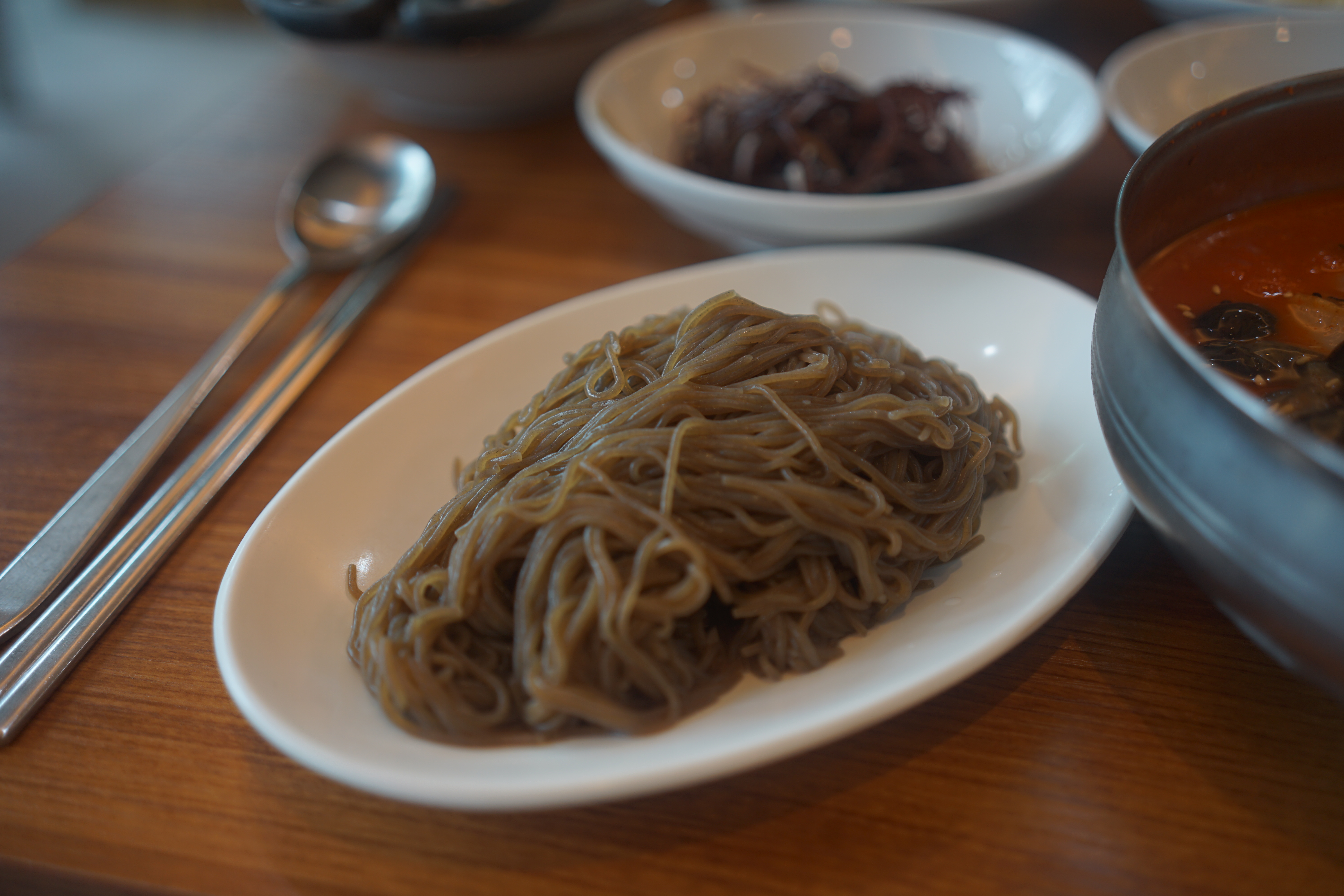 전복 물회에서 옵션으로 사리를 주문하면, 흔히 나오는 소면 사리가 아니라 냉면 사리가 나온다. 밥 대신 사리를 주문하기를 잘했다고 생각했다.