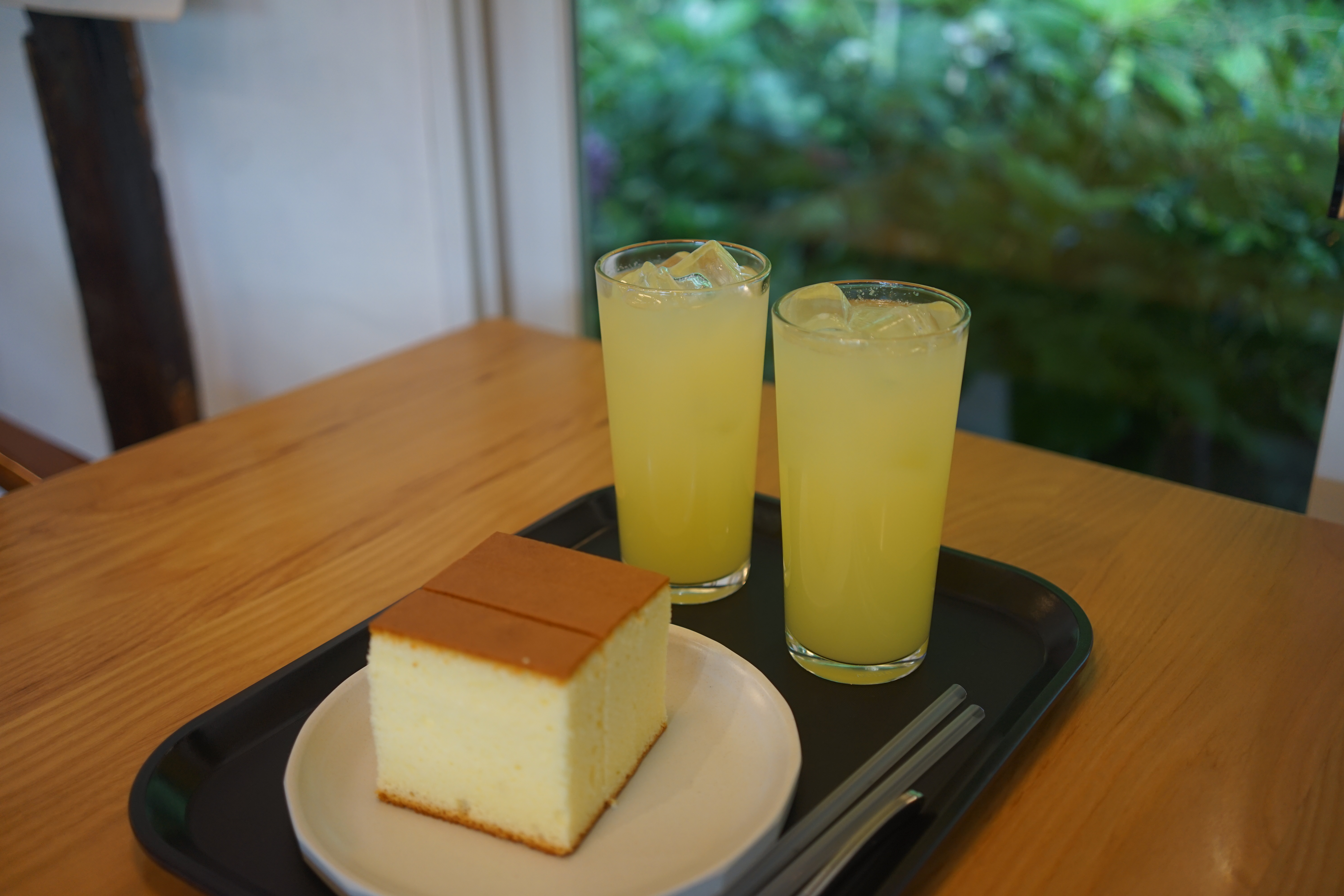 시원한 유자차 두 잔과 유자 카스테라 한 접시. 색감도 향도 상큼하고 시원해 보이는 카페 유자의 추천 메뉴들이었다.