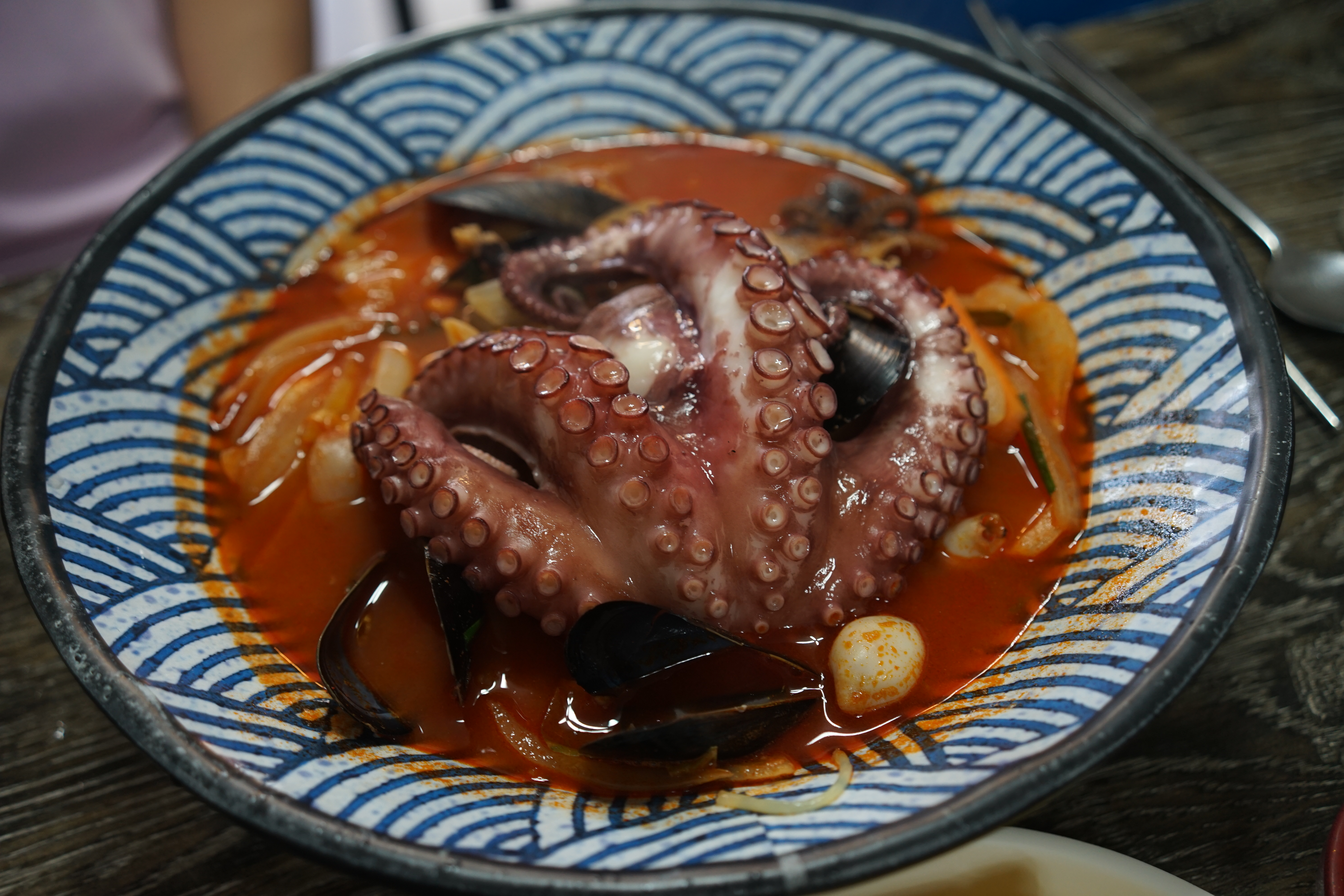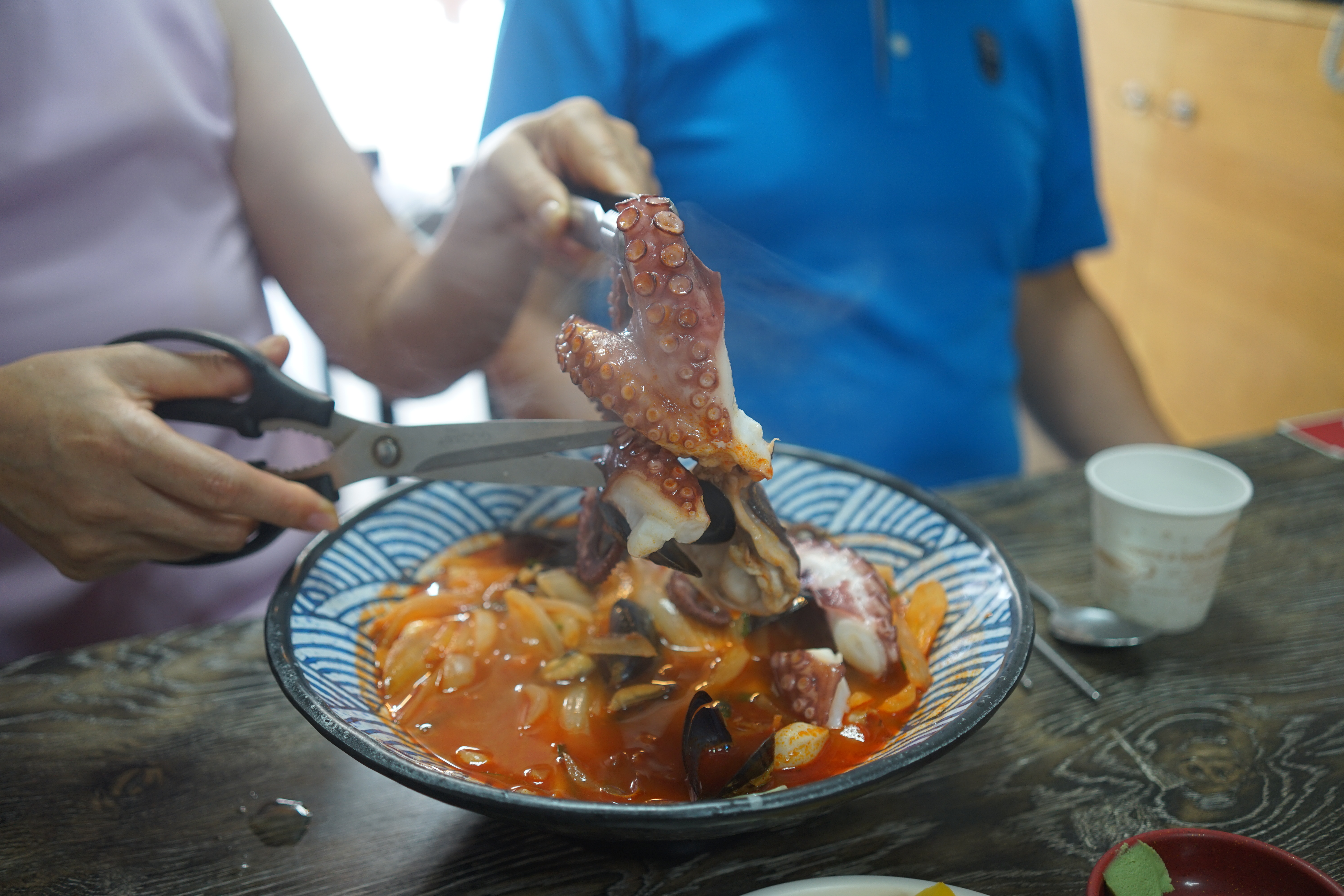 가위와 집게로 문어를 알맞게 잘라서 먹으면 된다. 비주얼 말고는 딱히 특색이 없던 문어 짬뽕. 엄마가 실망할까 봐 연신 맛있다고는 했지만 사실 다시 찾아와 먹을 맛은 아니었다.