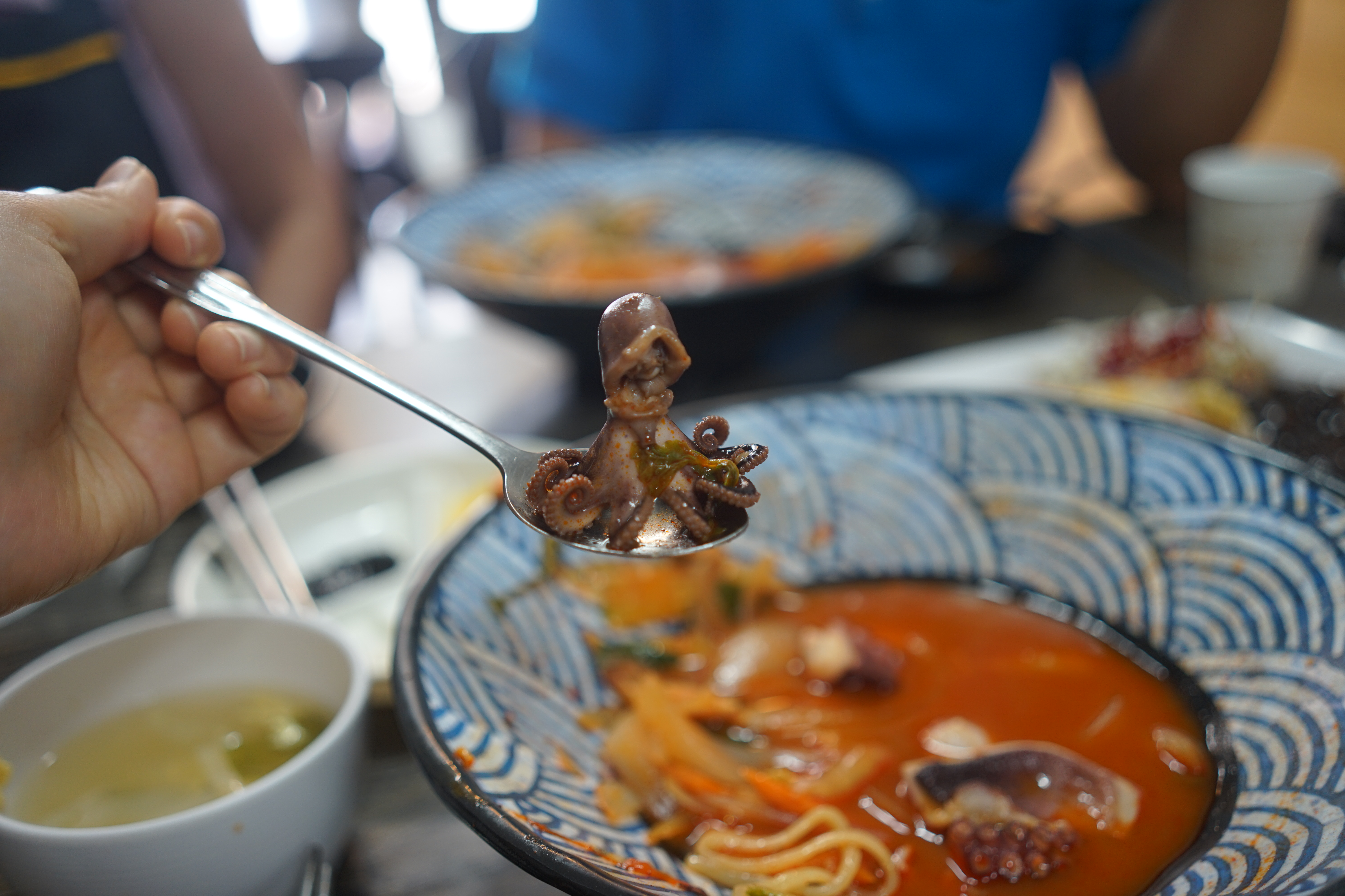 문어 짬뽕에서 발견한 주꾸미. 아기 공룡 둘리에 나오는 주꾸미 왕자랑 똑같이 생겨서 웃겼다. 그래도 주꾸미가 한 세 마리 정도는 들어있었던 문어 짬뽕. 언니가 문어를 좋아하지 않아 내가 문어를 많이 먹었는데 사실 좀 질겨서 곤혹스러웠다. 엄마가 삶아주는 문어가 훨씬 맛있다.