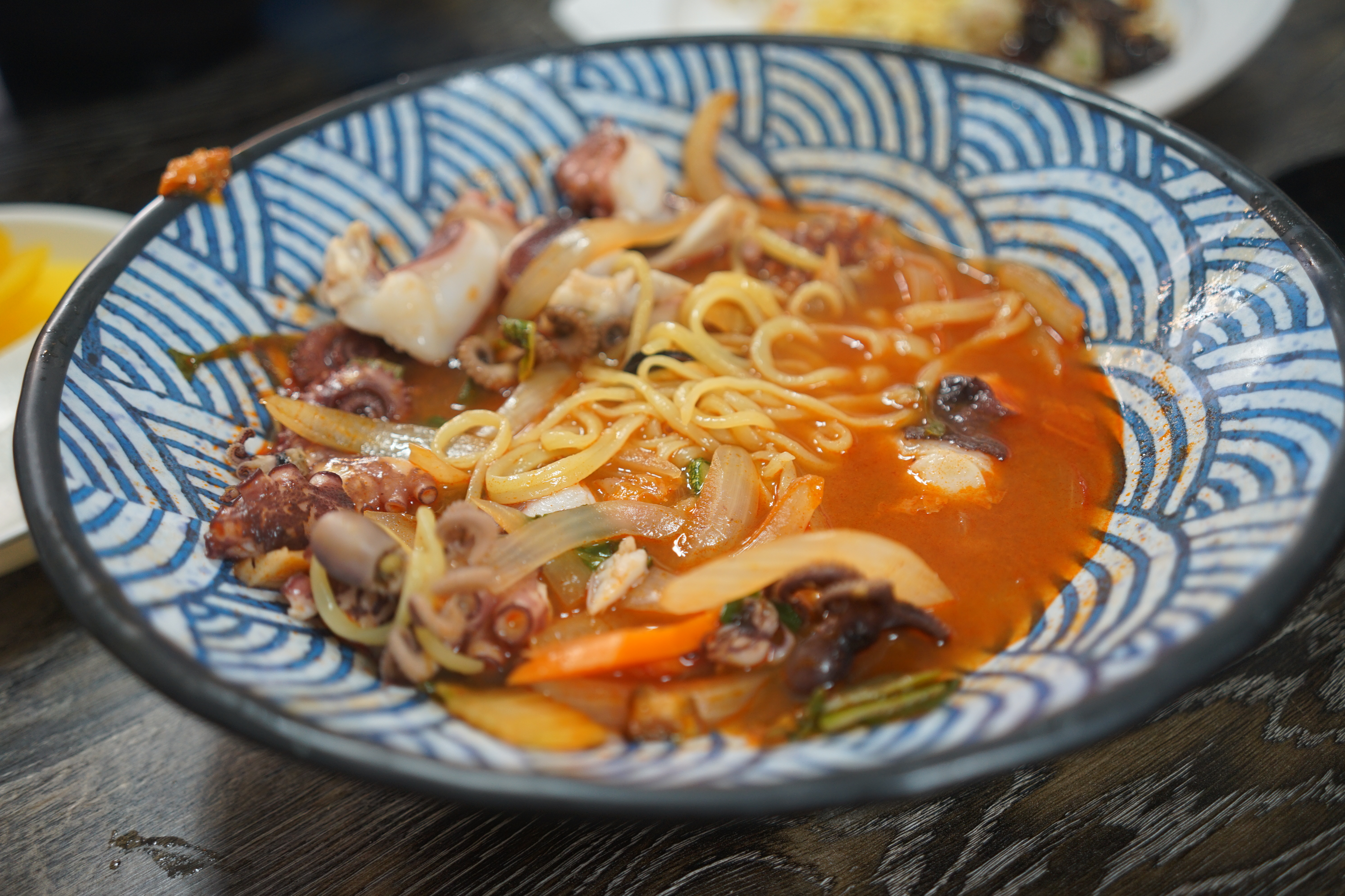 손님이 꽤 많았는데 금방 나온 문어 짬뽕. 금방 나와 좋긴 했지만 생각보다 문어가 질겼다. 바깥의 수조에 문어가 한 마리도 없는 걸로 봐서는 미리 문어를 삶아놓고 주문이 들어올 때마다 데워 올리는 느낌이었다. 그래도 비주얼은 기가 막히게 좋았다.