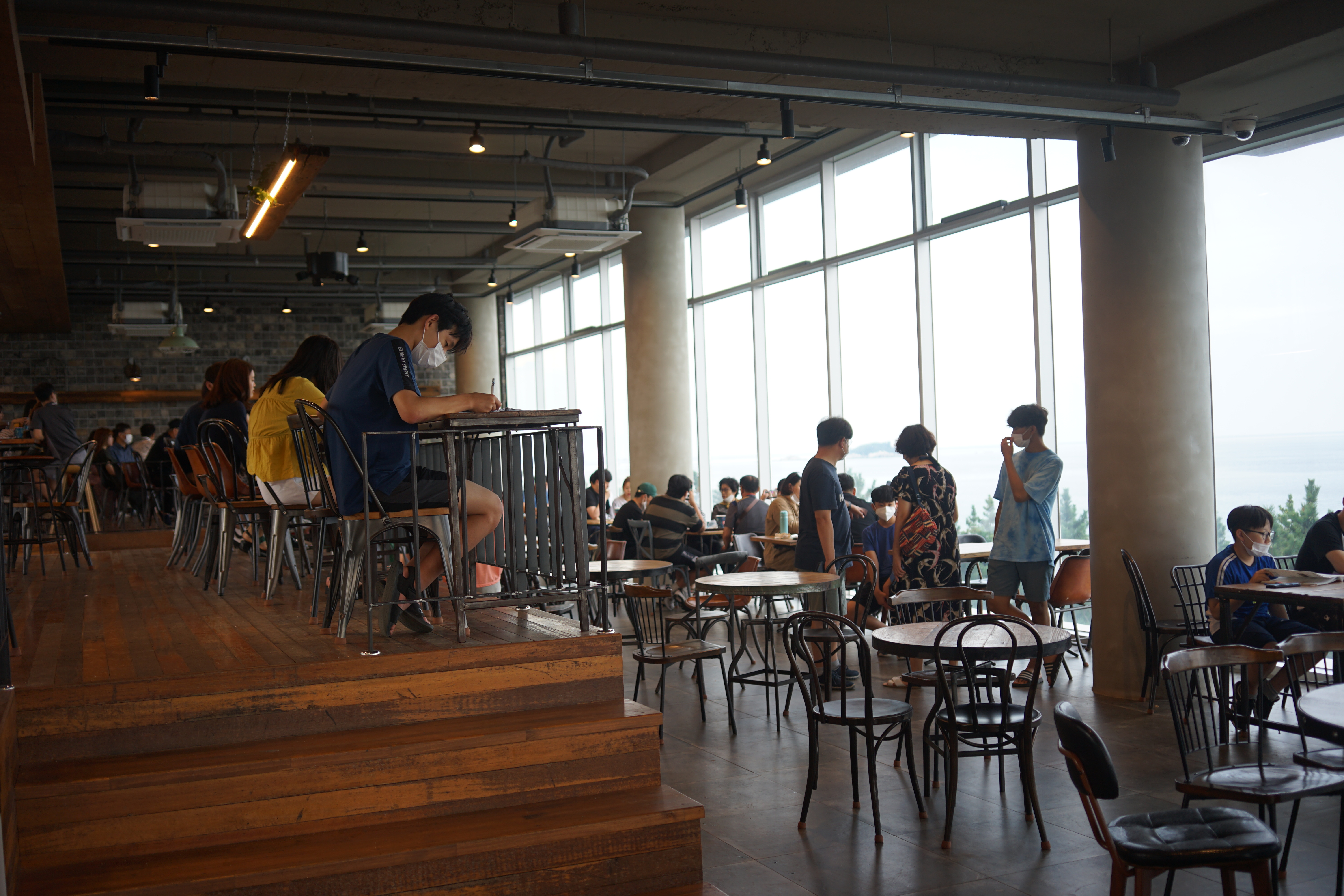 바다 정원은 내부도 넓은데 야외 테이블이 더 인기가 많았다.