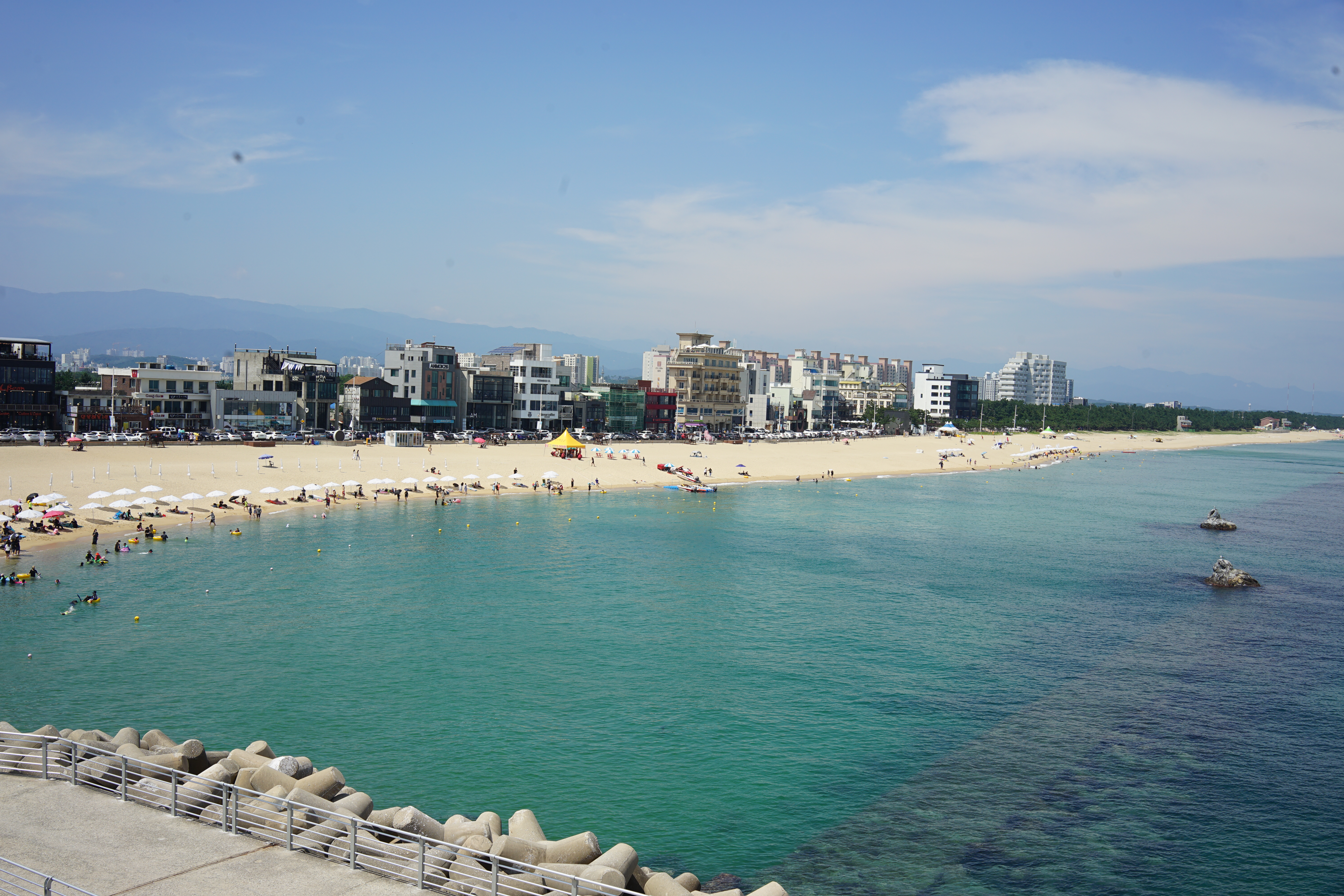 파노라마로 찍어도 예쁜 안목해변 할리스 커피의 바다 뷰. 강릉의 커피가 맛있다고는 하나 테라로사 미만은 잡이었다. 테라로사 안 갈 바에야 그냥 프랜차이즈에서 멋진 바다 뷰를 구경하는 게 괜찮다는 것이 강릉 현지인의 팁이었다.