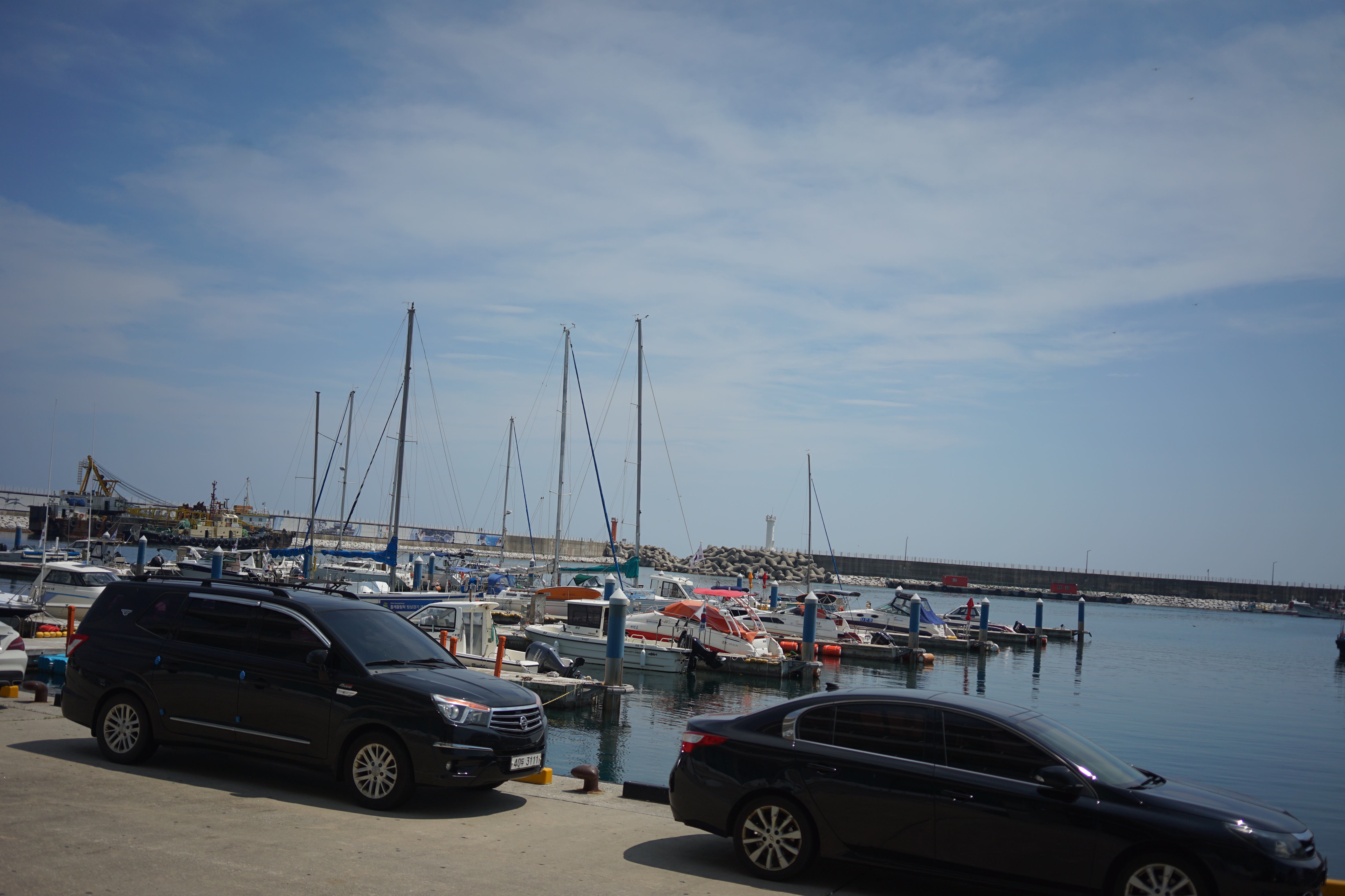 강릉항 여객터미널 쪽에 있던 할리스 커피. 주차하느라 애를 먹었다. 여기 무슨 중고차 매장 아니냐고 할 정도로 차들이 빽빽이 들어차 있었다. 차가 돌아 나와야 하는 통로에 누군가가 주차를 해 두었는데, 어차피 그 차 때문에 그 통로가 막혀있어 우리도 그 차 뒤에 주차를 했었다. 나중에 전화를 해 보니 통로에 주차한 그분은 울릉도에 계셔서 차를 빼지 못한다고 하셨다. 새벽에 출발하면 어두워서 잘 분간이 안됐을 것 같기도 하다. 얌체 차주긴 했지만 우리는 덕분에 주차를 할 수 있게는 되었다. 안목해변의 측면에서 안목해변을 넓게 바라볼 수 있는 할리스 커피. 역시 바다 뷰로 인정받는 안목해변 카페였다.