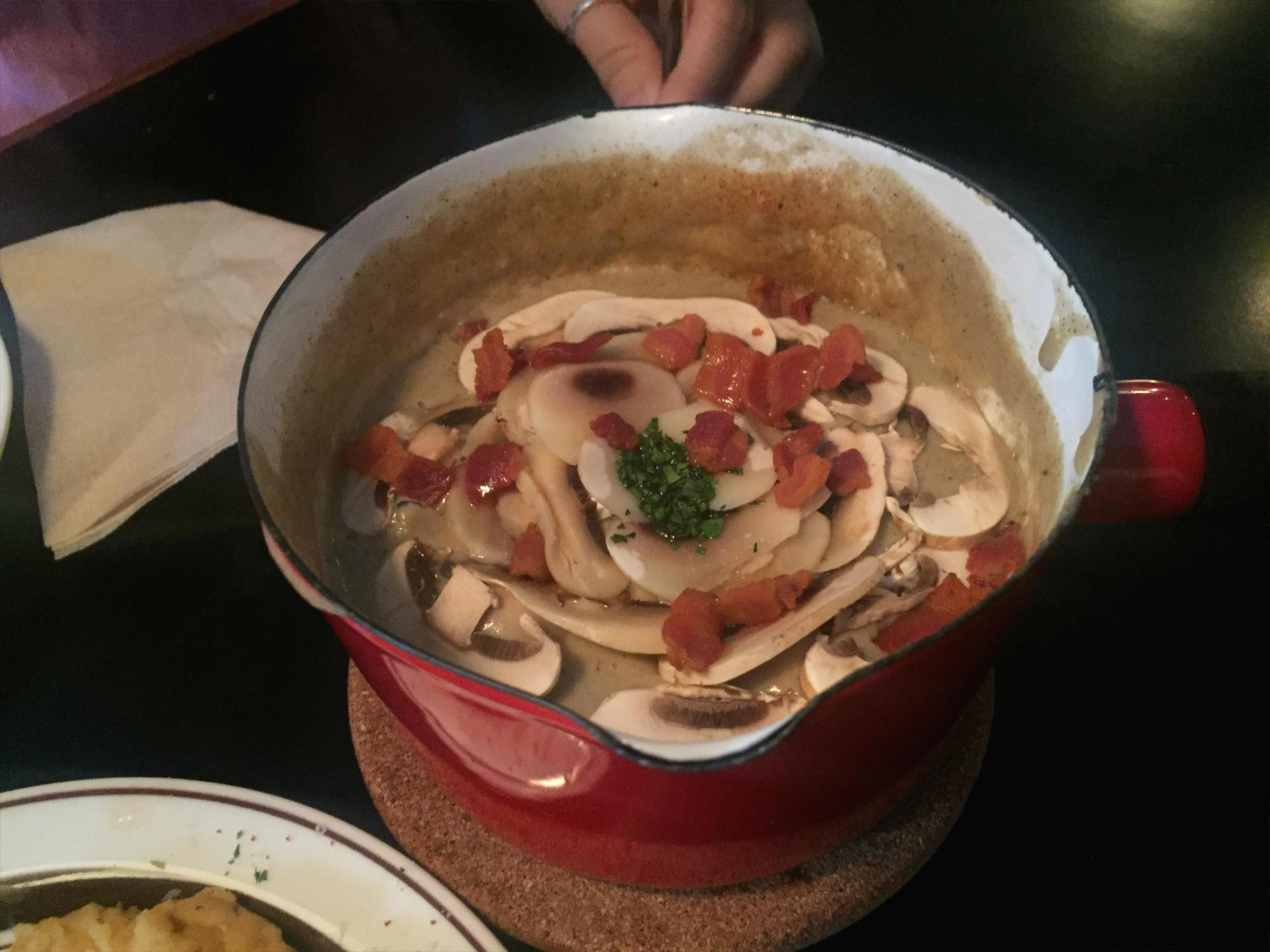 다음날 출근이었지만 오랜만에 만났으니 2차까지 가기로 했는데, 이 근처에 크래커 말고 괜찮은 술집이 있는지도 모르겠고 알아보기도 귀찮아서 앉은자리에서 다시 2차를 시작하기로 했다. 싹 치우고 다시 시작하자며. 그래서 주문한 버섯 수프. 이것도 정말 맛있었다. 트러플 향도 정말 진하고 버섯도 가득 들어가 있었다.