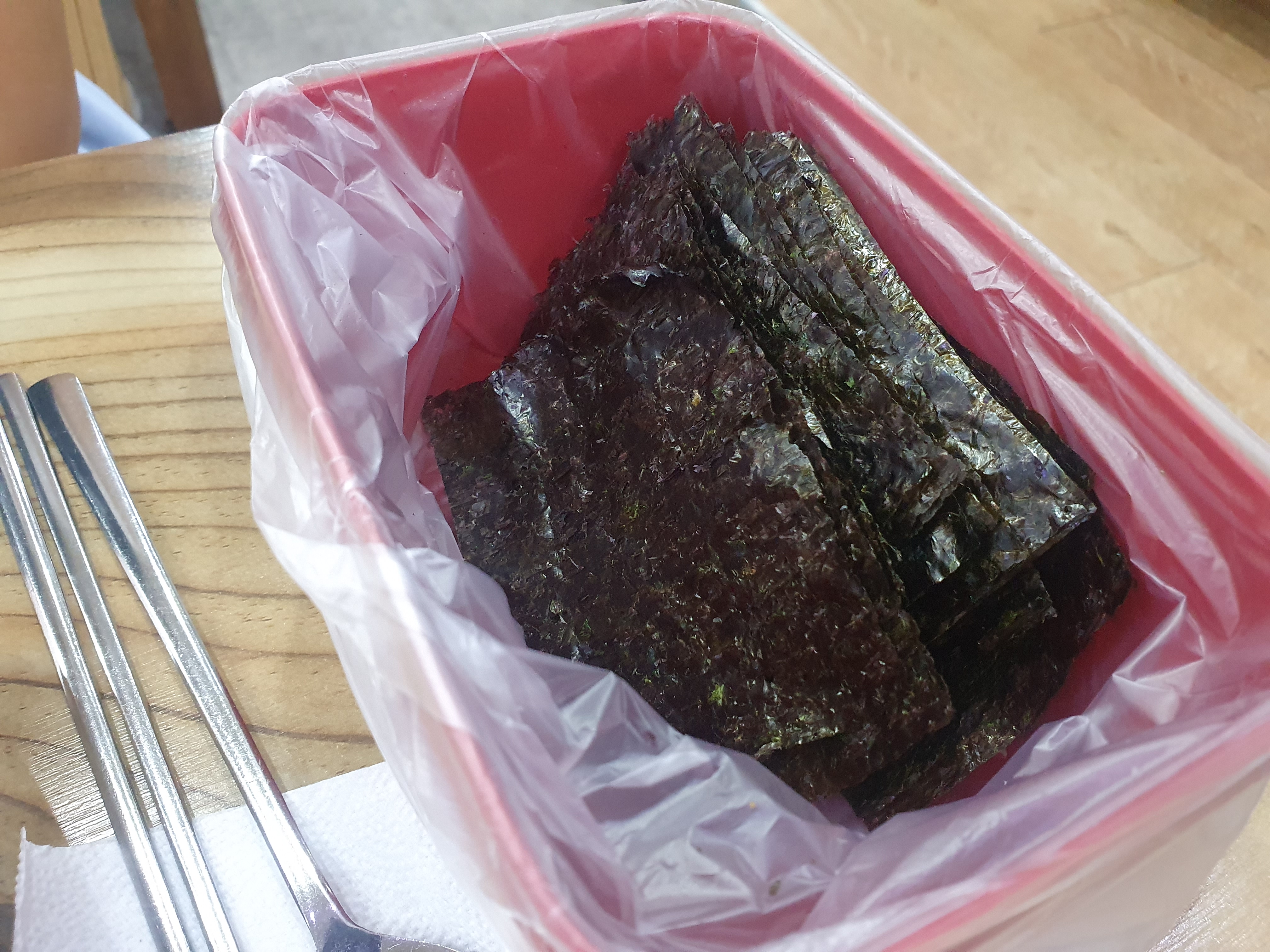 테이블마다 구비되어 있는 김. 쫄데기 두부전골에 김까지 있으니 정말 집밥 같은 느낌이 들었다. 비계가 많이 없어 느끼하지 않아서 맛있게 먹을 수 있는 쫄데기 두부전골. 대전에서 집밥이 그립다면 유성온천역 근처 검상골 추천. 체인점도 꽤 있으니 참고.