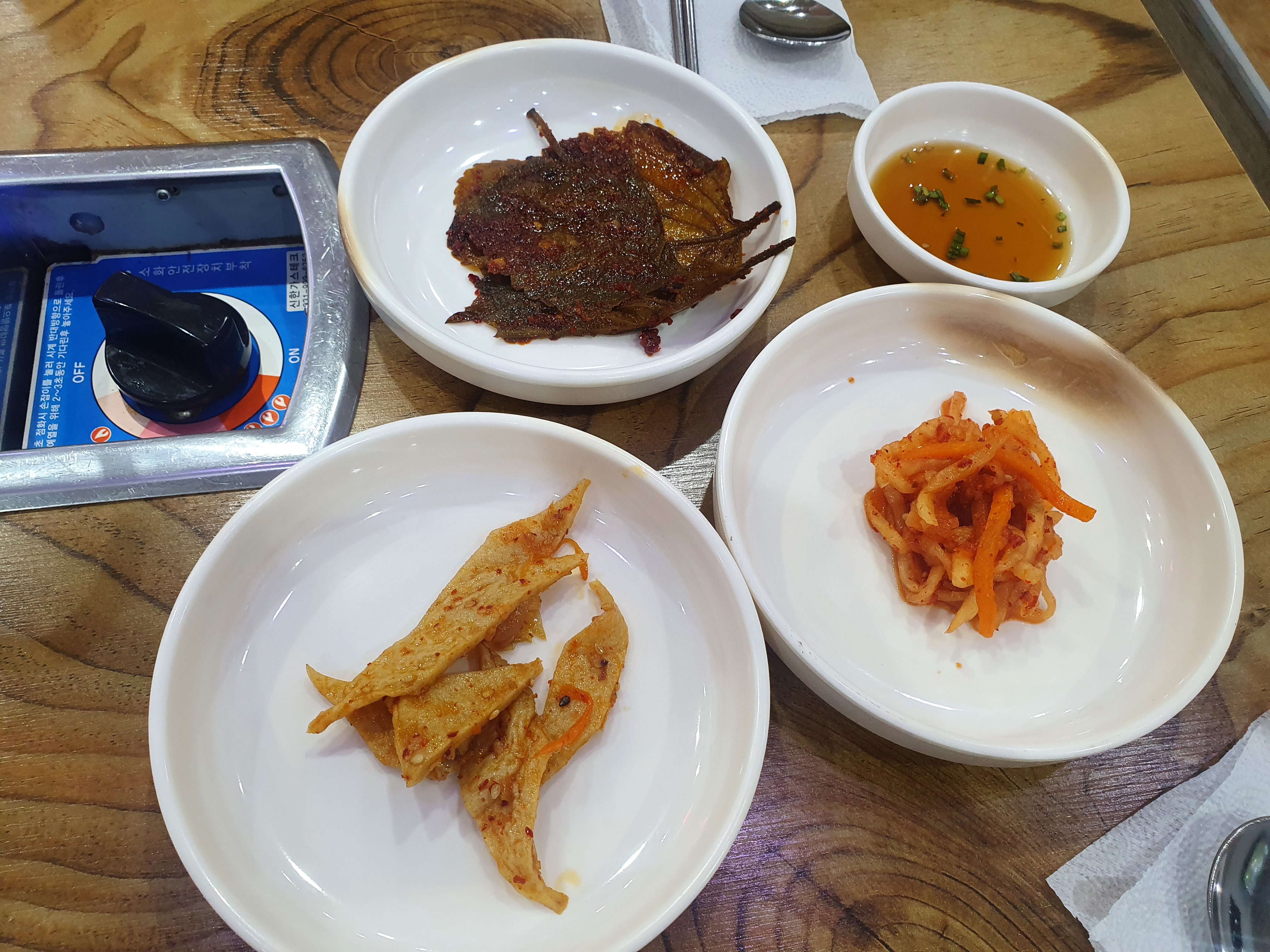 반찬은 조금씩 주시는데 셀프 코너에서 반찬을 가져다 먹으면 된다. 쫄데기 두부전골로도 충분해서 다른 밑반찬은 리필해 먹지 않았다.