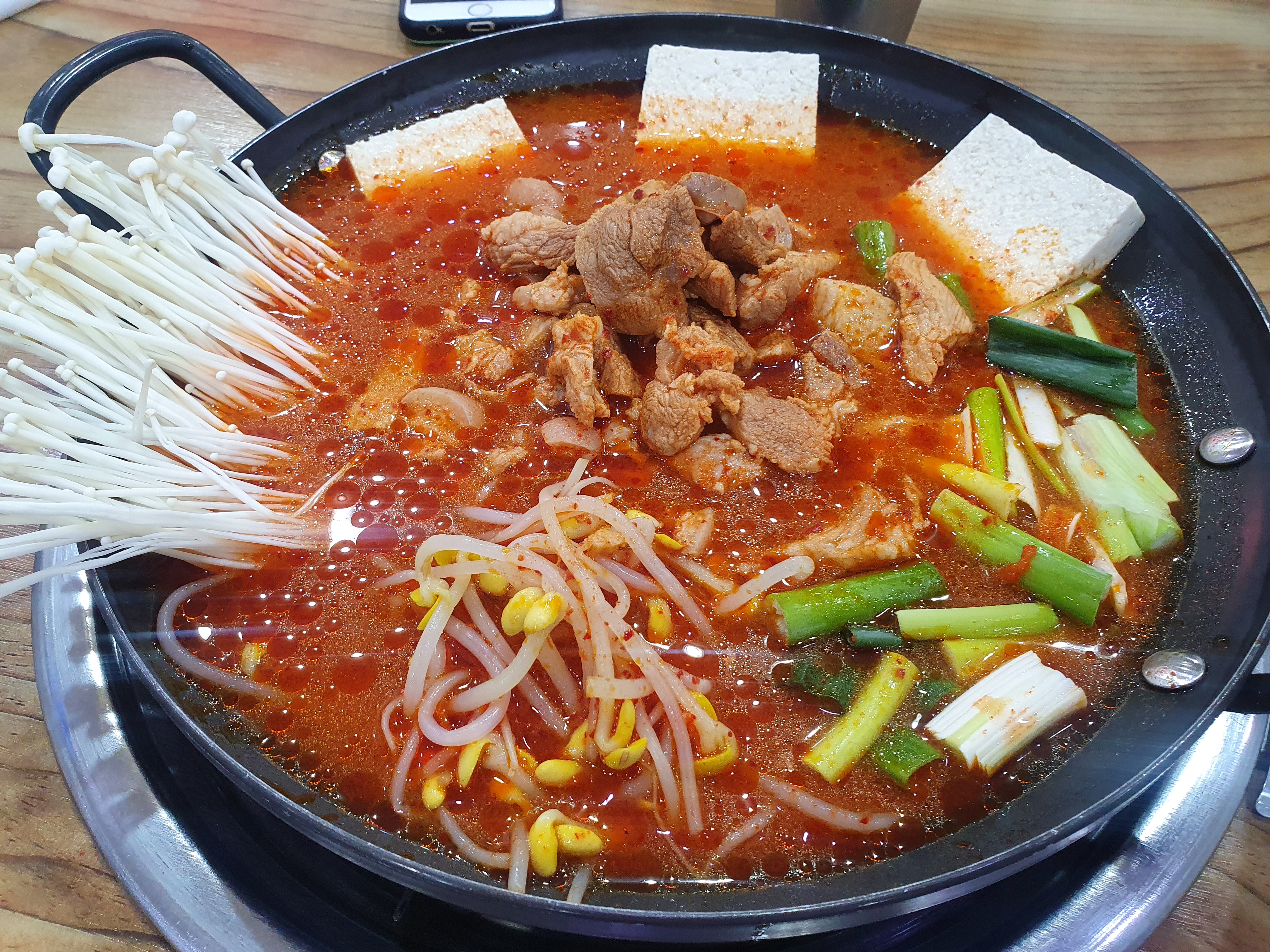 매주 수요일에 꼭 만나서 저녁을 함께 먹는 오빠와 나. 오빠와 수요일에 저녁을 먹노라면 한주의 중간에서 잠깐 쉬어가는 느낌이 든다. 인사 채용 업무로 고생이 많은 오빠를 위해 밥 먹고 힘내라고 밥이 나오는 맛집을 찾았다. 우리는 한 번도 가보지 못한 집인데 유성온천역 근처 검상골이 나름 맛집이라고 해서 가보기로 했다. 보기엔 김치찌개 파는 집인 것 같은데 쫄데기 두부전골이라니 궁금했다.