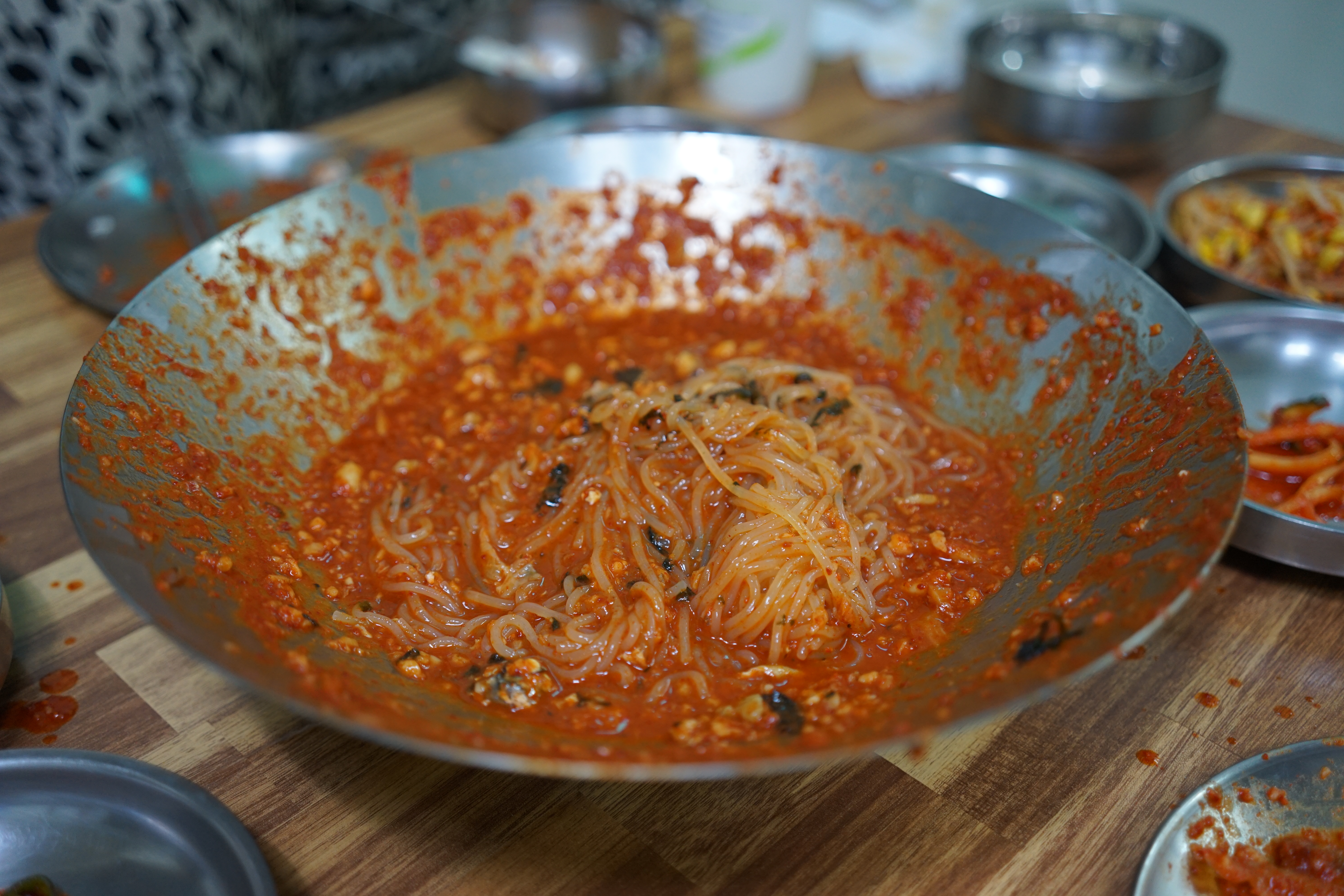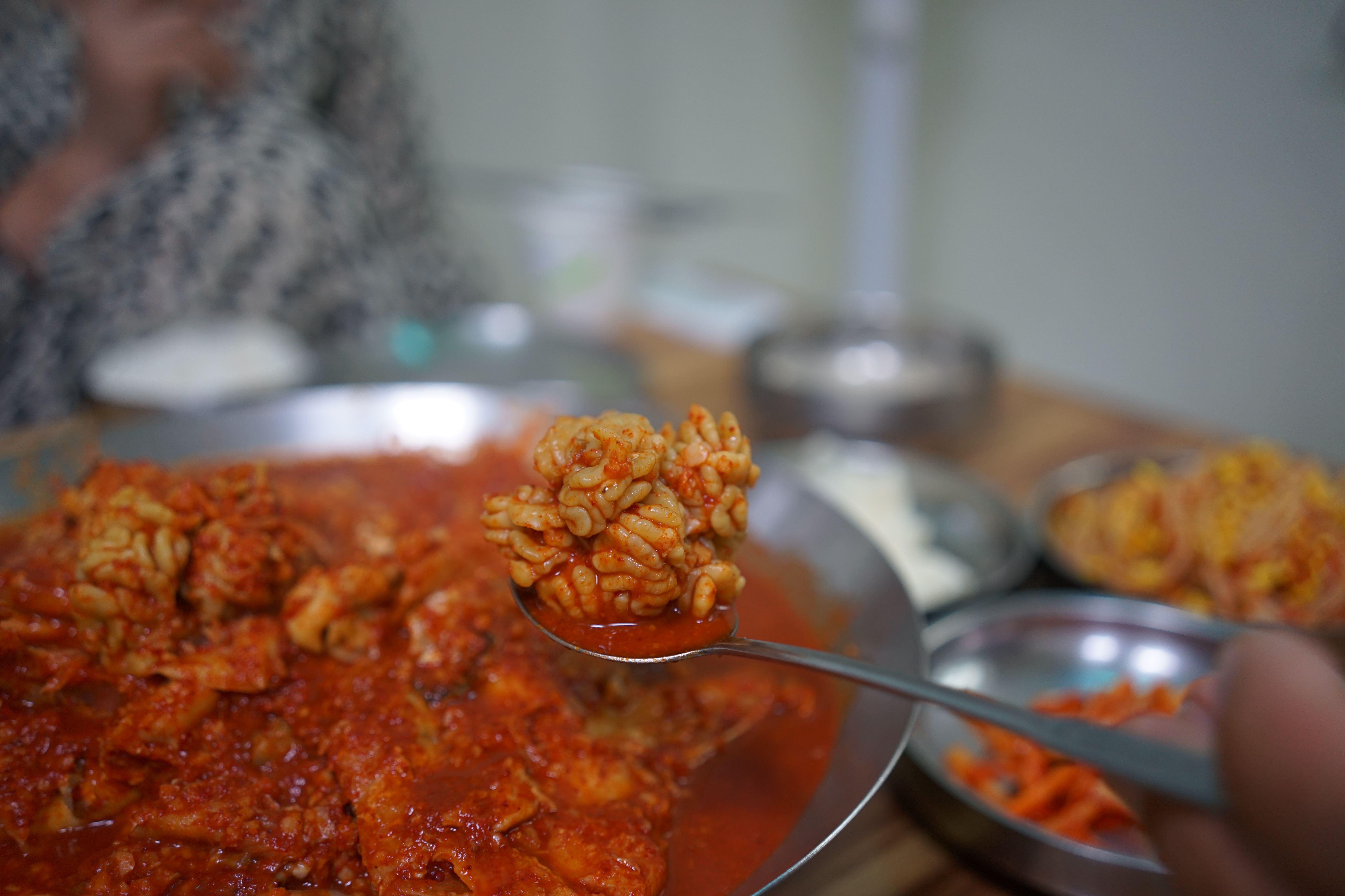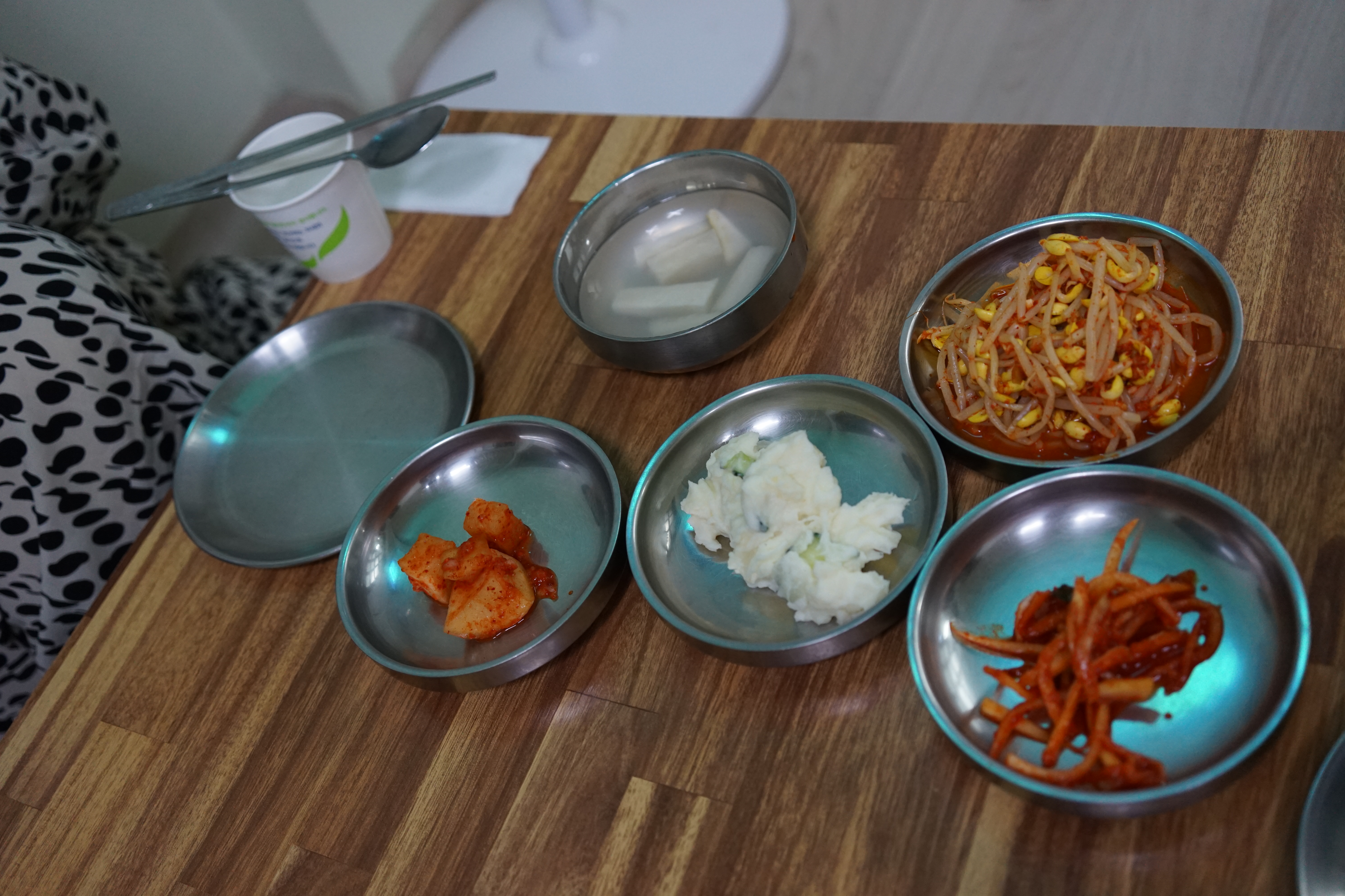 밑반찬은 평범하다. 다른 식당 아귀찜에는 콩나물이 들어가는데, 대구뽈찜에는 콩나물이 없고 대신 밑반찬으로 콩나물이 나온다. 매운 걸 좋아하는 우리 가족이기에 처음 방문했을 때는 맵게 해달라고 주문했었는데, 김유순 대구뽈찜 집에서는 기본 맛 자체가 맵기 때문에 그럴 필요가 없다.