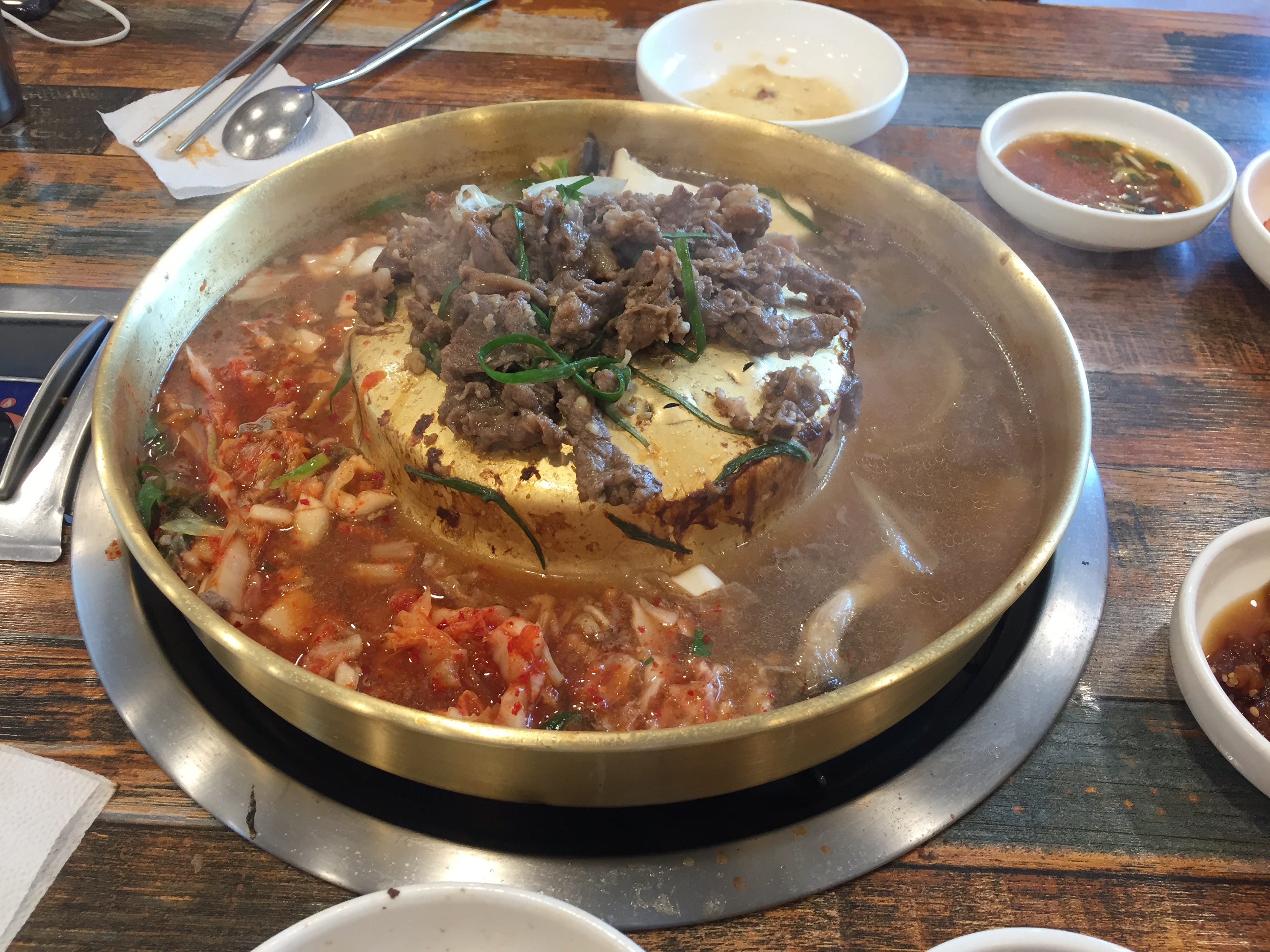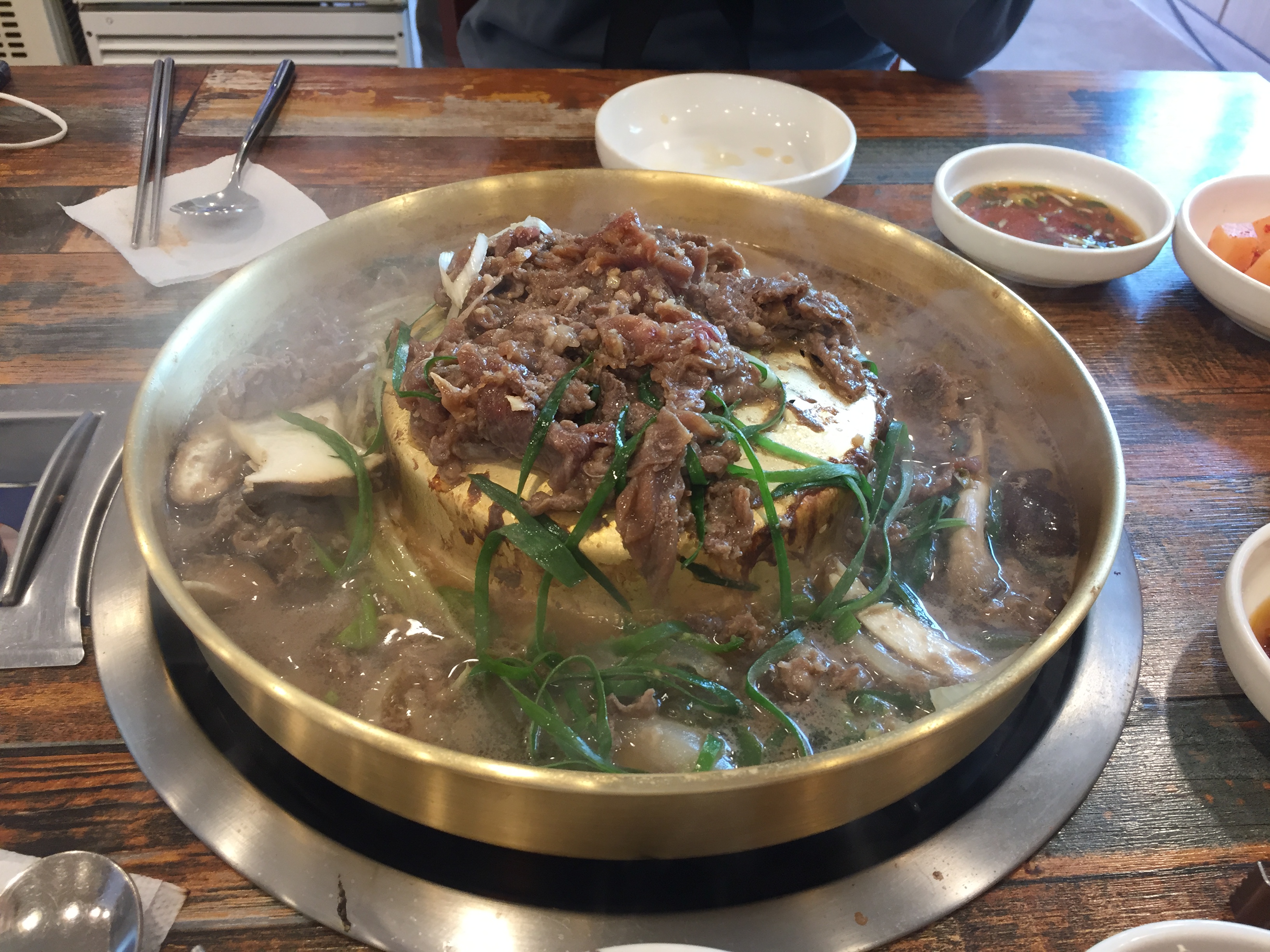 정말 산더미처럼 쌓아진 불고기들. 판 위에서 구워서 먹어도 되고 국물에 내려 샤부샤부처럼 먹어도 맛있다.