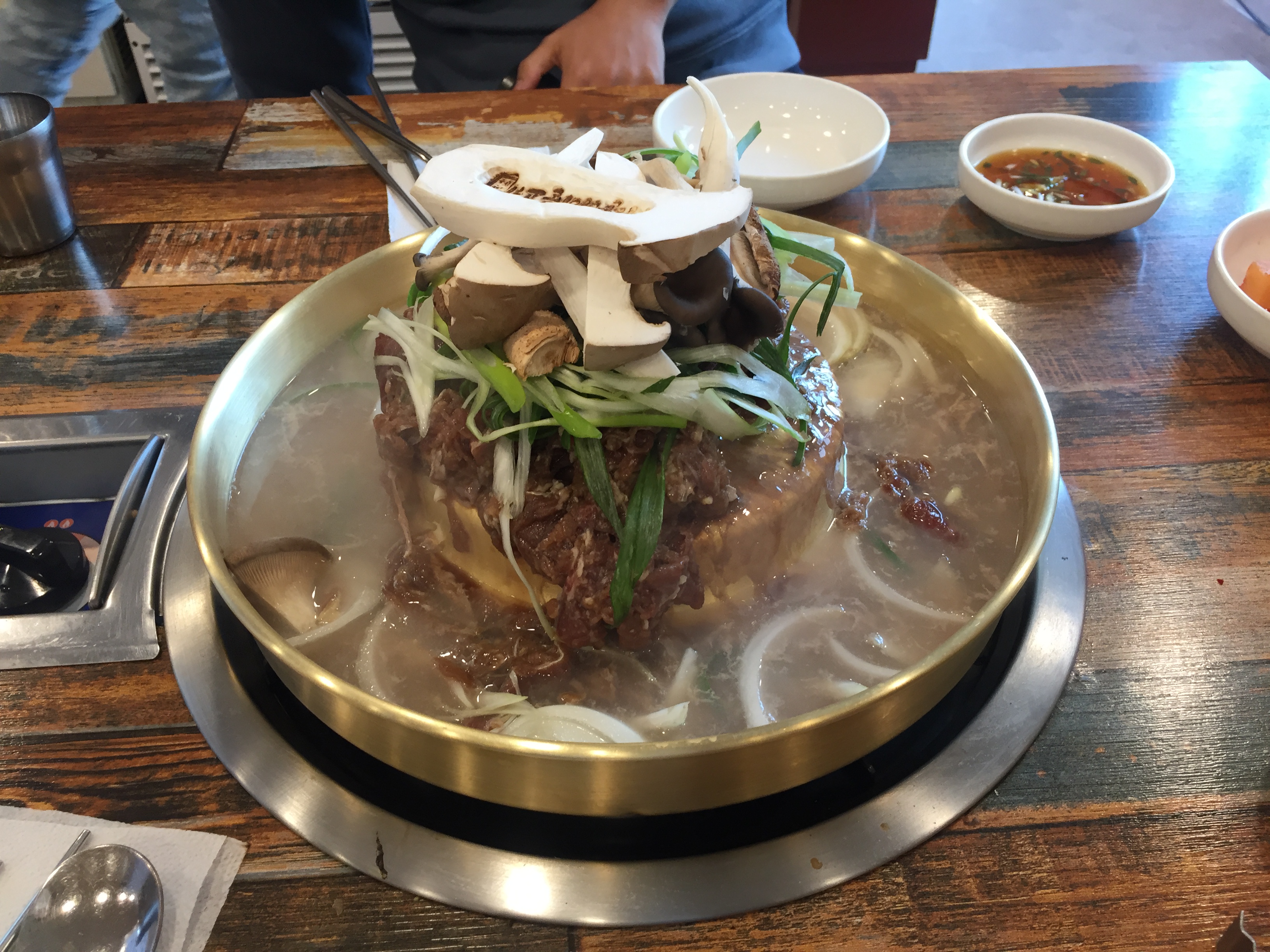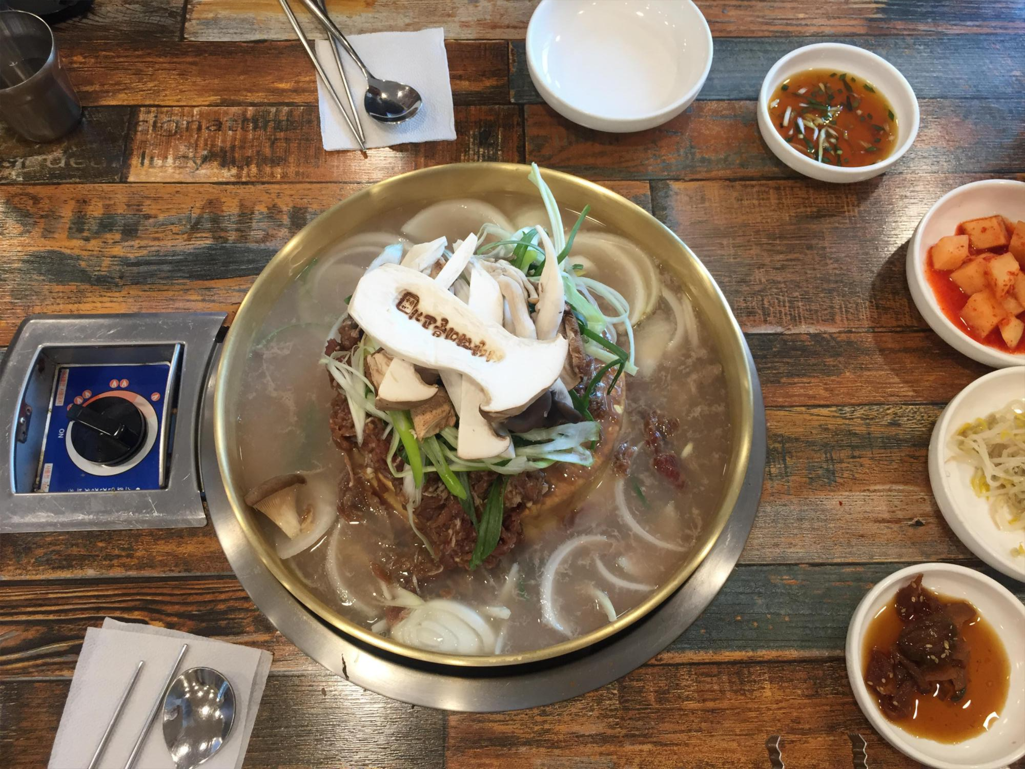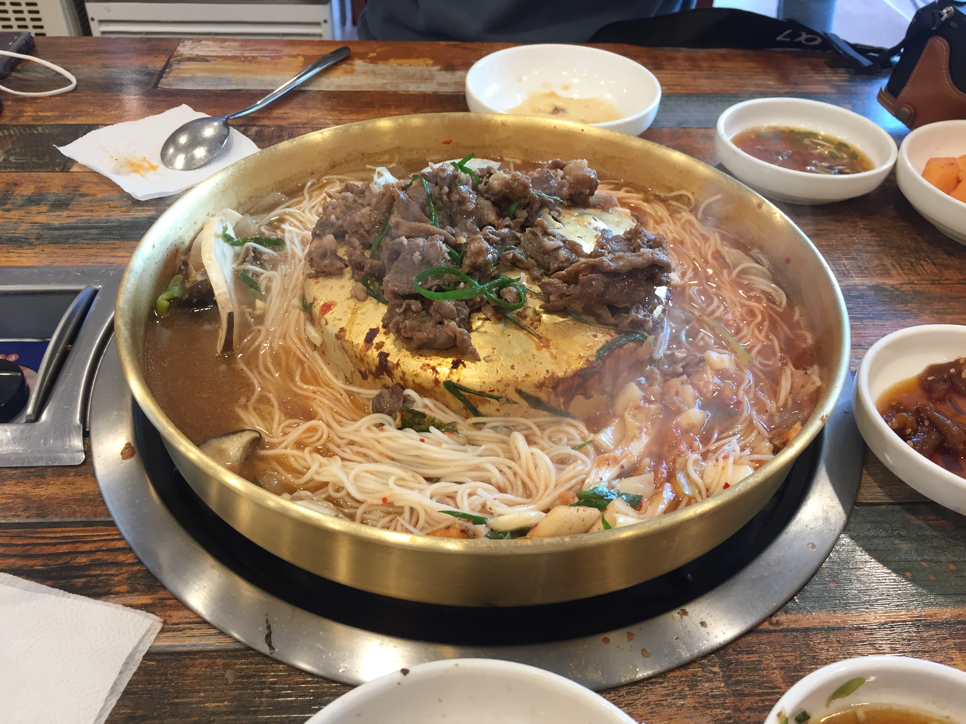 샤부샤부처럼 먹고 남은 불고기는 판에 구워서 먹었더니 숯불갈비 같은 맛이 났다. 한 번에 두 가지 맛을 즐길 수 있어 좋았다. 불고기가 반쯤 남았을 무렵 소면을 주문하면 된다.