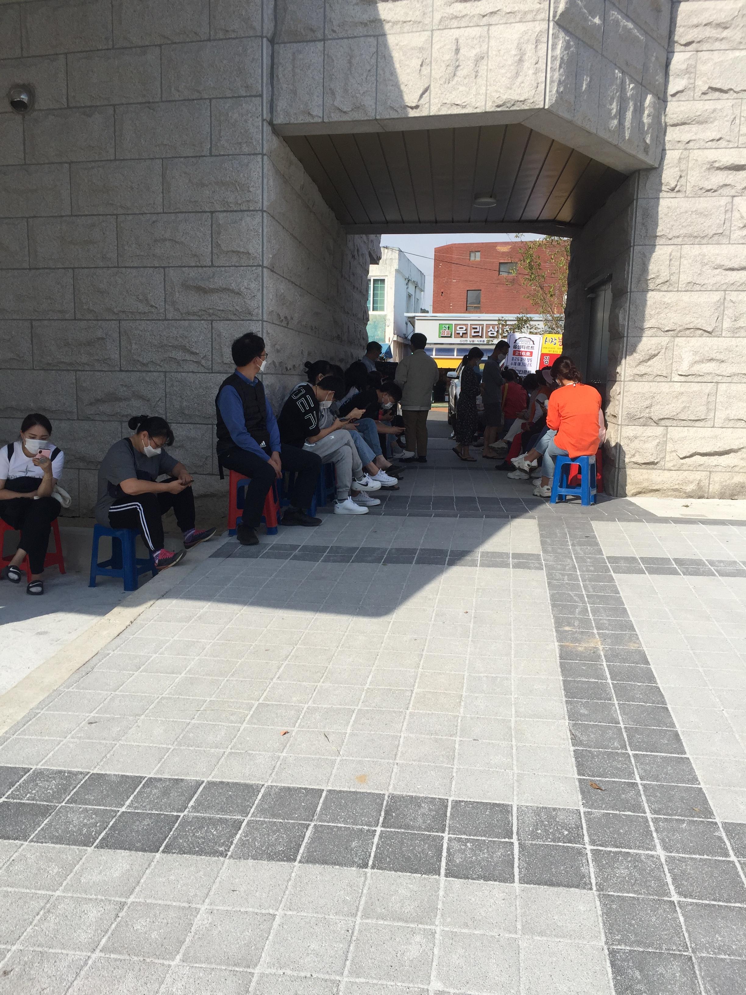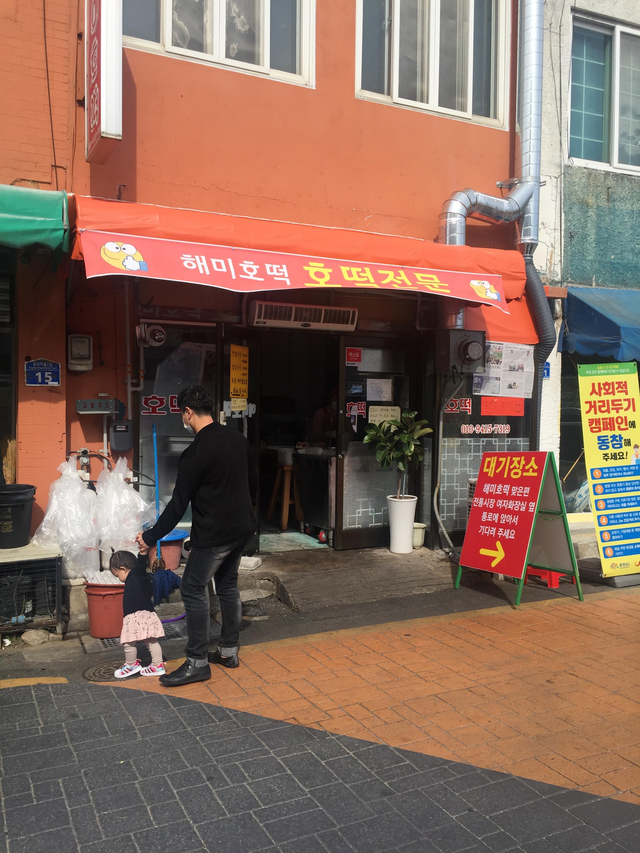 엄마 말로는 비허가 건물 문제로 문을 닫았을 거라던 서산 해미 호떡(마가린 호떡)이 영업을 하고 있었다. 마침 손님도 별로 없어 이게 웬 횡재냐 싶었는데, 빨간 입간판의 대기장소 화살표가 뭔가 불길했다.