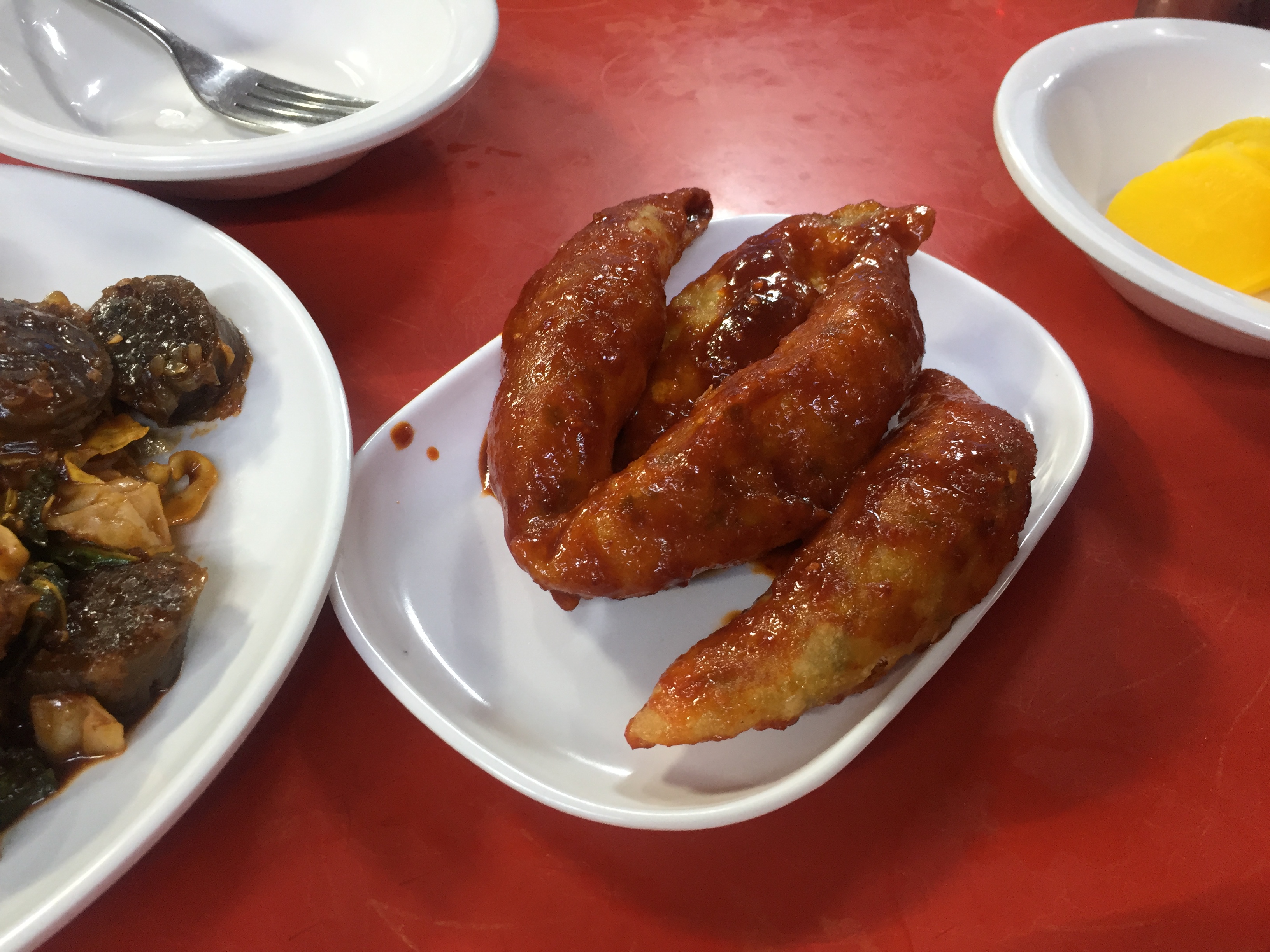 대망의 무침 만두! 생각해보니 내가 예전에 즐겨봤던 다비치 강민경 유튜브에서 강민경이 세화여고 재학 시절 많이 먹었던 무침 만두를 집에서 직접 만들어먹는 장면이 있었는데, 이게 그 무침 만두였구나 싶었다. 비빔만두 스타일을 예상했는데 양념이 된 군만두가 나와서 신기하다고 생각하고 있었다. 무침 만두 한입 맛을 보니 왜 이 무침 만두가 애플하우스의 시그니처 메뉴인지 알 것 같았다. 양념치킨 같은 양념이 묻힌 군만두는 맛있는 것과 맛있는 것이 더해져 정말 맛있었다. 양념이 묻었지만 꾸덕해서 만두가 여전히 바삭하고 맛있었다. 다음에 또 애플 하우스에 들르게 된다면 그때는 무침 만두를 더 많이 시킬 예정이다.