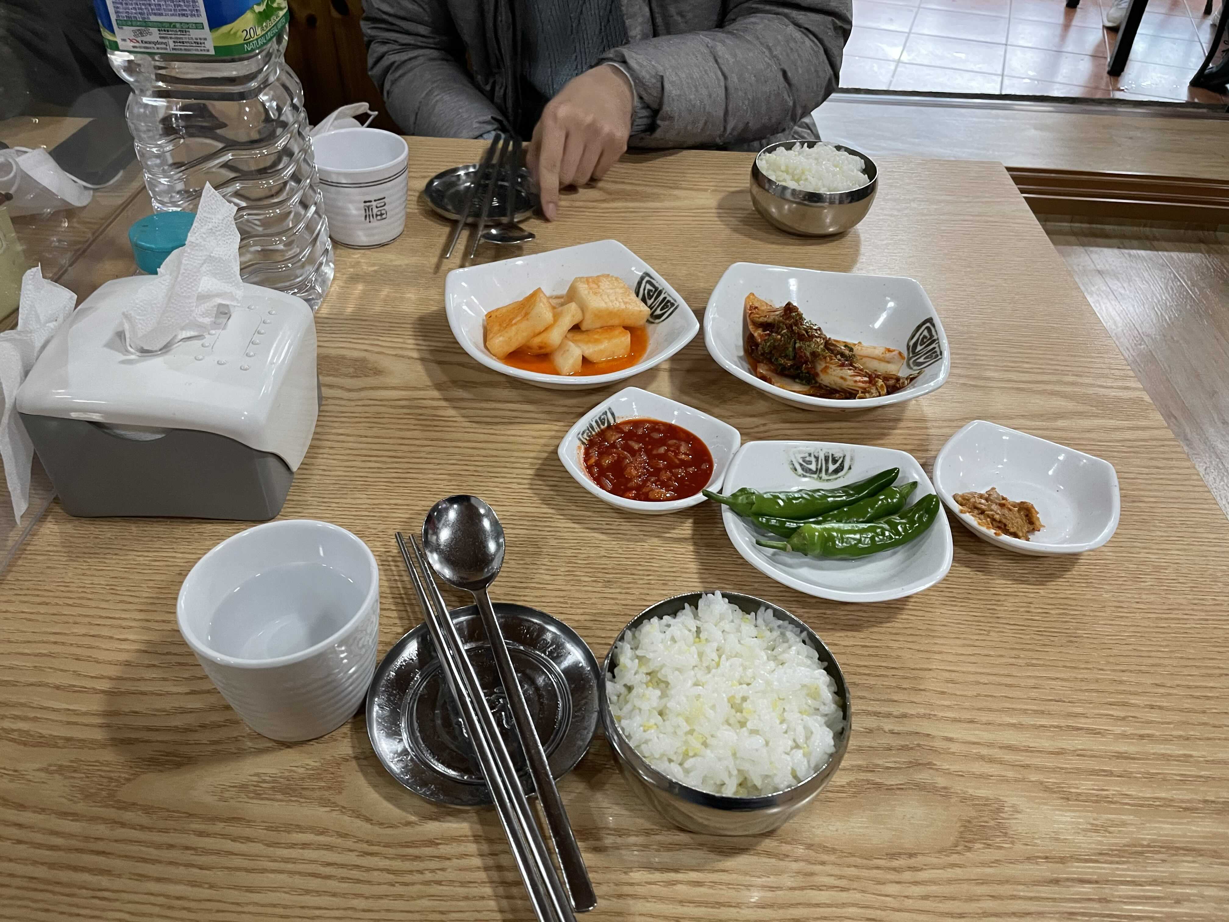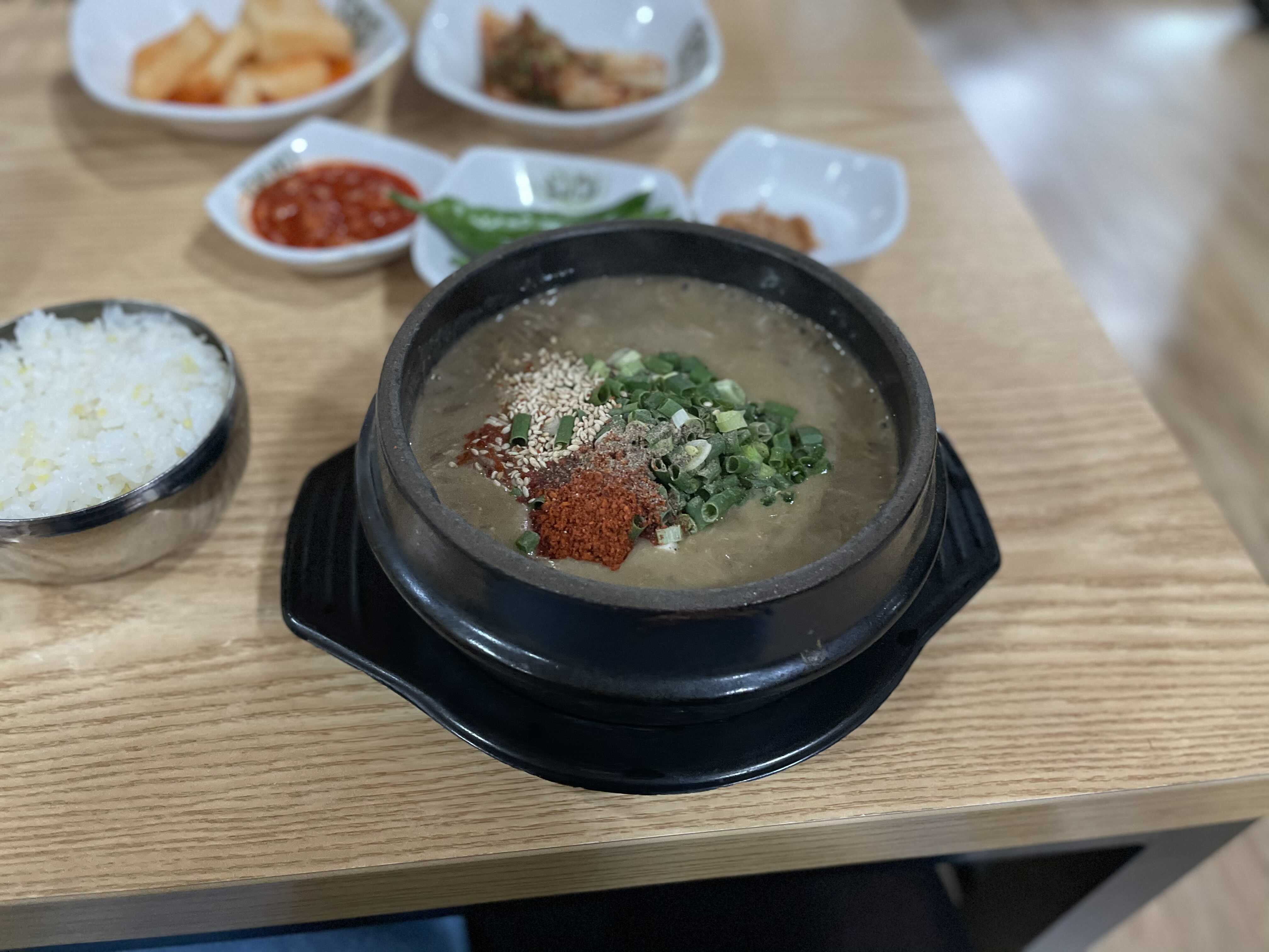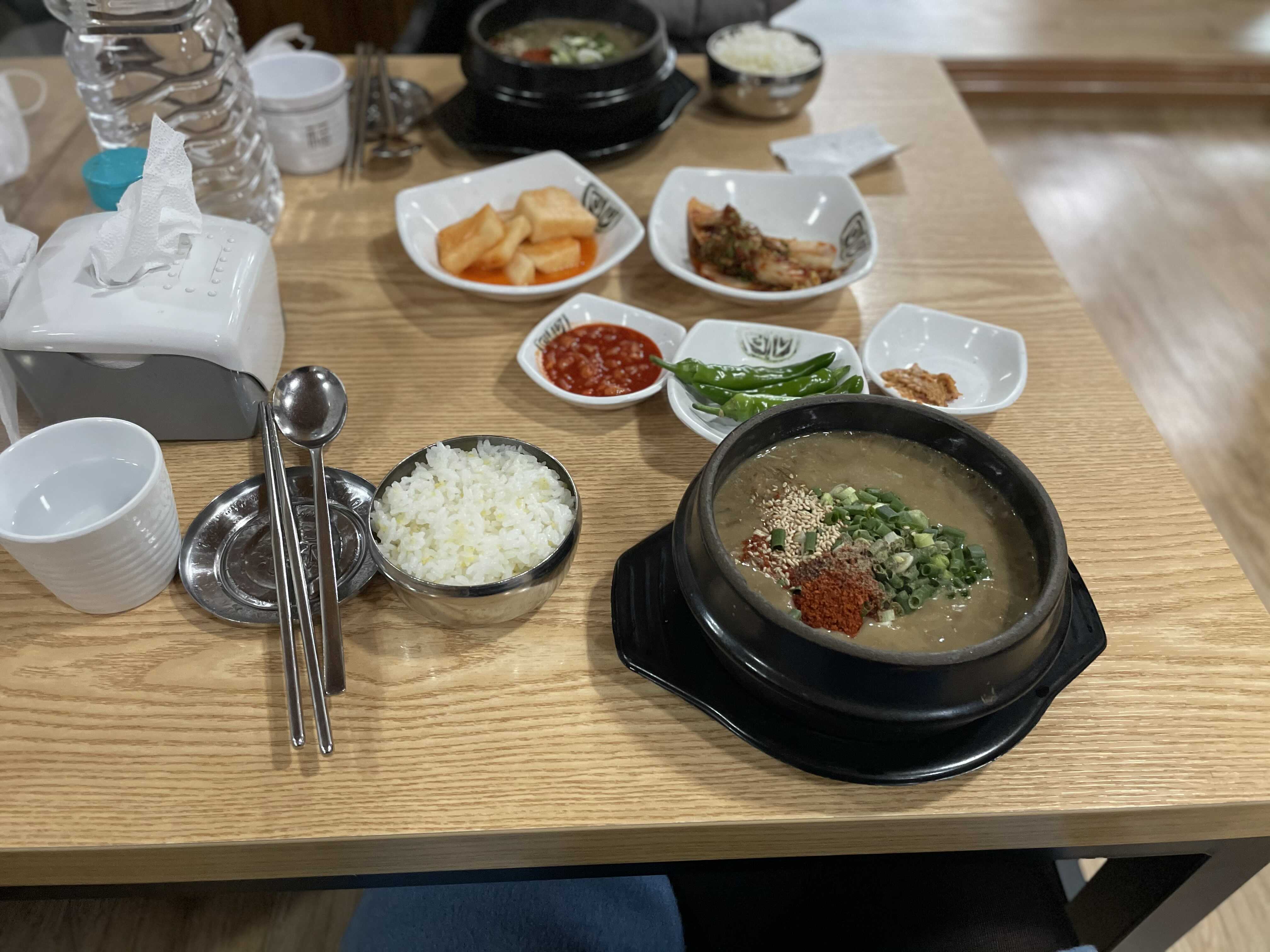 테이블에 이미 밑반찬과 밥이 차려져 있었다. 그래서 그런지 밥은 이미 많이 식어 있어서 아쉬웠다. 그래도 메인 메뉴인 고사리 해장국이 나오지 않았기에 기대를 버리지 않고 기다렸다. 몸국도 팔지만 우진 해장국에 오면 꼭 고사리 해장국을 맛보고 가야 한다.