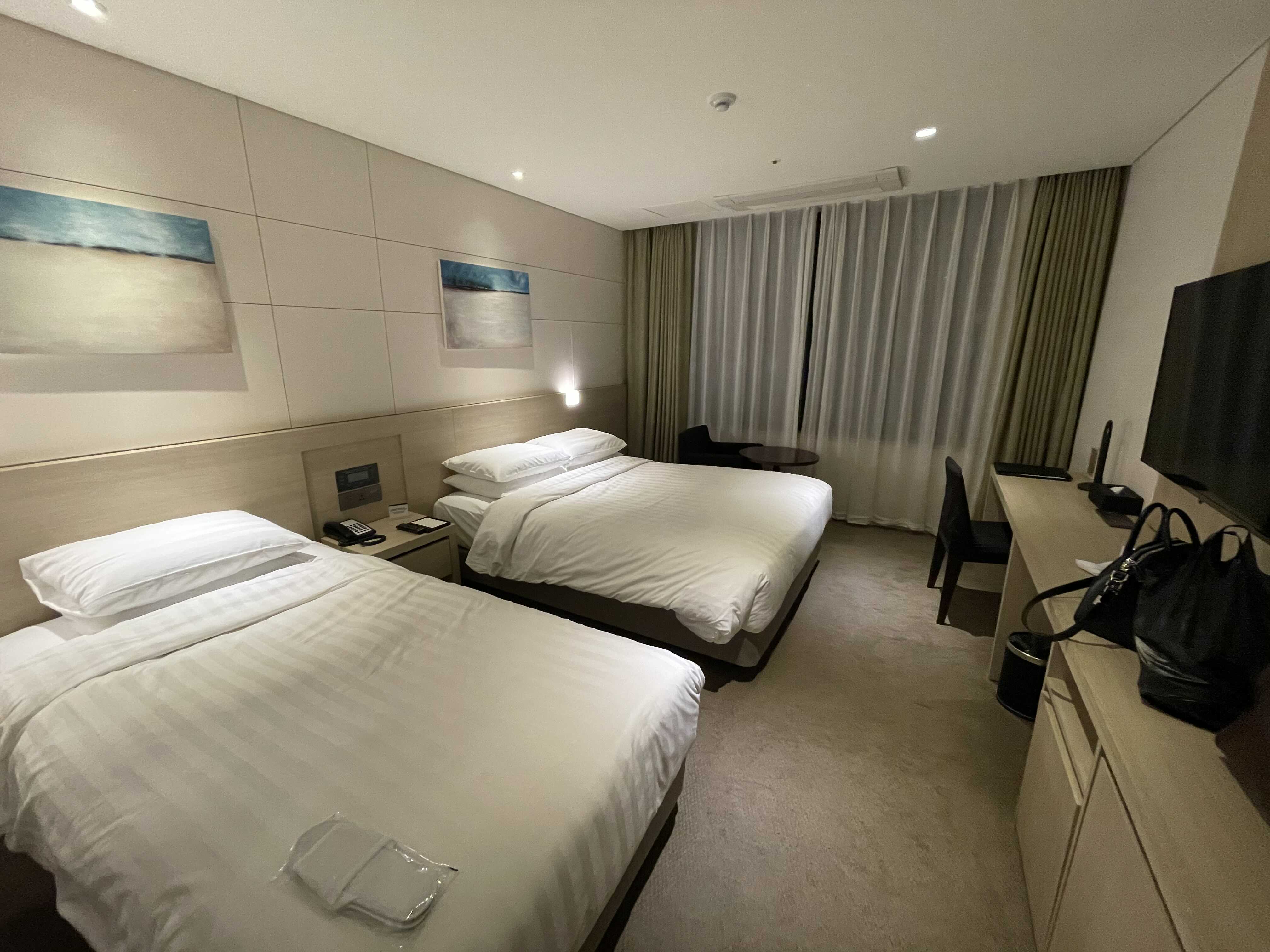 객실 상태는 매우 만족스러웠다. 퀸사이즈 침대와 싱글 사이즈 침대 하나가 있어 제주 여행 동안 남자 친구와 내가 싸우고 따로 자는 데에 전혀 방해가 되지 않았다.(?)
