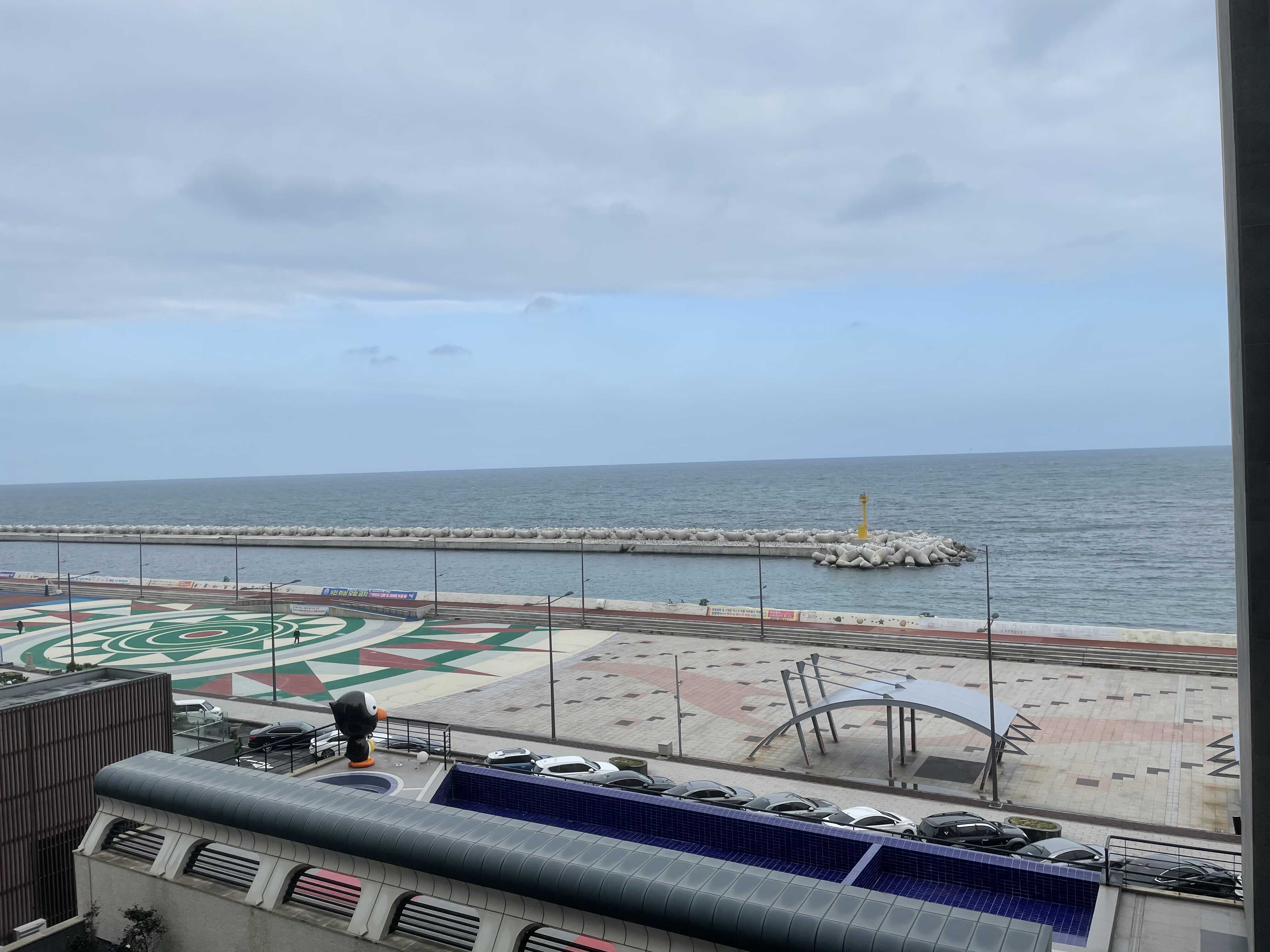 전날 바쁘게 체크인만 하고 지인 집에 다녀온 탓에 숙소 구경을 제대로 하지 못했었다. 다음날 아침 체크아웃 직전에야 창밖 뷰를 볼 수 있었다. 이럴 거면 오션뷰를 왜 했는지.