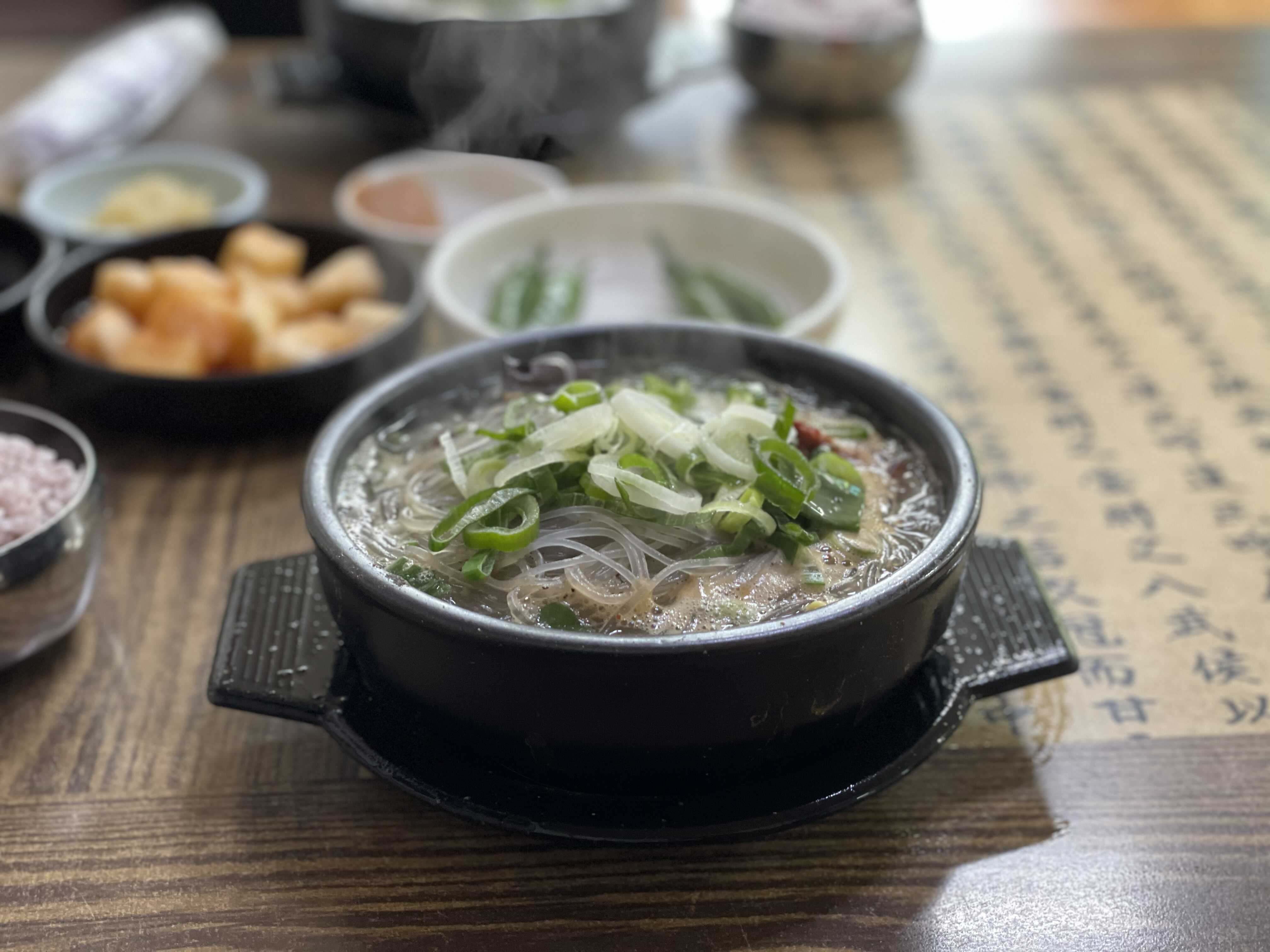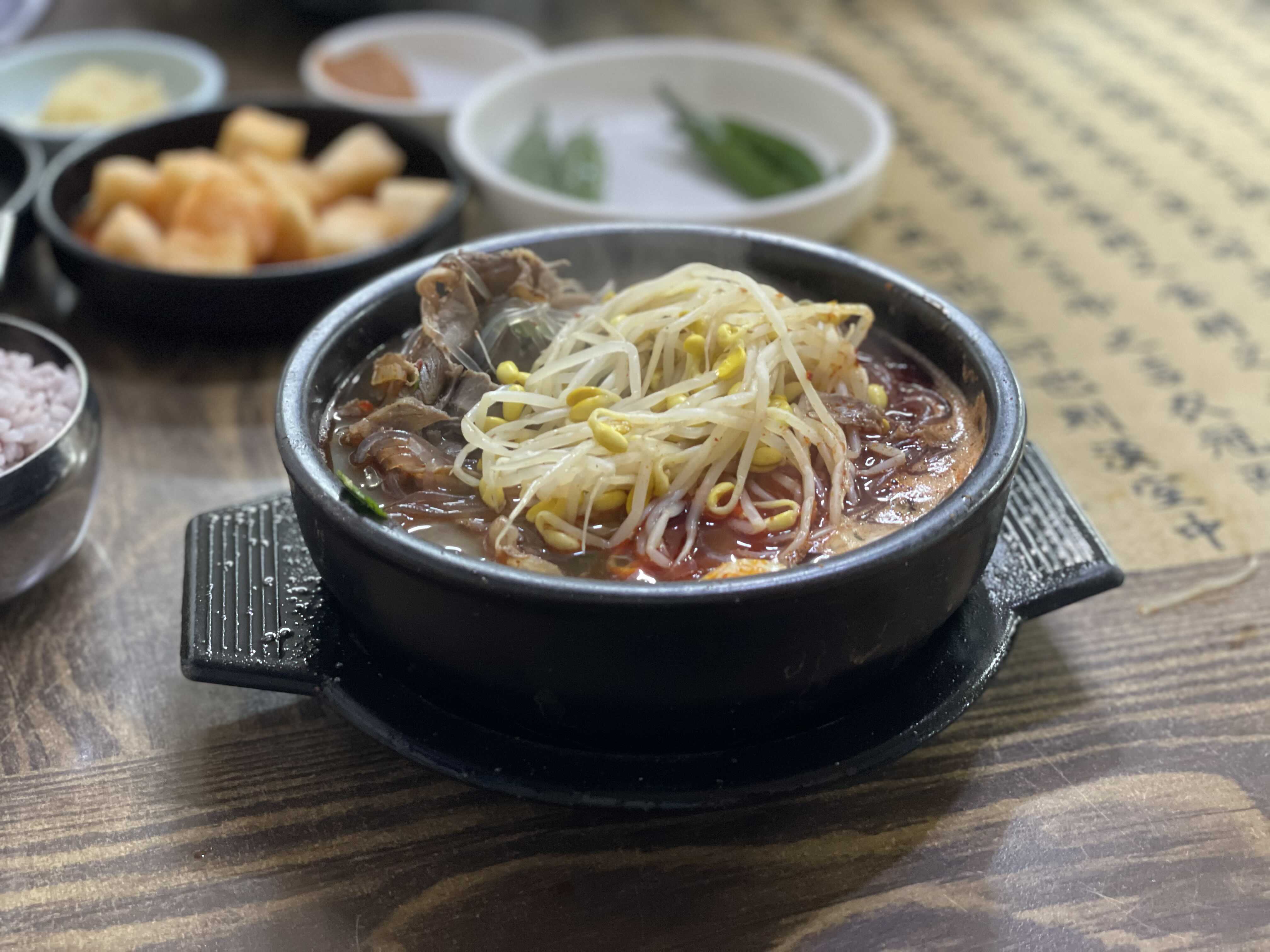 펄펄 끓는 듯이 나오는 은희네 해장국. 당면이 있어 좋았다. 섞기 전에는 국물이 하얘 보이는데 안에 빨간 양념장이 있어 섞으면 국물이 먹음직스럽게 빨개진다.