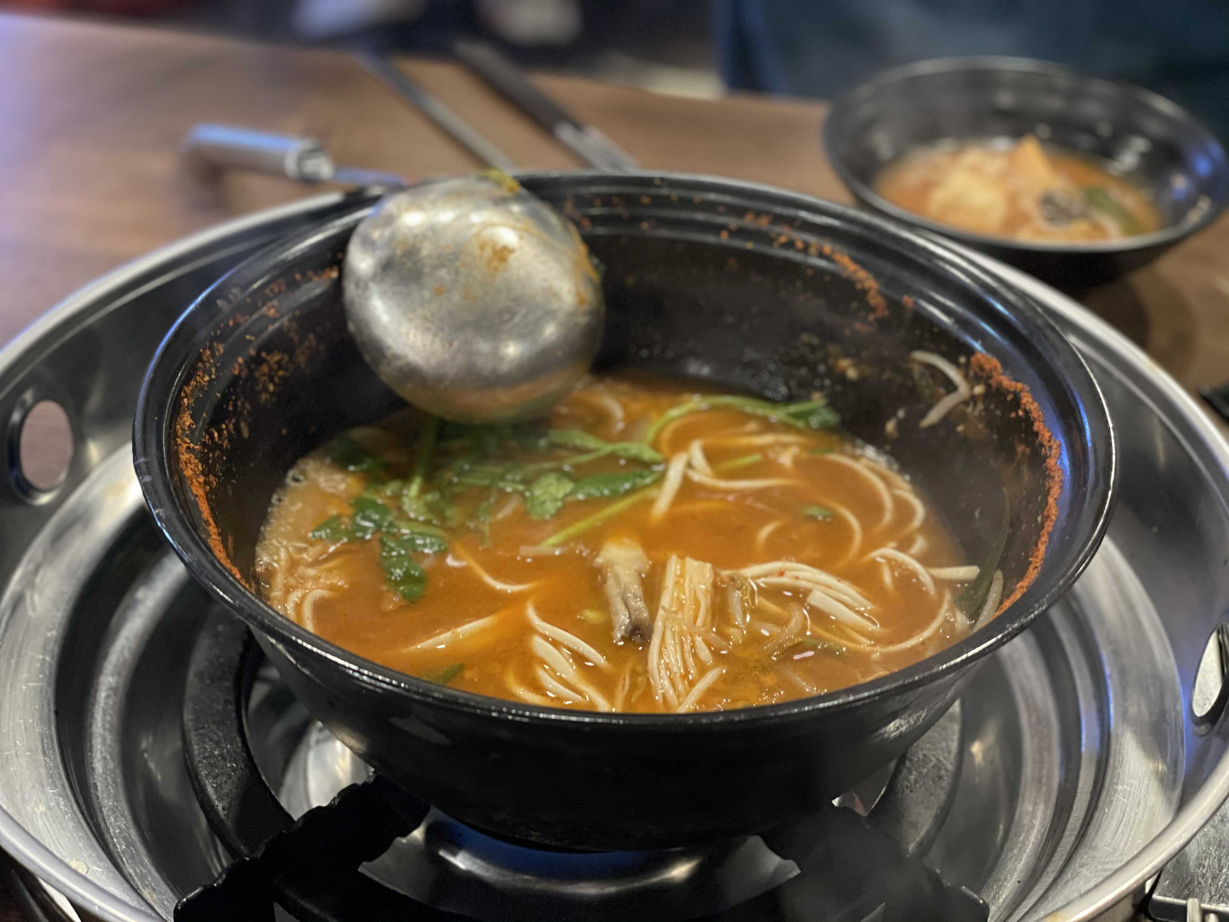 어느 정도 고기와 야채를 먹고 나면 육수를 더 받아서 팔팔 끓여 칼국수 사리를 넣어 먹으면 된다.