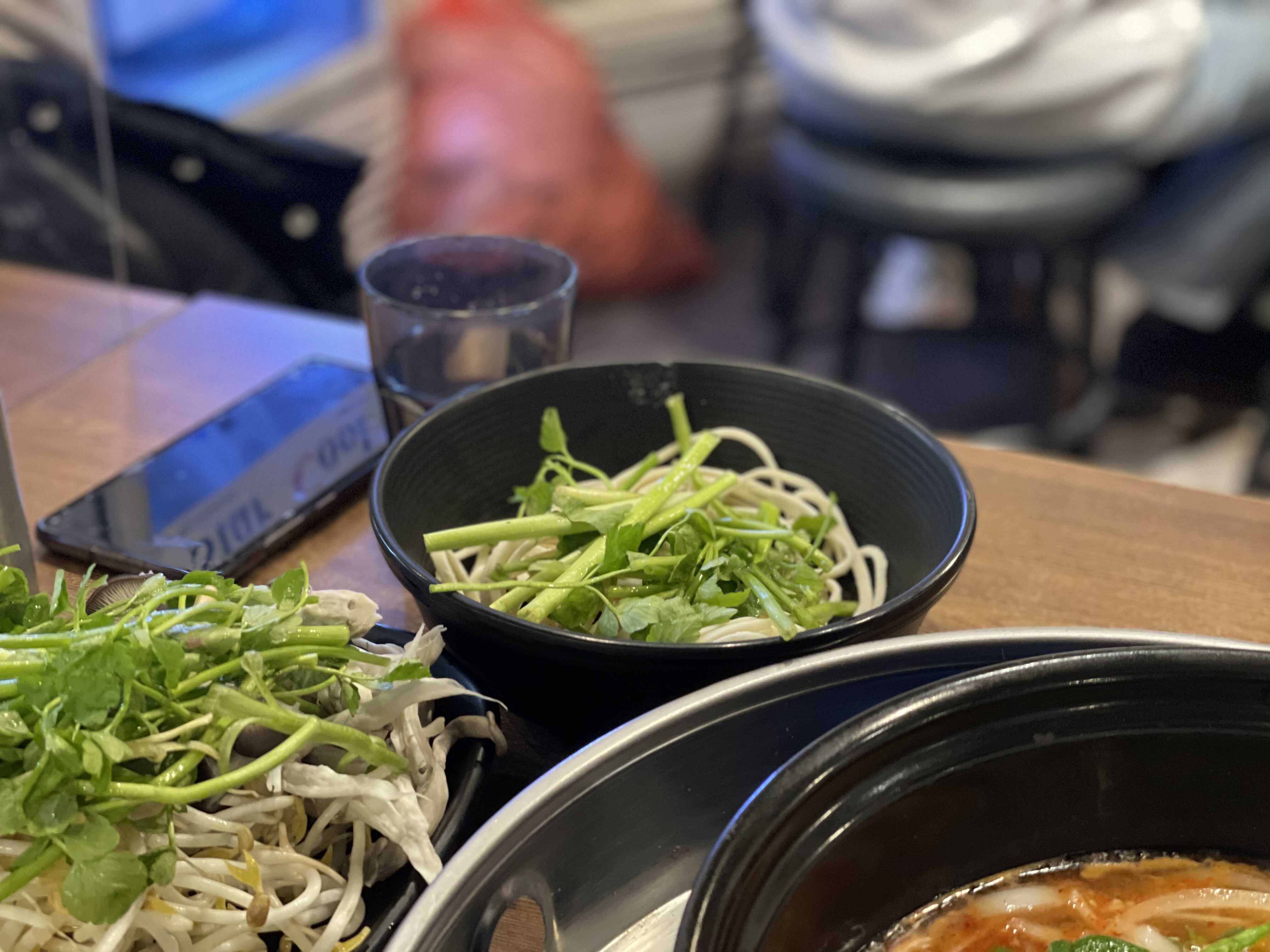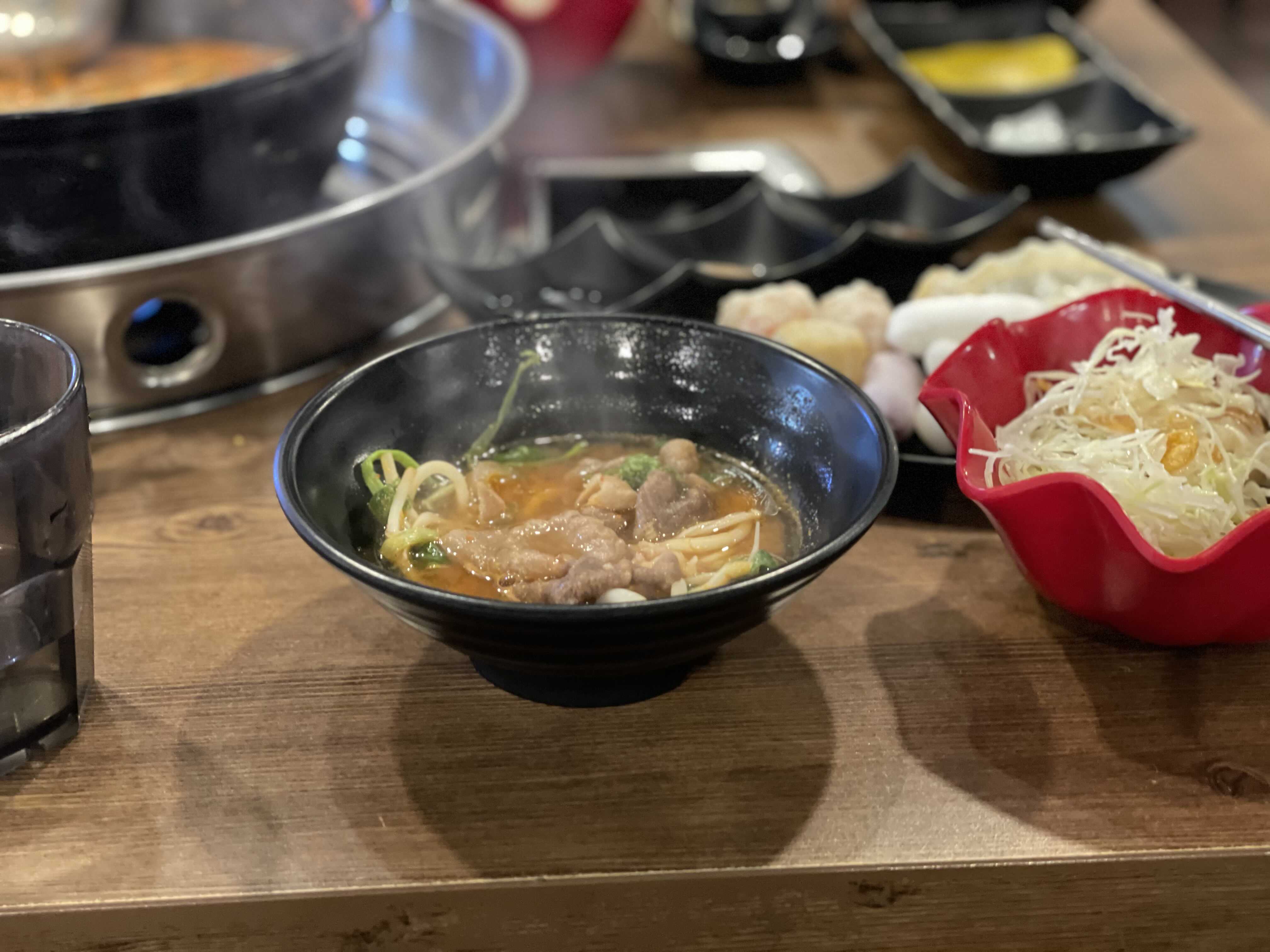 야채와 고기를 넣고 팔팔 끓여 먹는 샤브샤브. 잘 찍히진 않았지만 오른쪽의 샐러드가 재료가 많이 들어있는 것도 아닌데 맛있어서 리필해 먹었다.