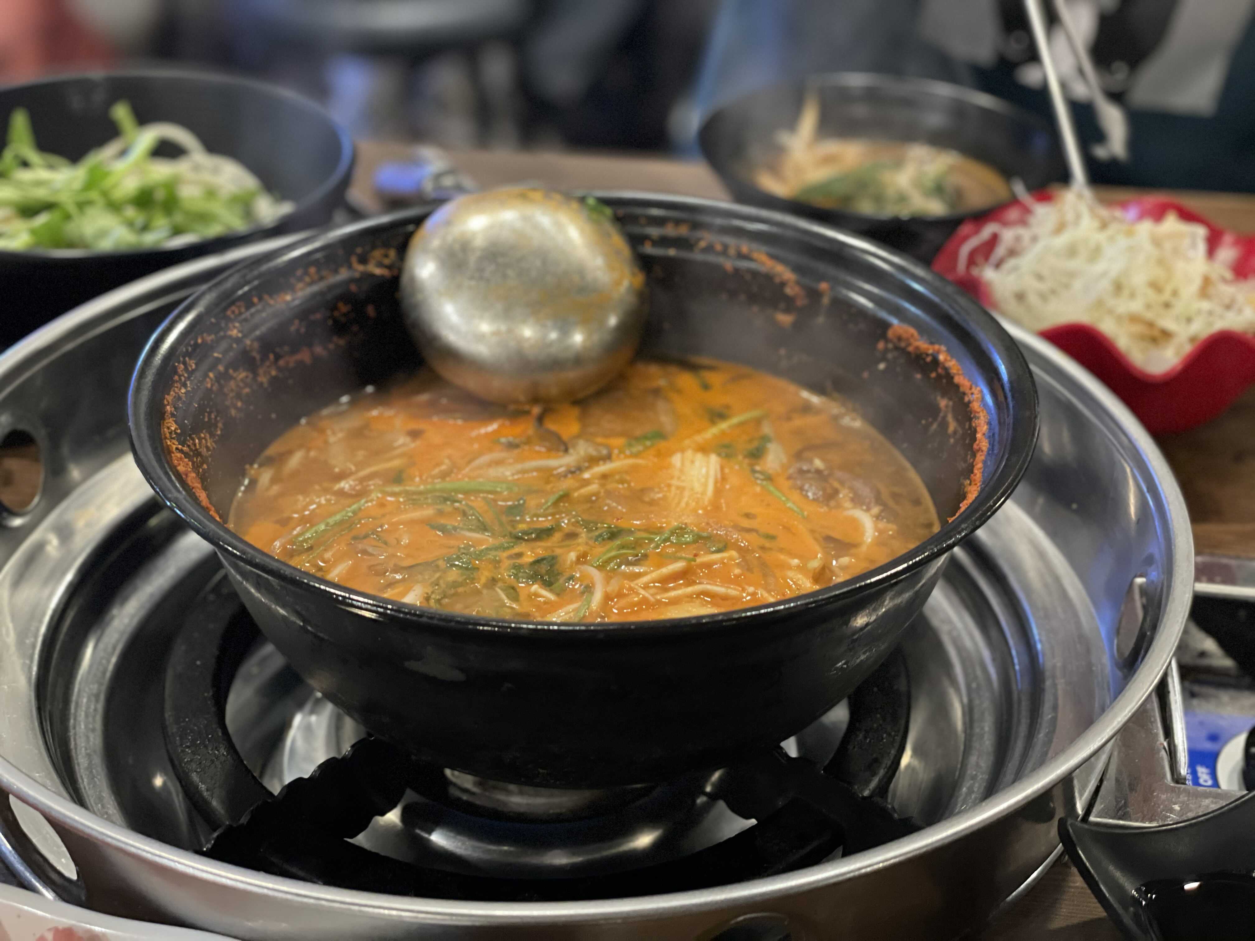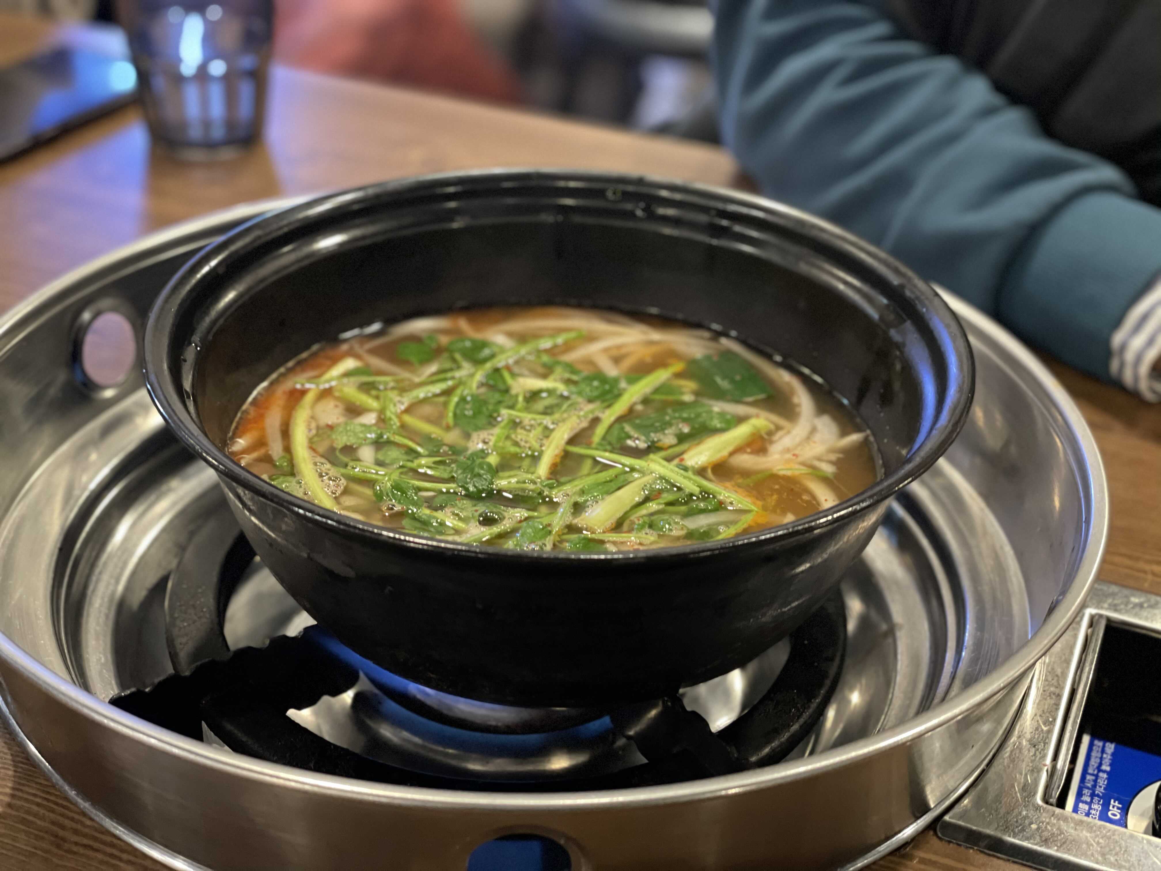 사람이 정말 많아 시끄러웠다. 오늘 뭐 개강총회인가 싶을 정도였다. 그래도 주문하자마자 바로바로 국물이 들어있는 냄비와 야채, 버섯류를 가져다주셨다.