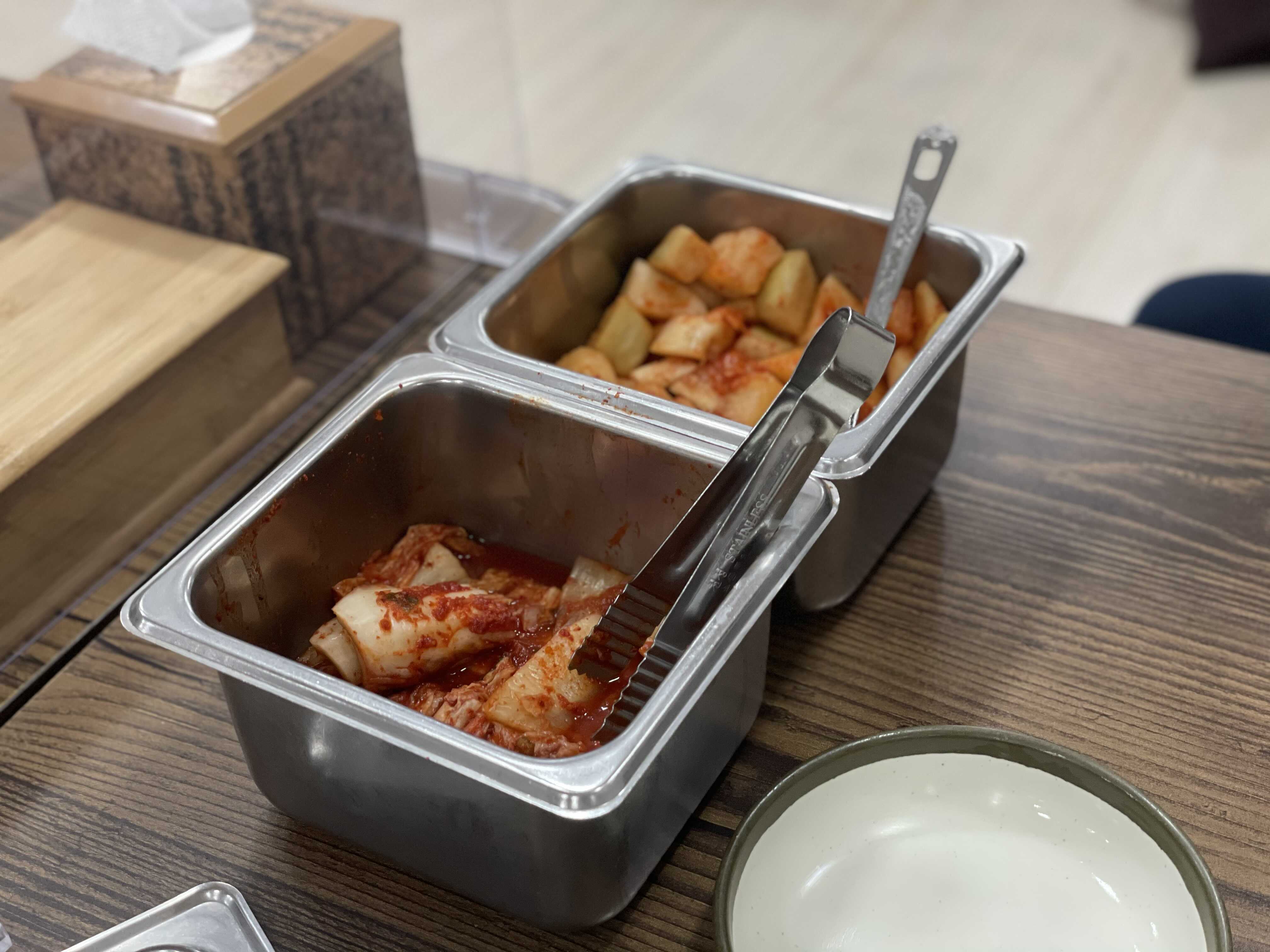 메뉴판도 없고 가격도 없다. 메뉴는 단 한 가지, 육개장이다. 두 명이 앉으면 육개장 두 개 자동 주문이다. 앉아서 두리번거리니 앞접시와 김치, 깍두기를 내어 주셨다. 국밥 류에는 깍두기, 김치가 생명인데 맘껏 먹을 수 있게끔 가져다주셔서 좋았다.