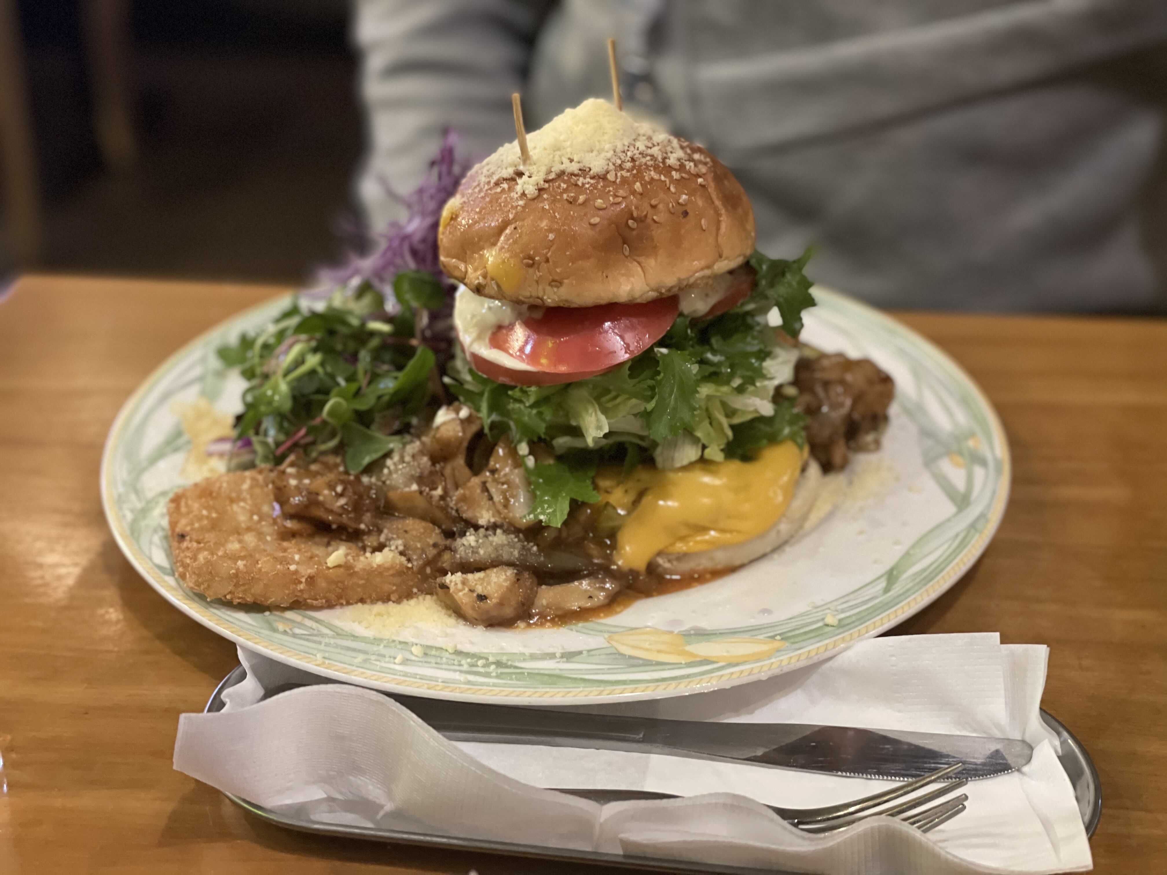 항공뷰는 이런 모양. 야채도 정말 많다. 감튀는 해쉬드 포테이토로 나온다. 햄버거지만 절대 한입에 먹을 수 없는 크기라 해체해가며 먹어야 한다.