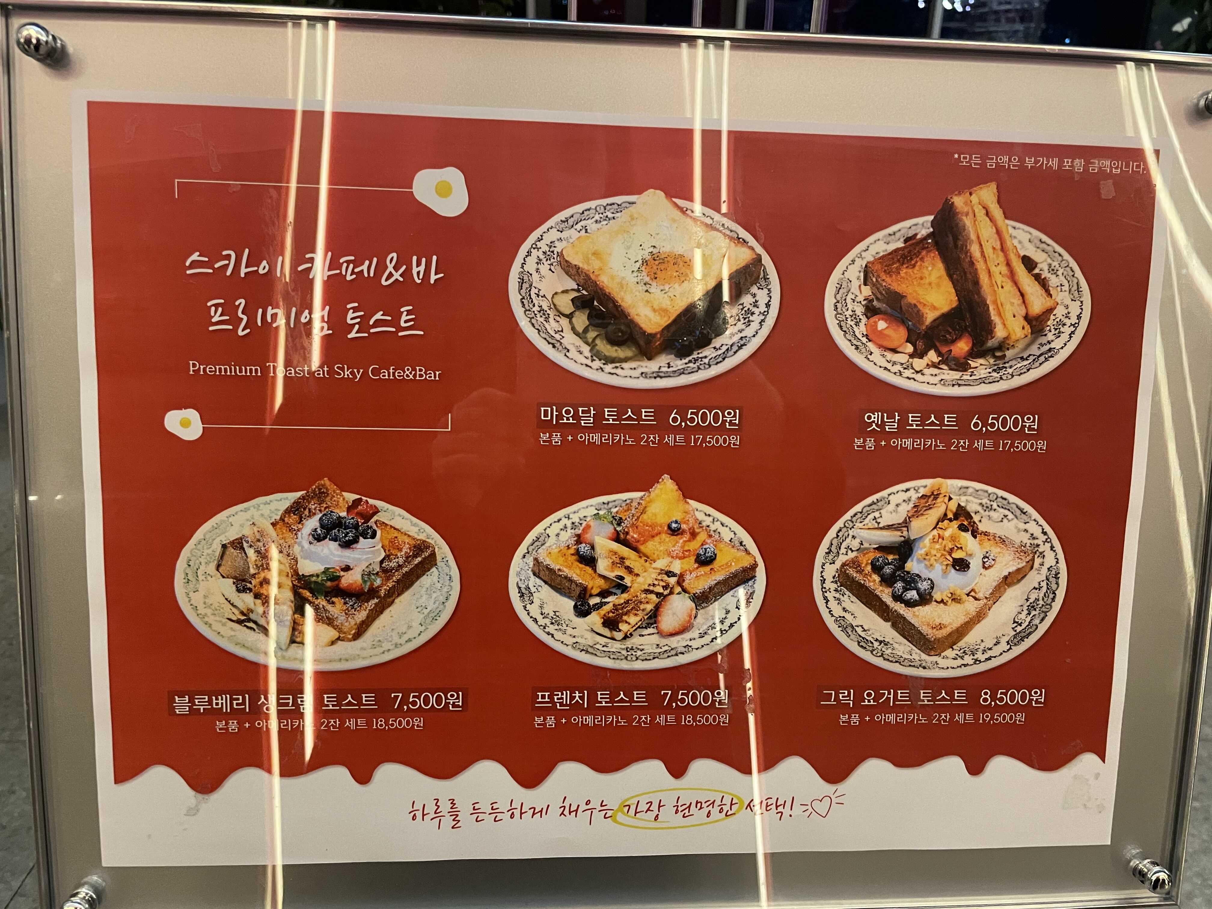 호텔 카페라 많이 비쌀 줄 알았는데, 기본 커피류가 6,000원이라 그냥 웬만한 전망 좋은 카페의 평균 가격이었다.