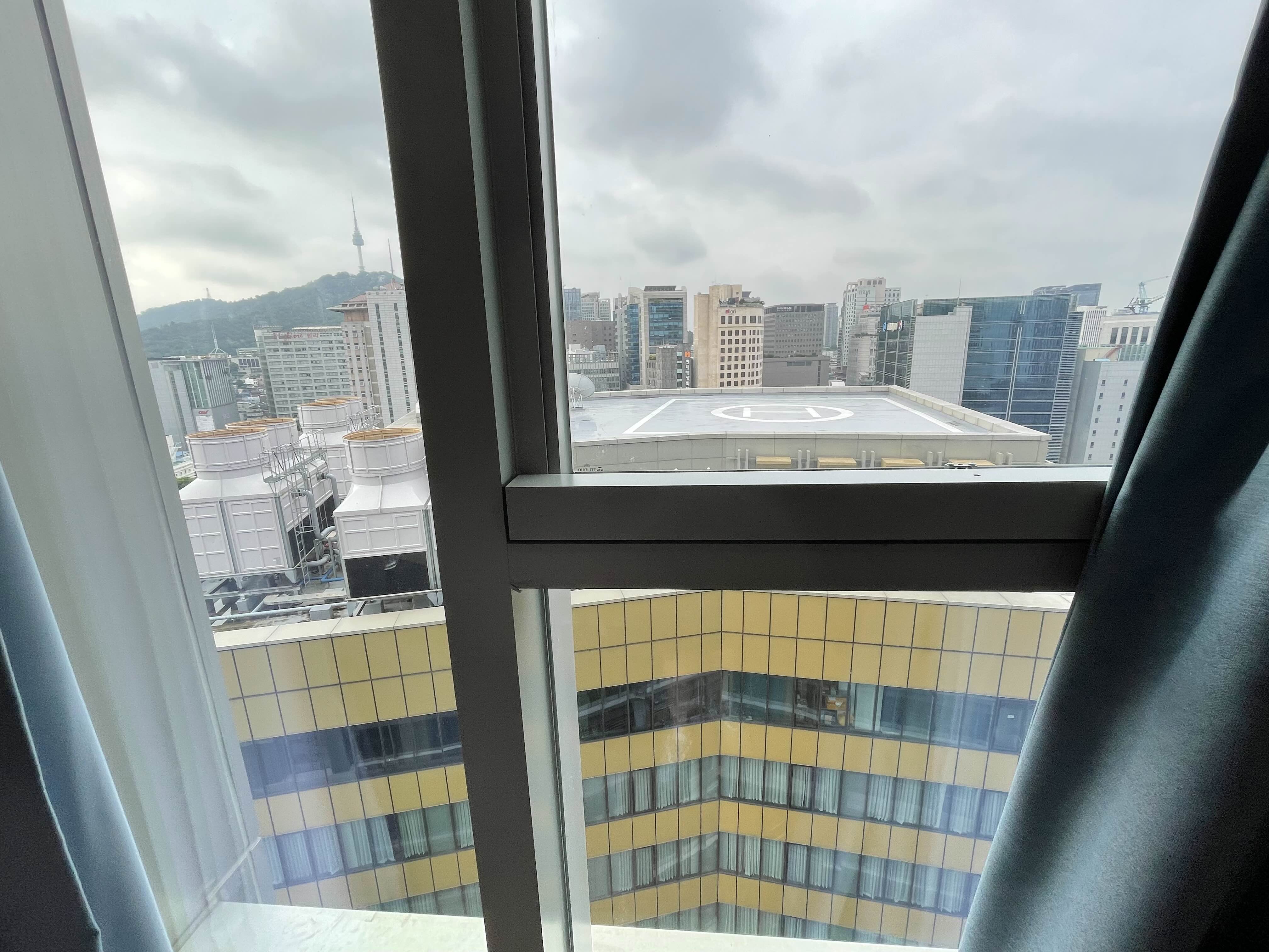 바깥은 엄청난 시티뷰다. 헬기장이 보일 정도의 고층이다. 남산타워도 보인다. 이 빽빽한 서울, 가끔 놀러 오라면 오겠지만 도저히 살지는 못하겠다.