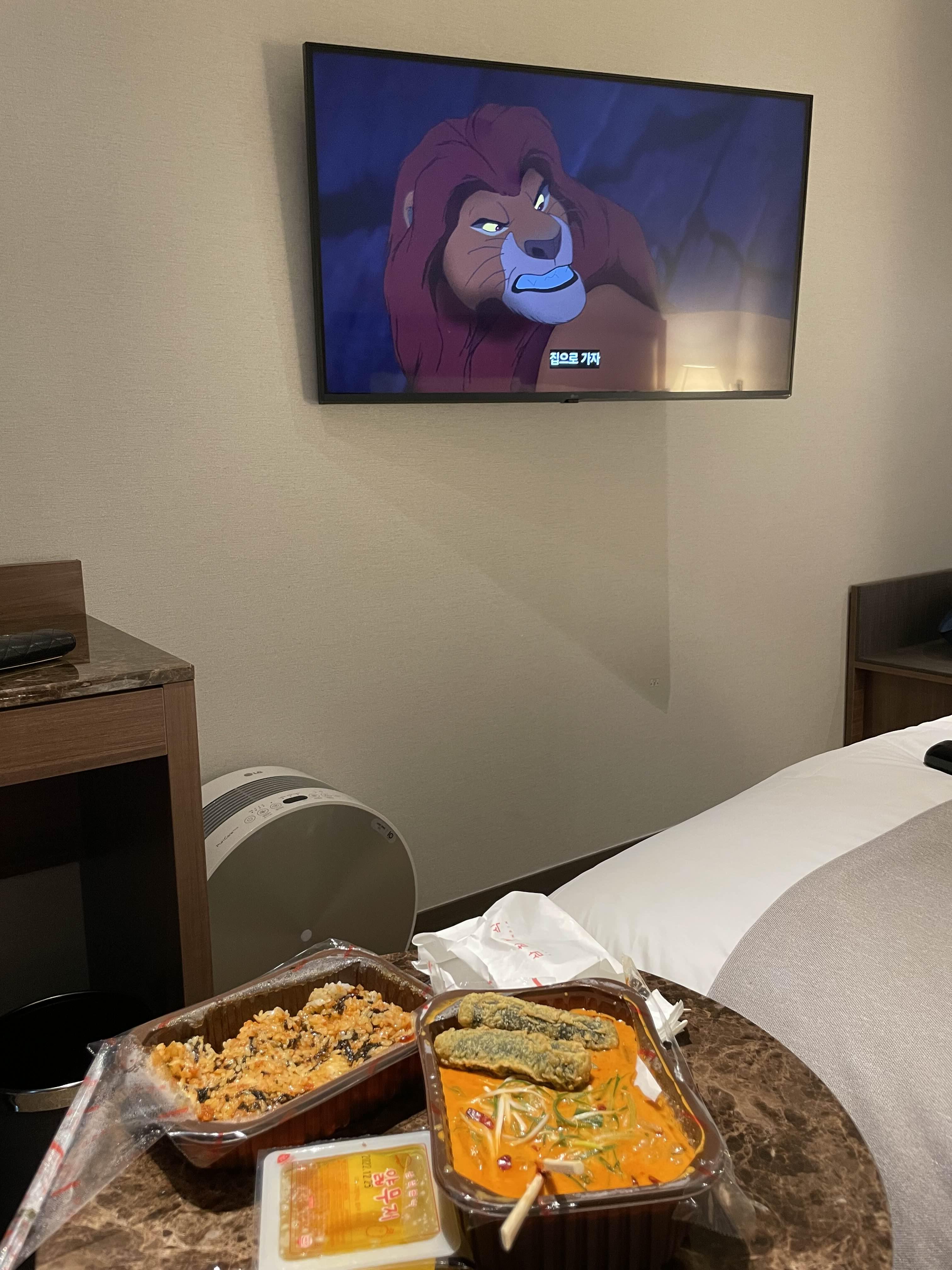 오래간만에 라이온킹 영화 보면서 쉬었다. 스탠포드명동 호텔은 디즈니 플러스가 가입되어 있어 너무 좋았다.