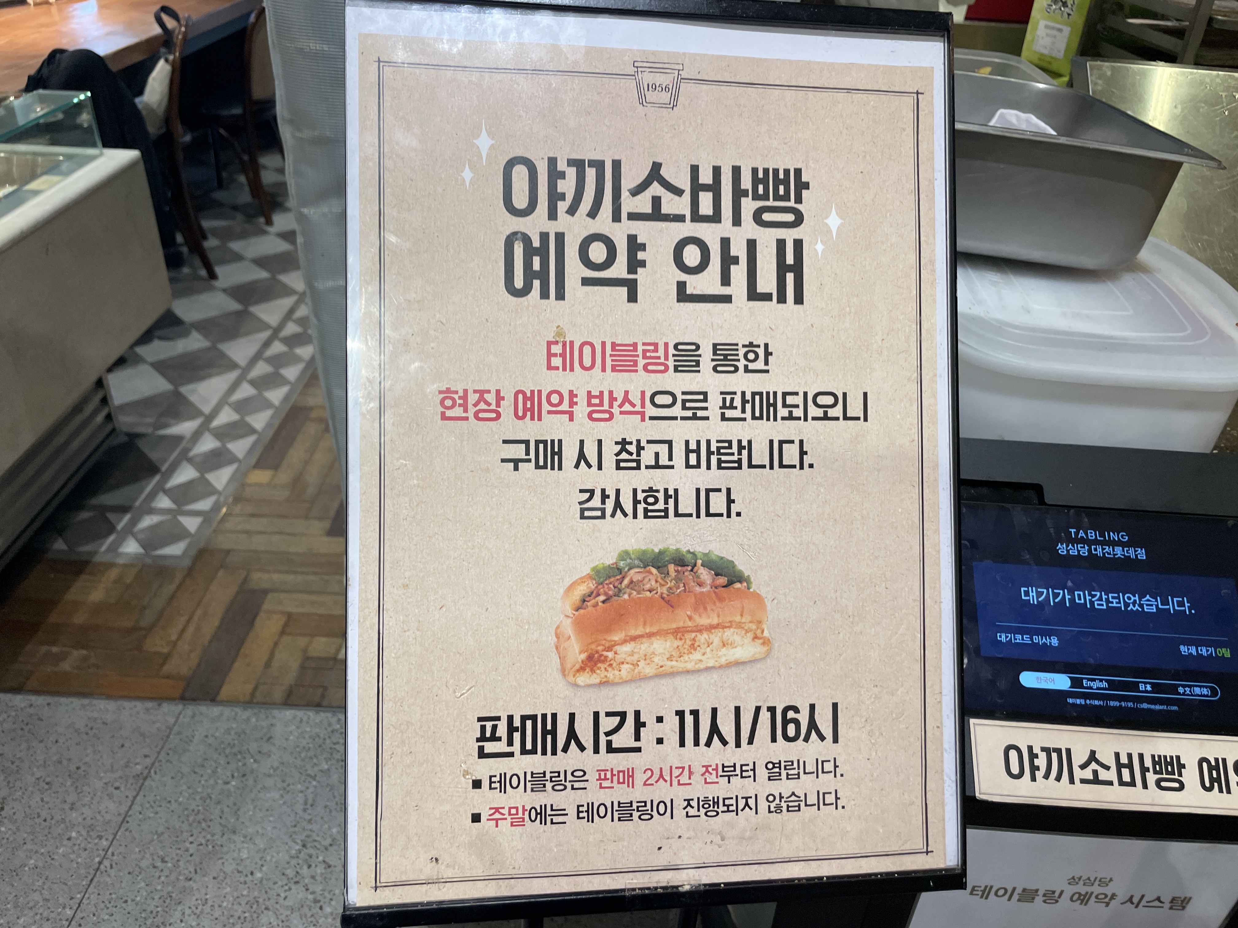 그래서 블로그에 공유하고 싶었던, 성심당 롯데백화점 대전점에서 야끼소바빵을 테이블링 예약 없이 사는 꿀팁을 쓴다.