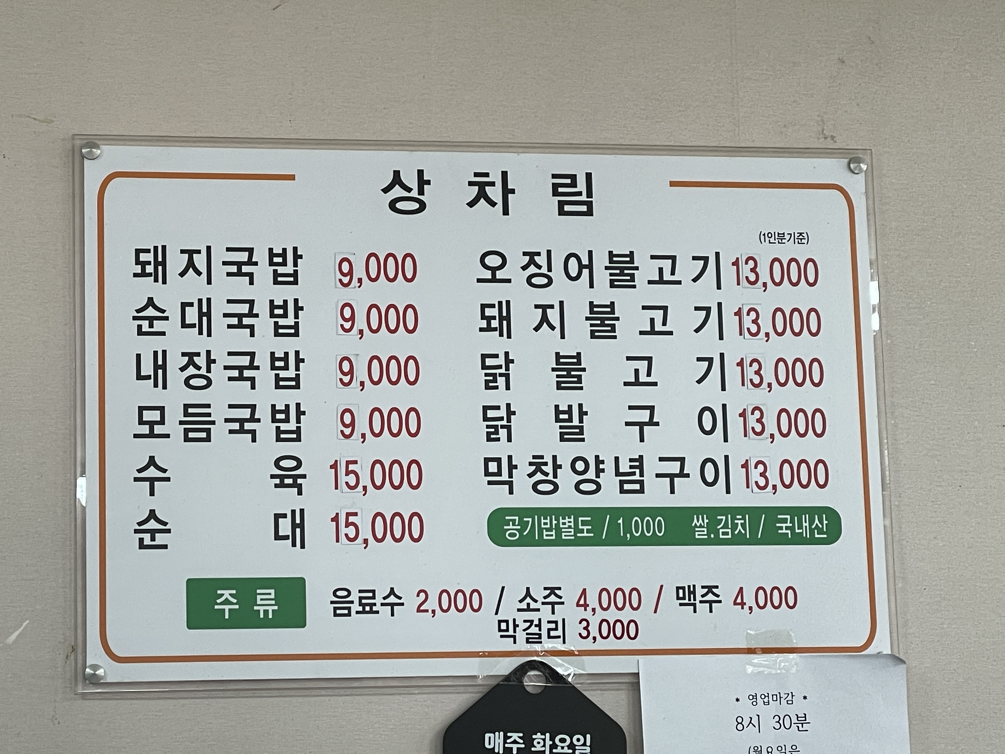 • 정기휴무: 화요일