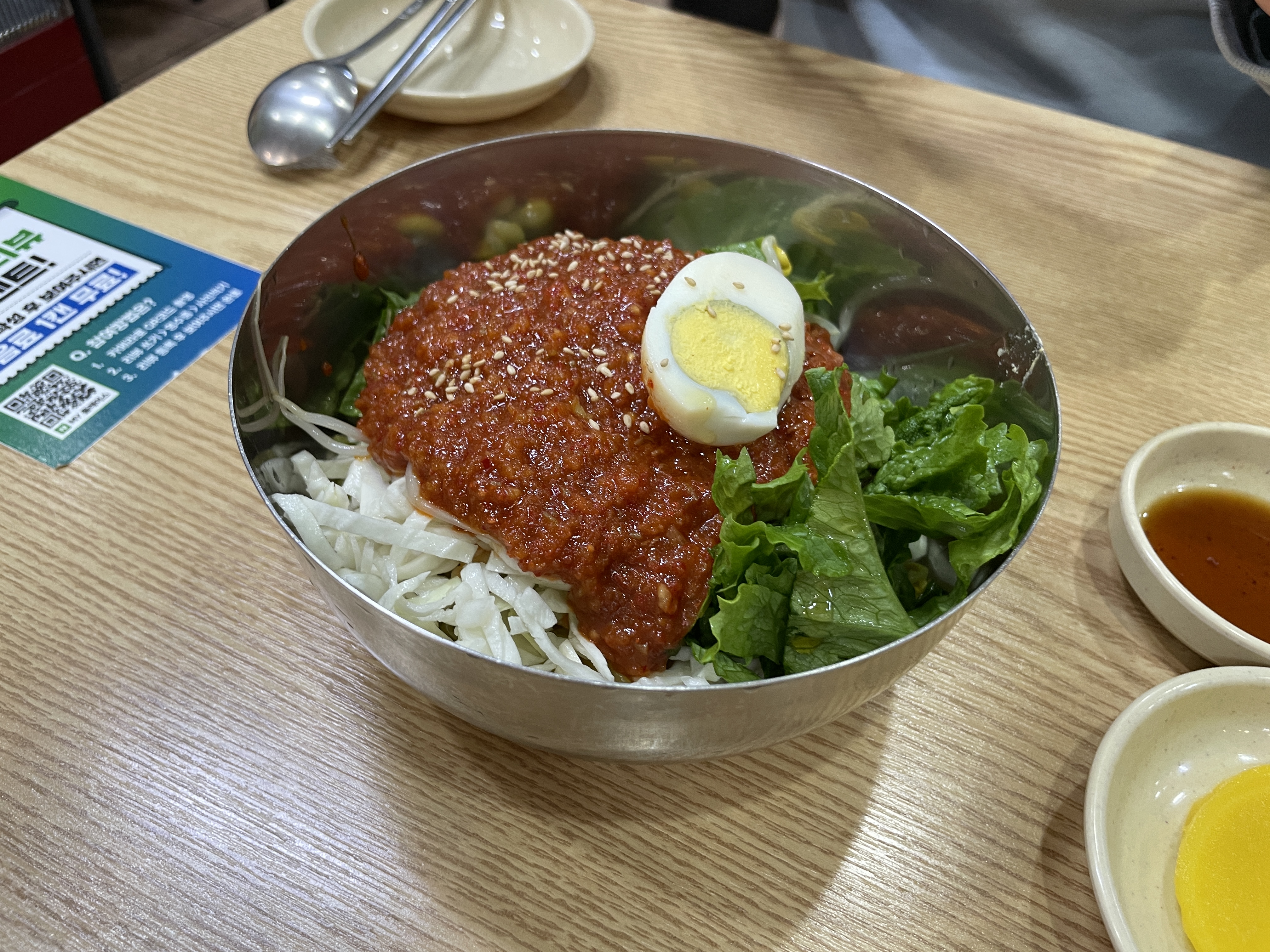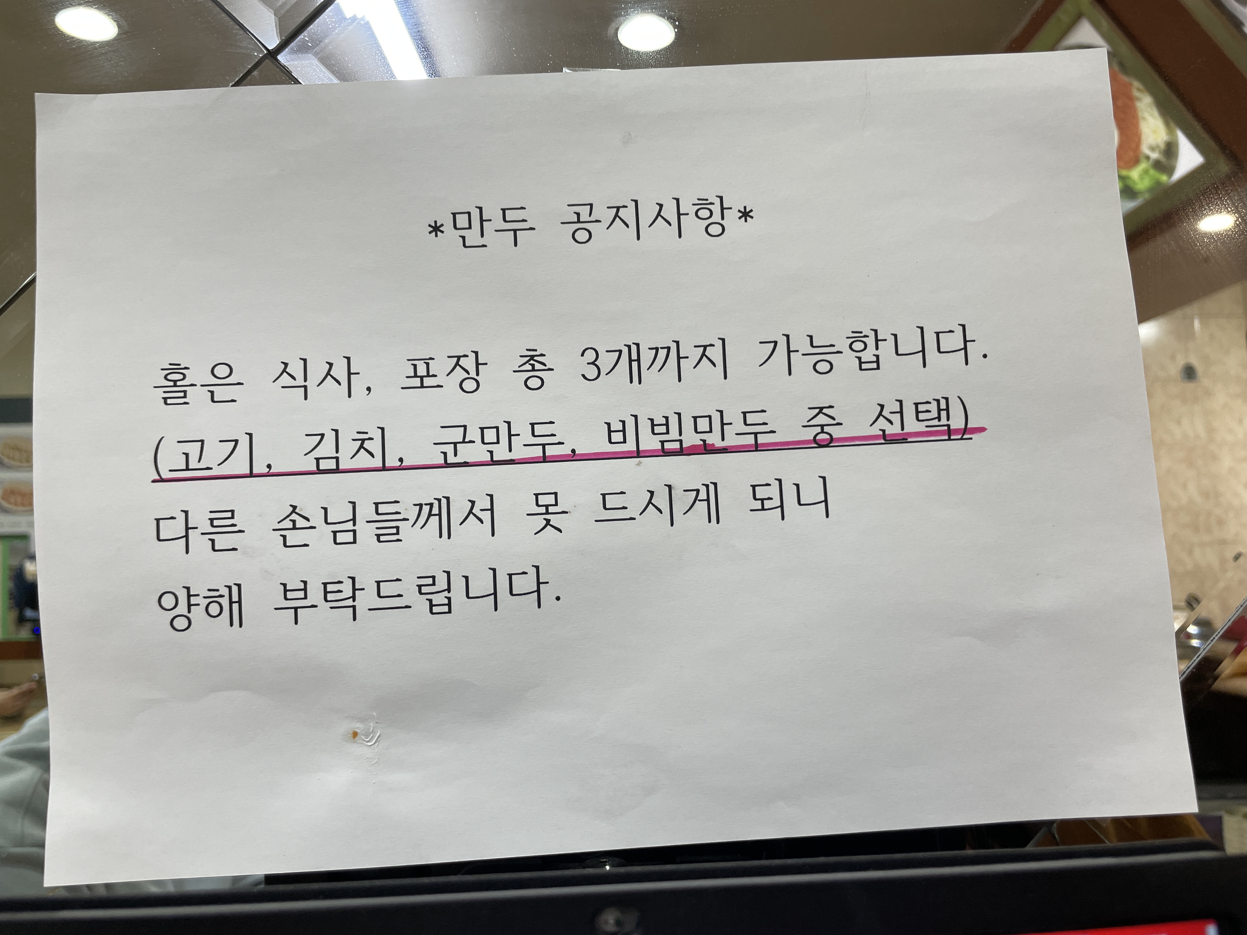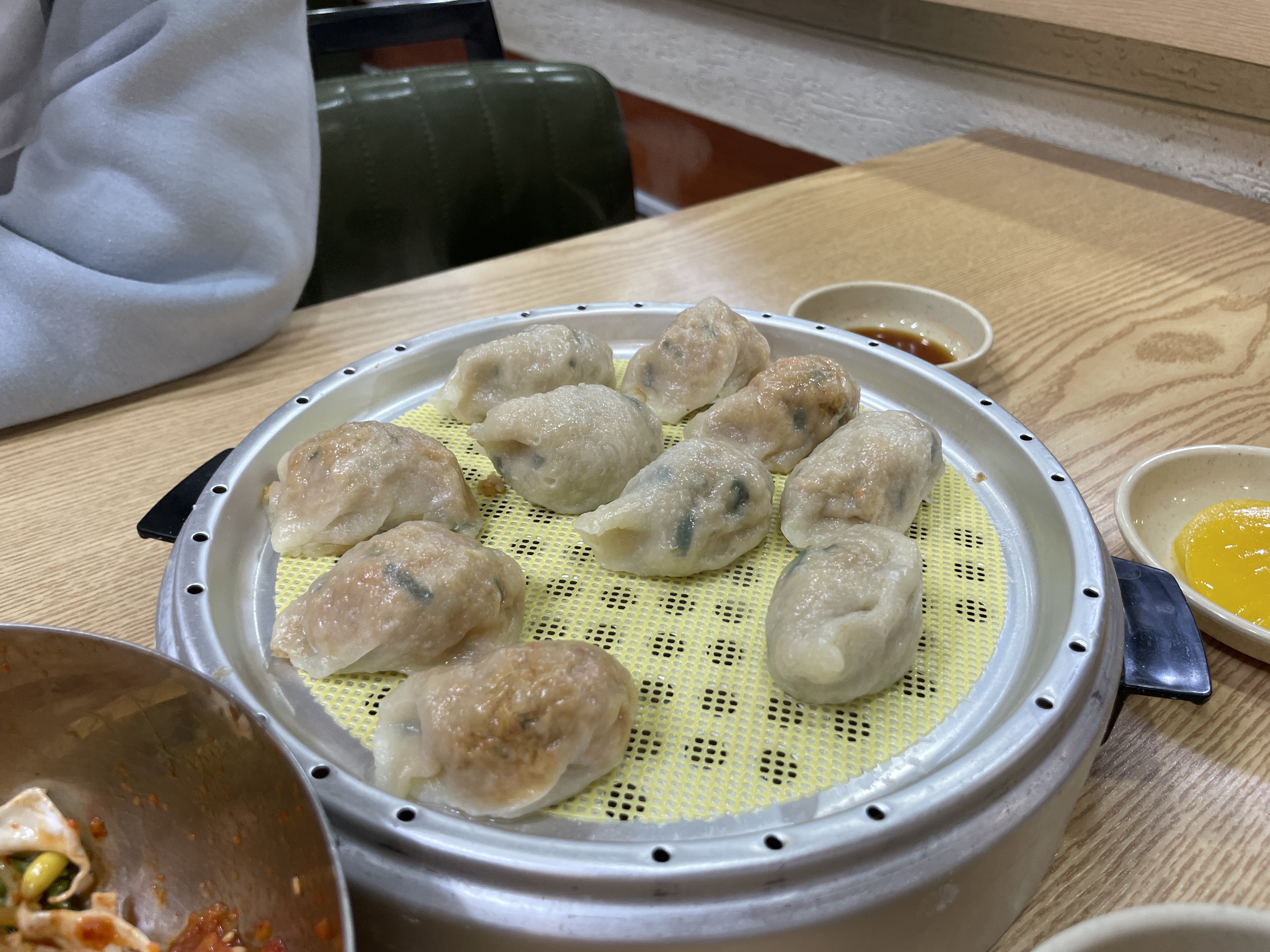 비빔만두나 군만두도 맛있어 보였고, 특히 군만두는 집에서 먹기 번거로우니 먹고 싶었는데, 남편이 깔끔한 맛을 좋아해서 찐만두를 반반 시켰어요.