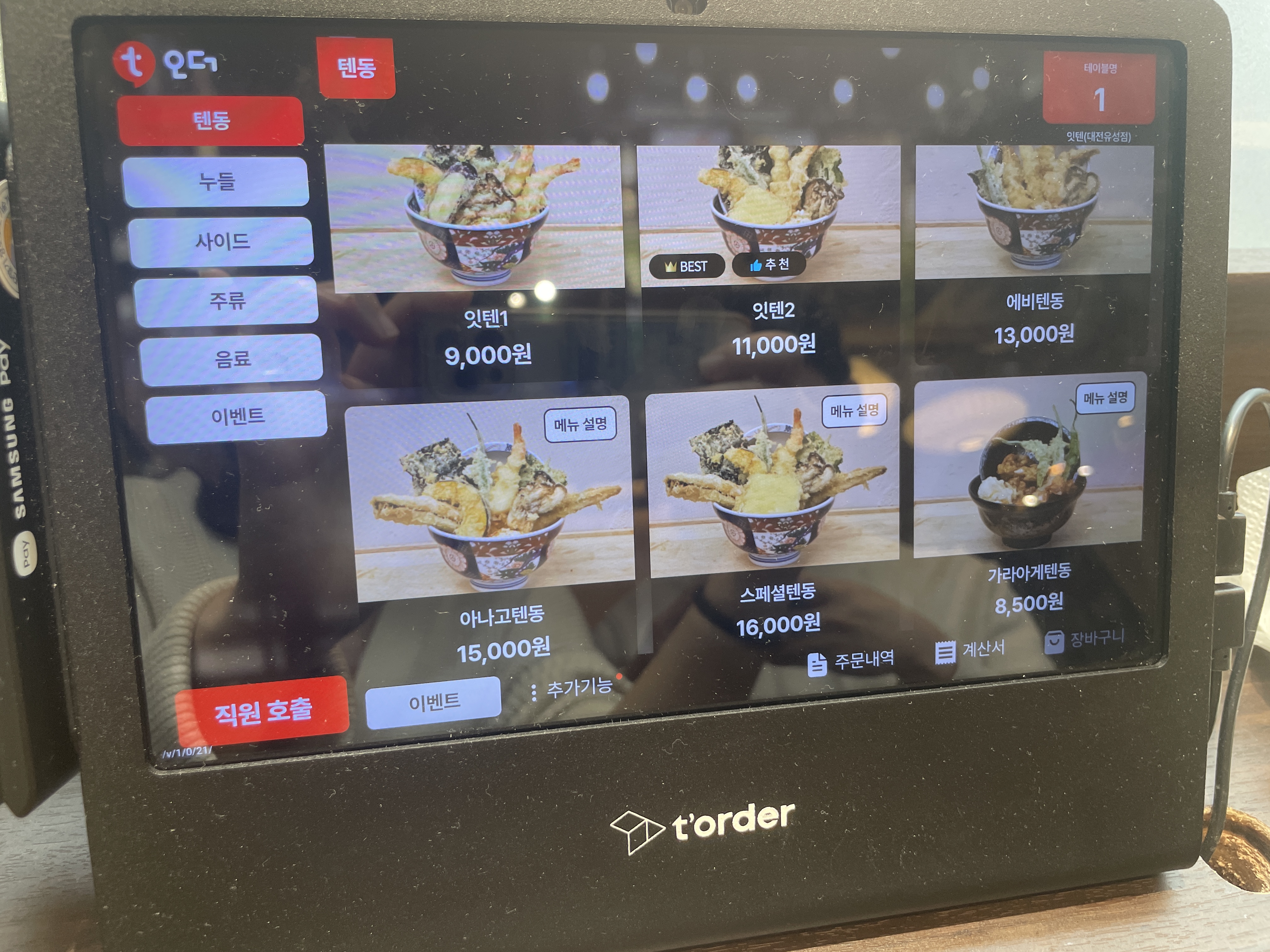 • 일본 정통 텐동 스타일을 그대로 재현하며, 먹음직스럽게 플레이팅되어 나옵니다.